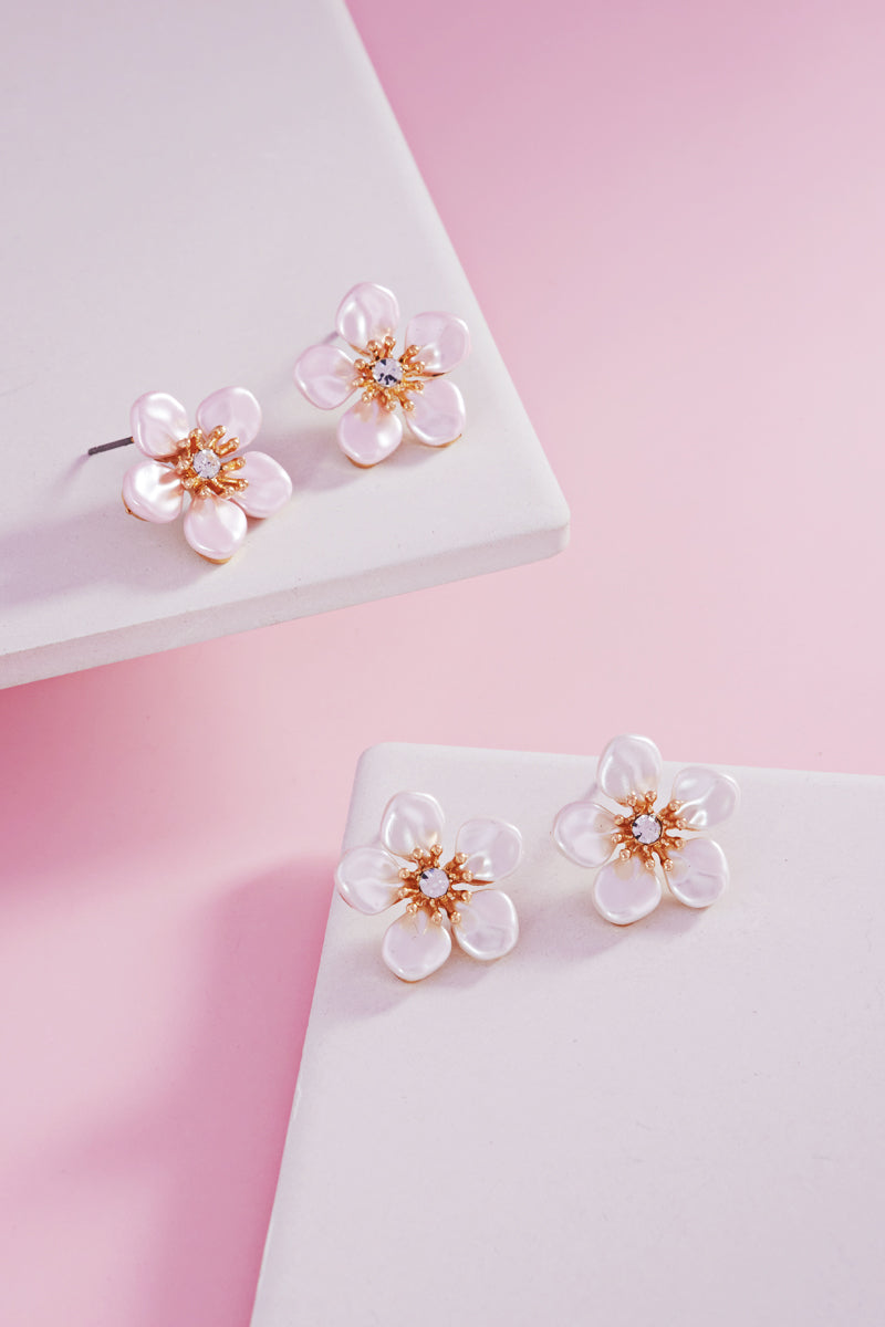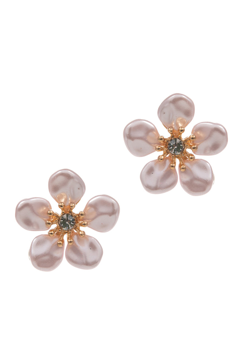 Light Pink Flower Shaped Pearl Post Earrings
