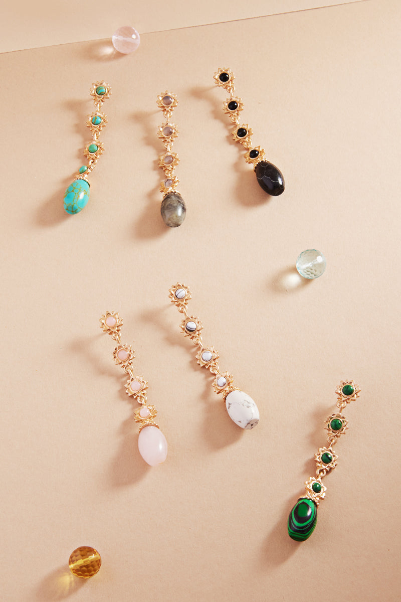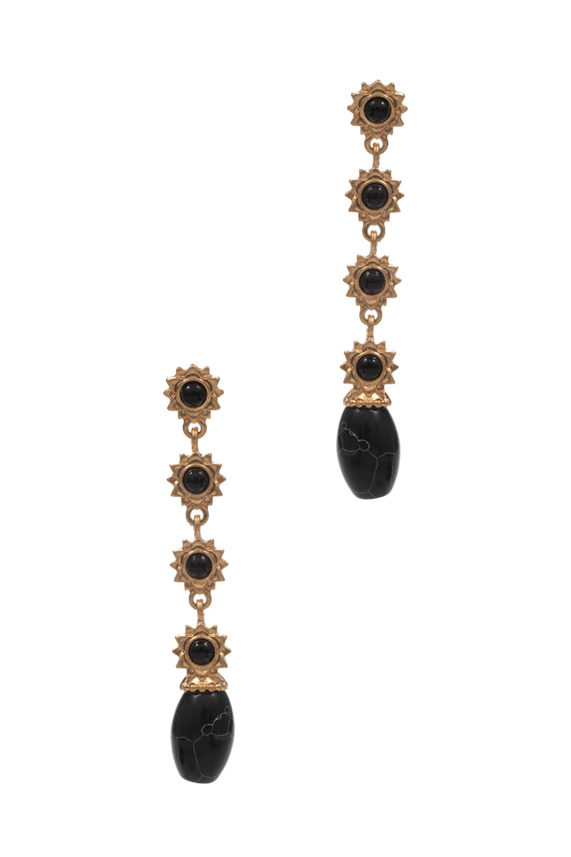 These 2.75 inch linear natural stone post earrings are perfect for adding a touch of elegance and style to any outfit. The natural stone is known for its durability and timeless beauty, making these earrings a long-lasting accessory.
