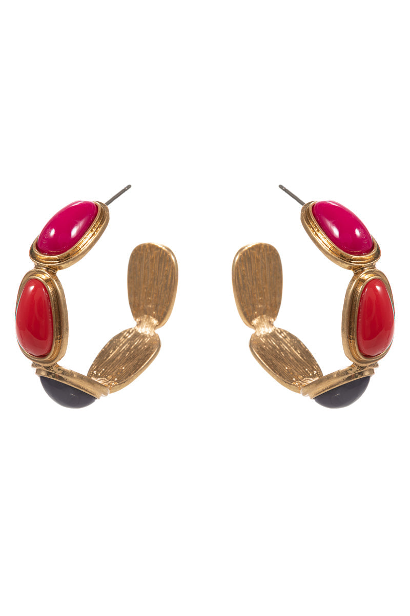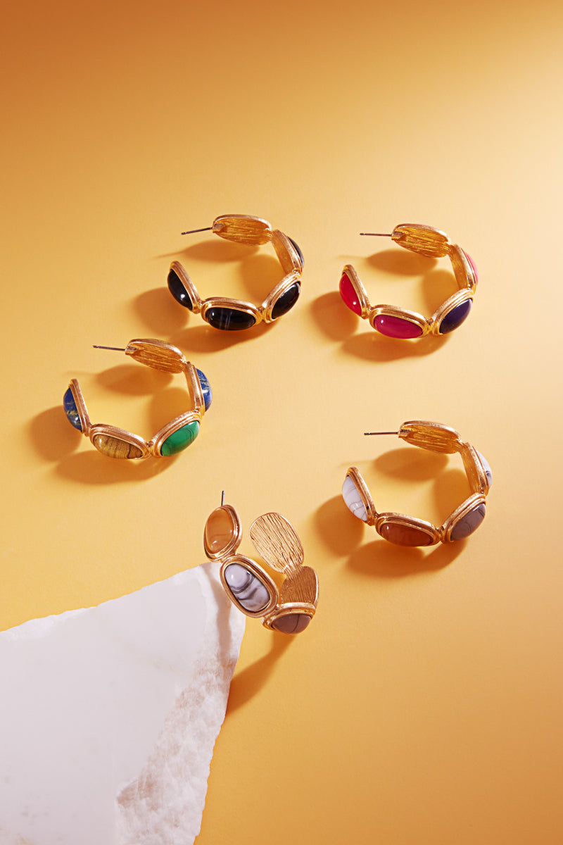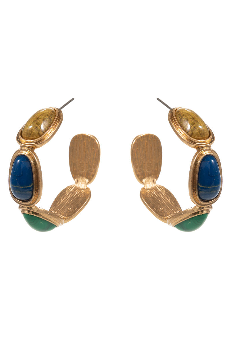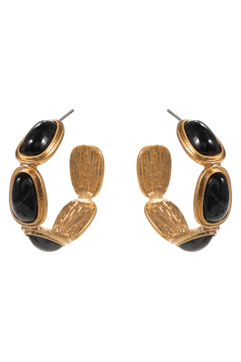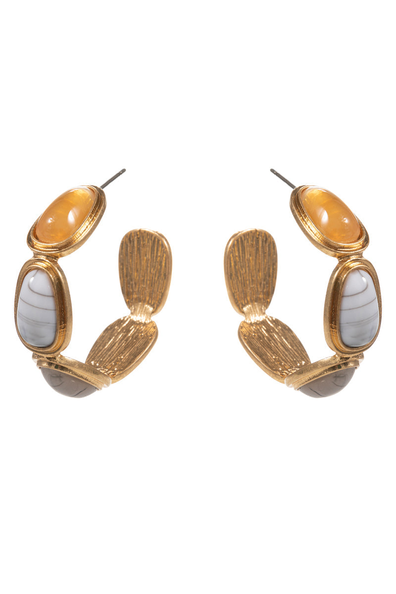 Metal Vintage Resin Faux Stone Pin Hoop Earrings