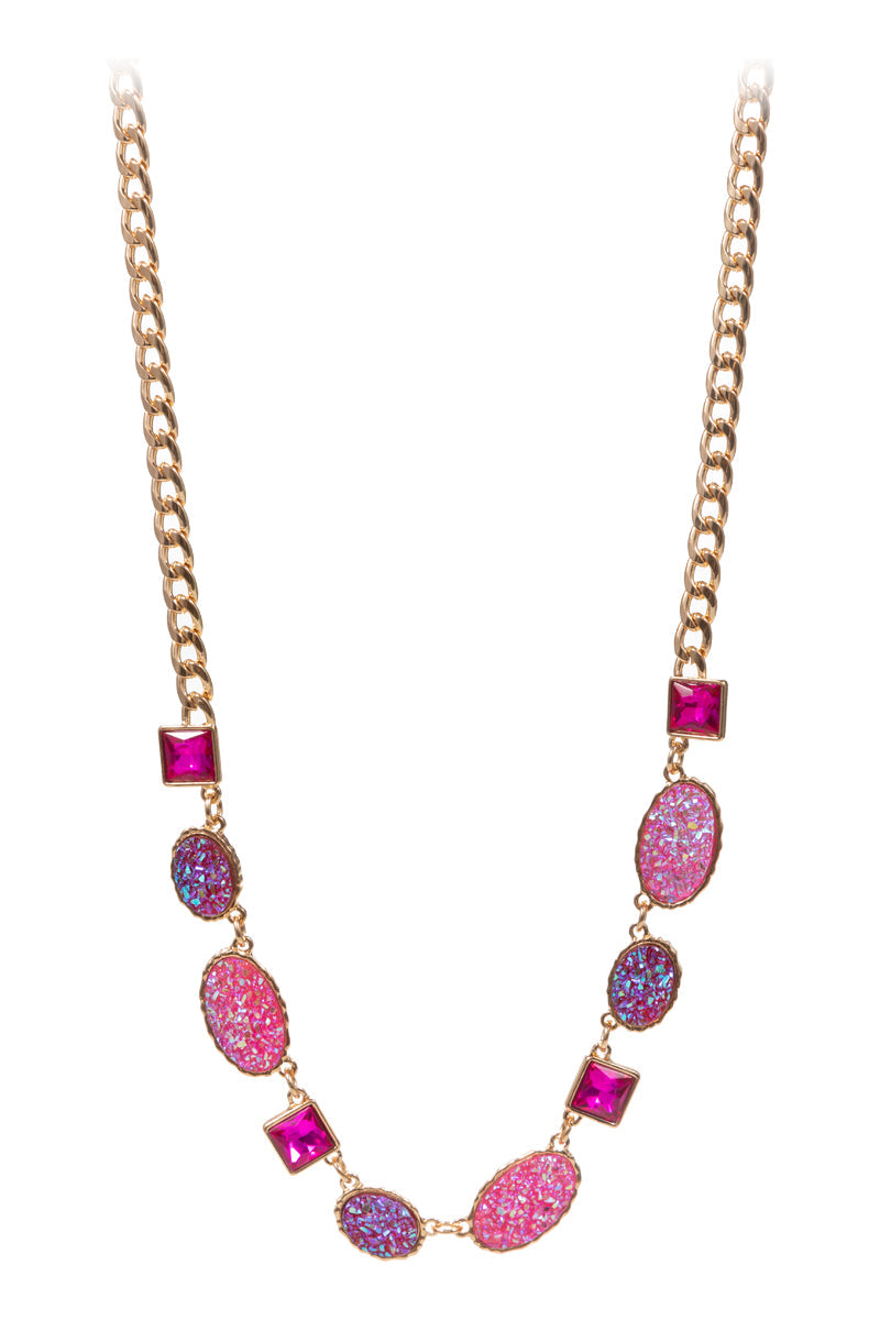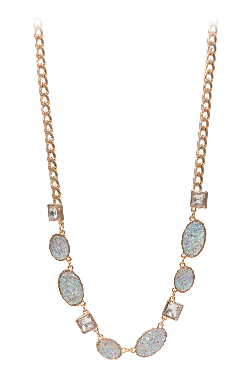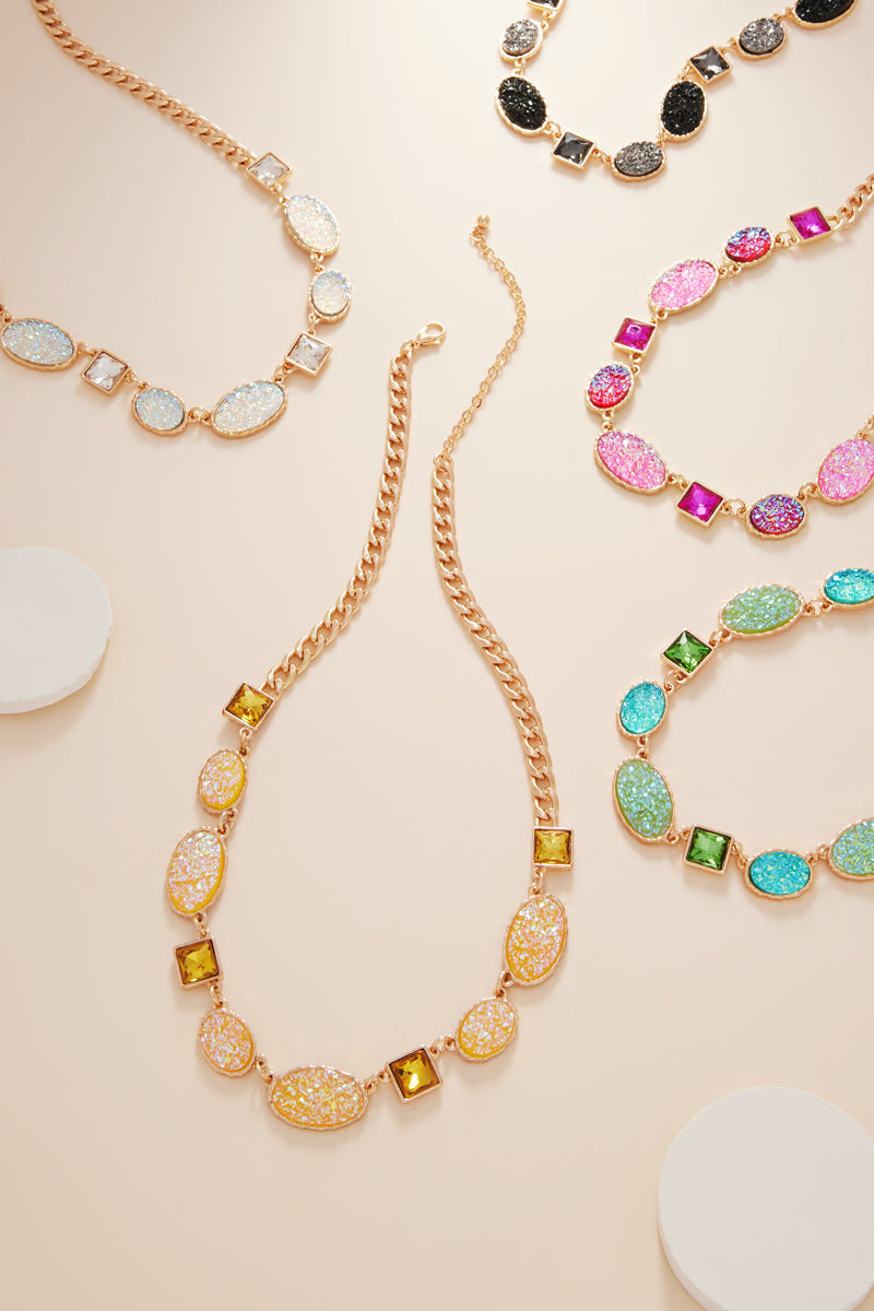 Oval Color Gradation Faux Druzy Short Necklace