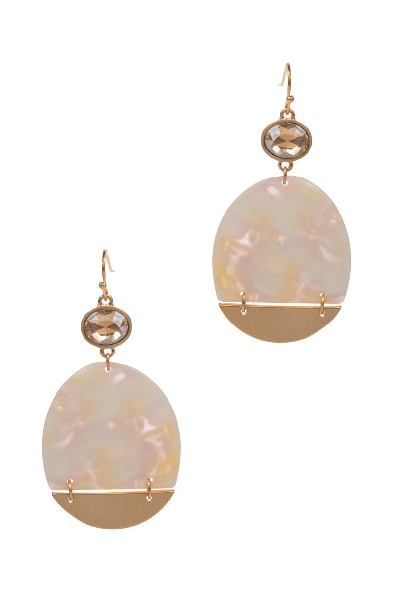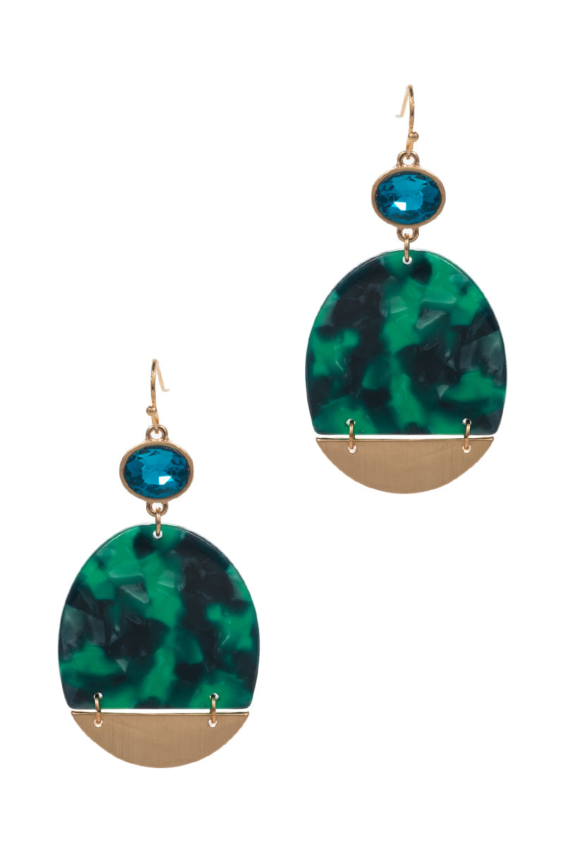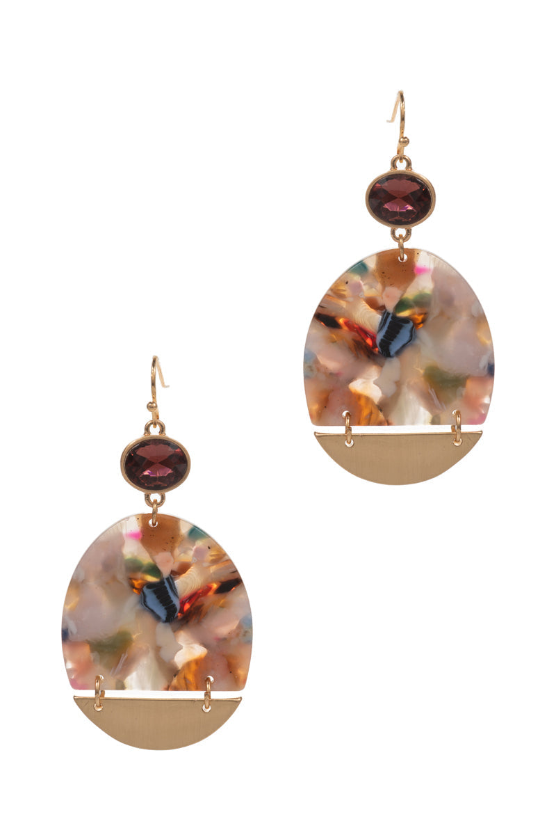 Expertly crafted with high-quality acetate and glass, these 2.5 inch oval-shaped earrings are a timeless addition to any jewelry collection. Enjoy the elegant design and durable materials that make these earrings perfect for everyday wear or special occasions.
