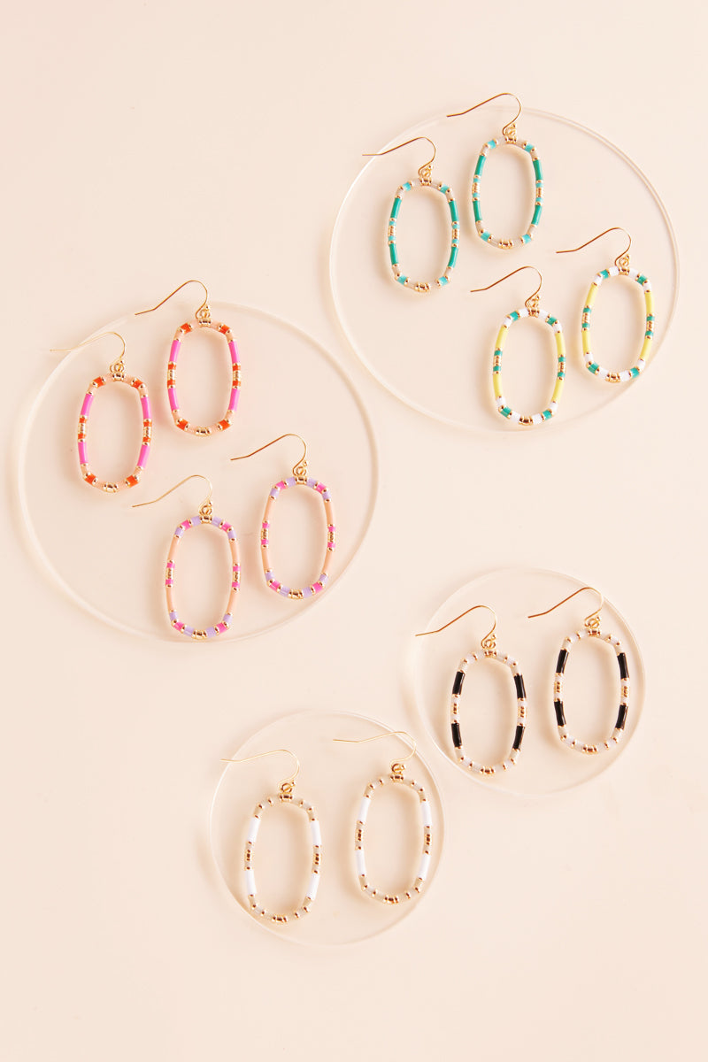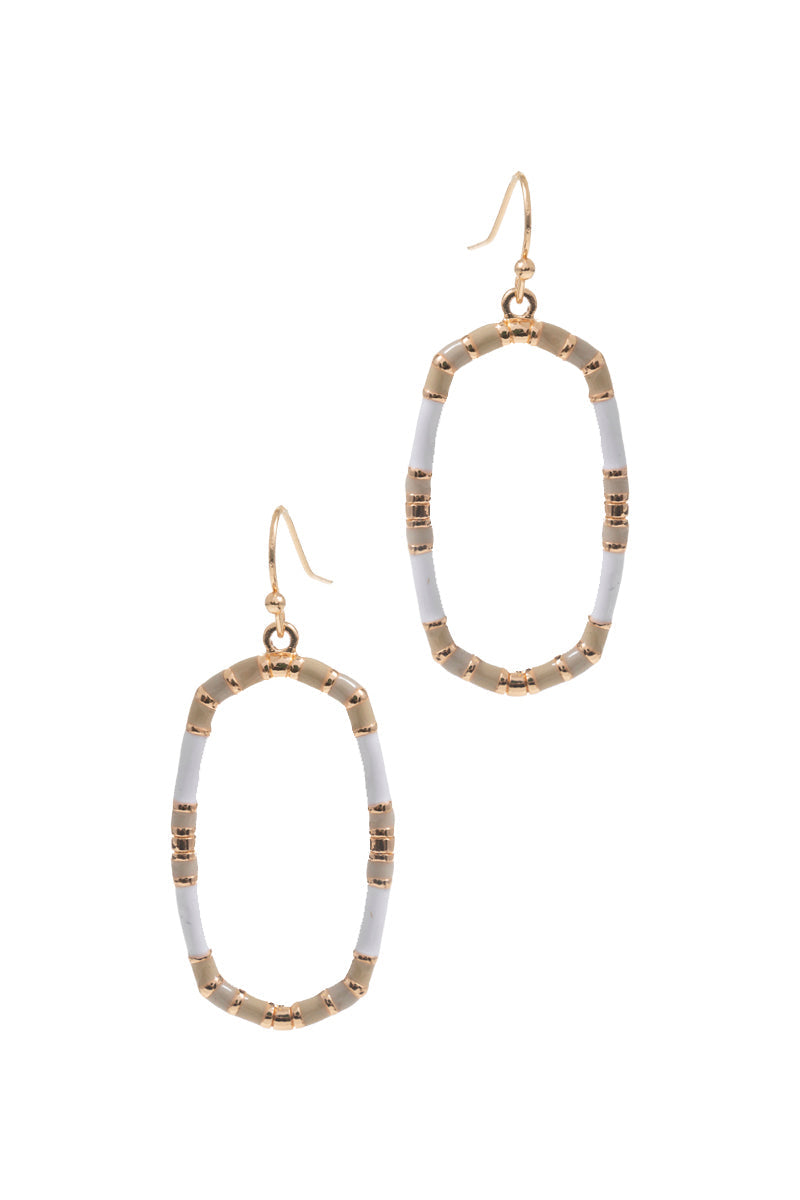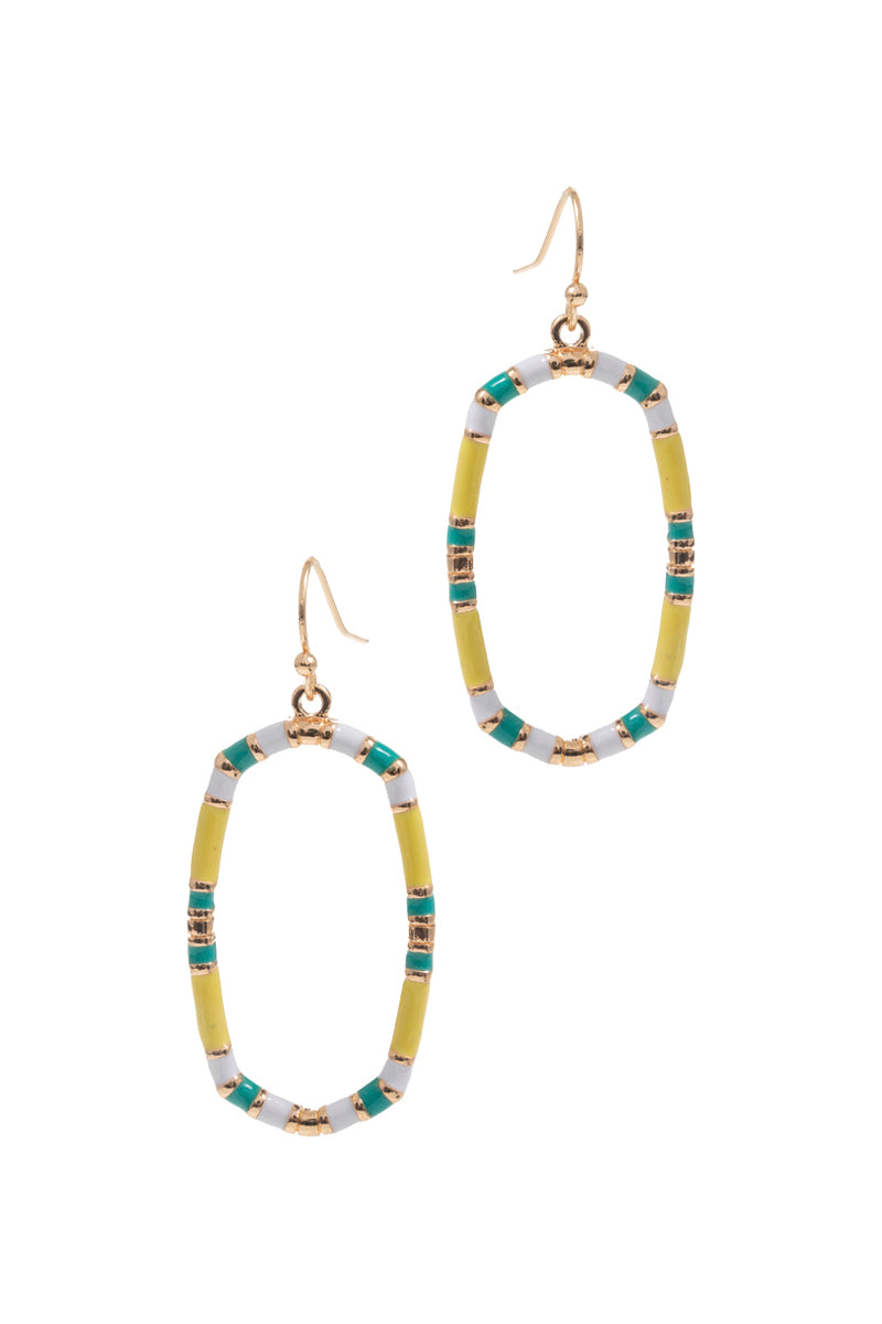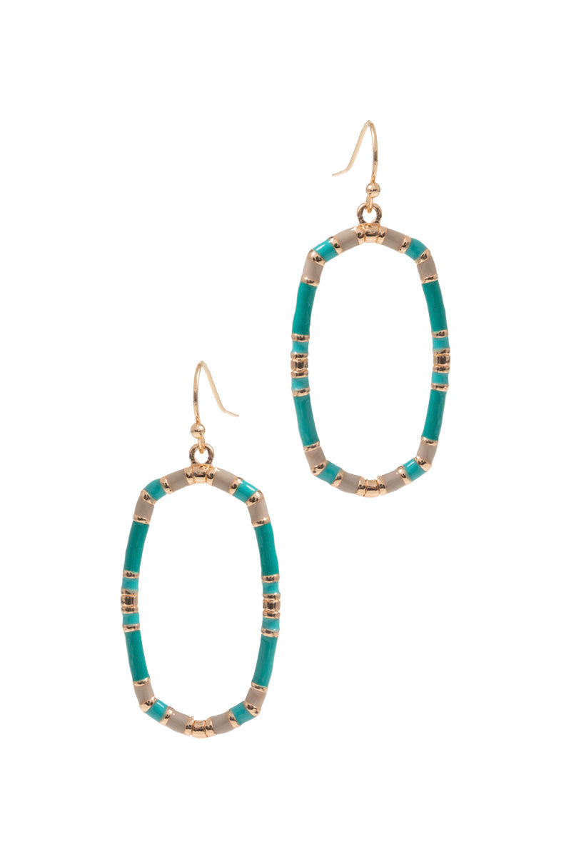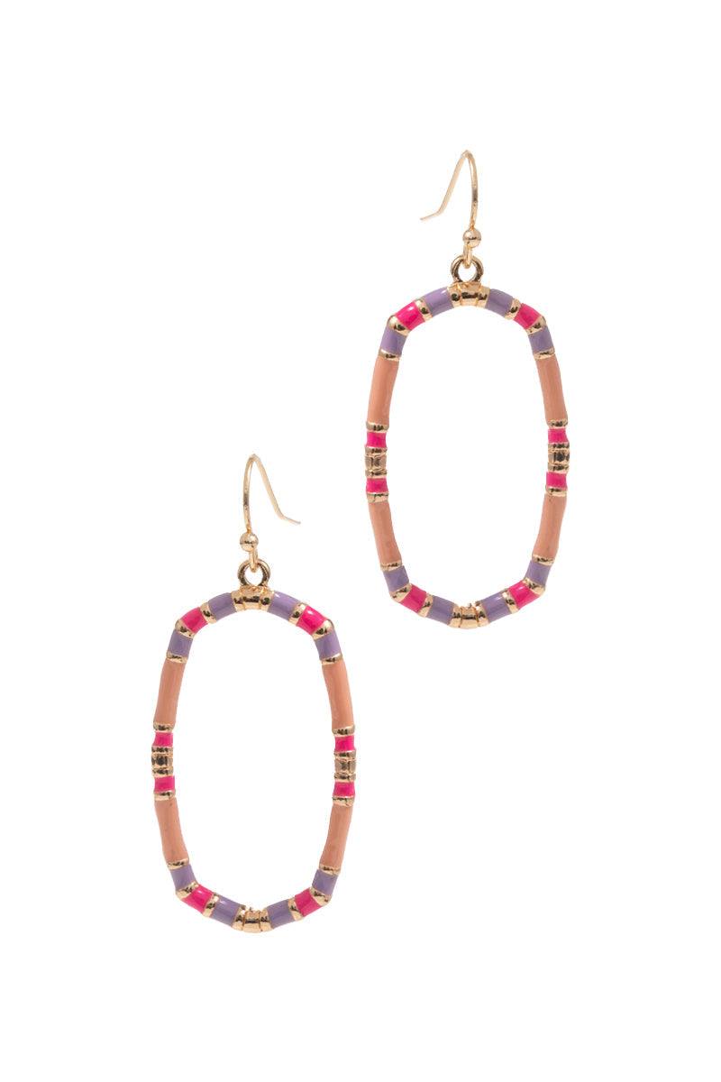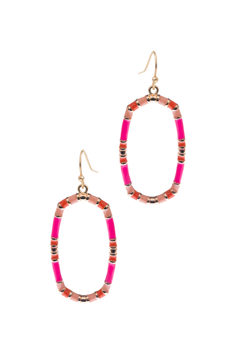 These 1.5-inch oval color block enamel hook earrings are a bold statement piece for any outfit. The unique design and vibrant colors make them a versatile addition to your jewelry collection.