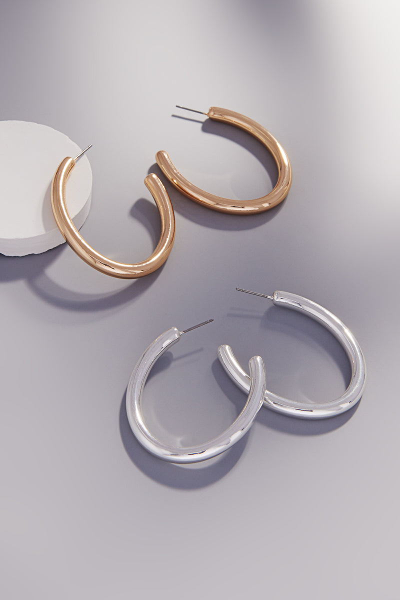 Oval Shaped Chunky Basic Metal Hoop Earrings