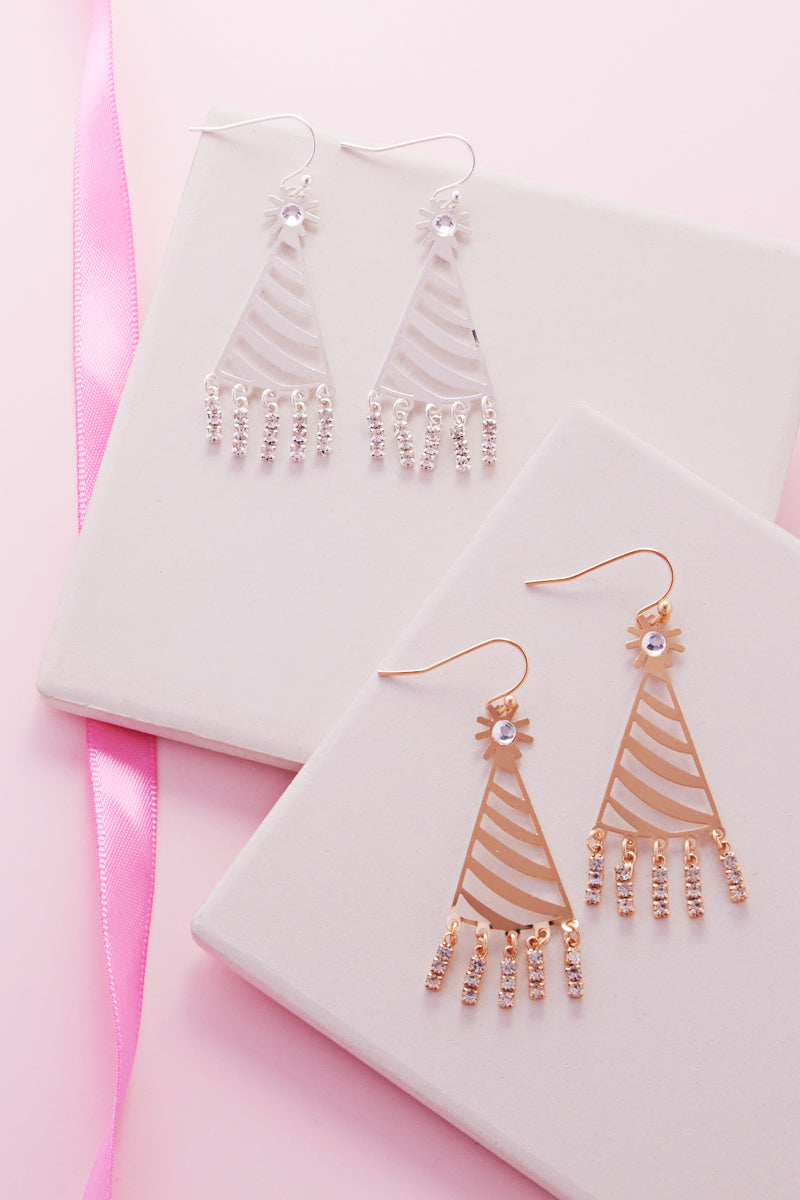 Add a touch of sparkle to your birthday celebration with our 2-inch paved birthday hat hook earrings. Made with high-quality materials, these earrings offer a secure and comfortable fit.