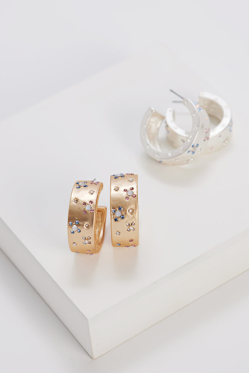 Point On The Slim Ring Paved Metal Hoop Earrings