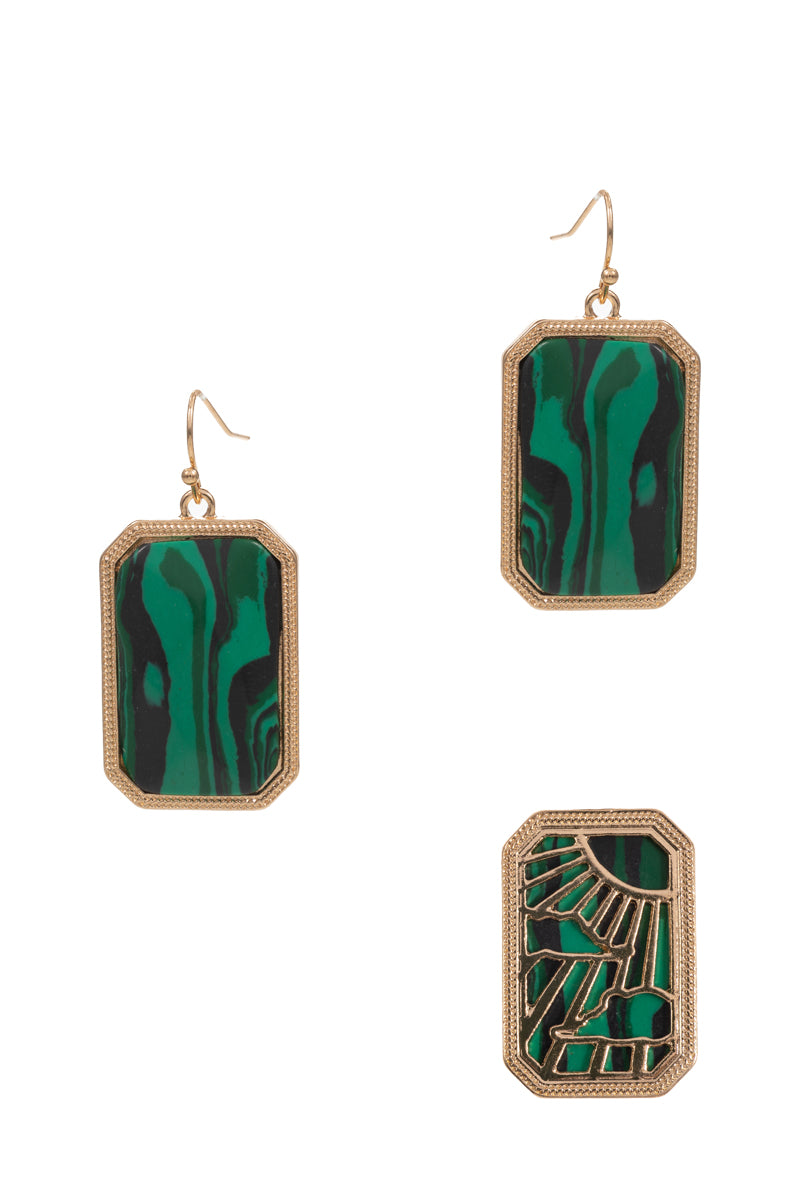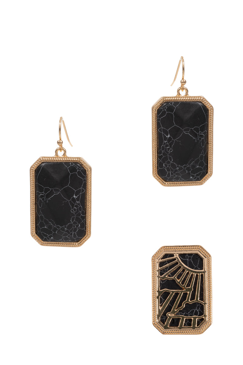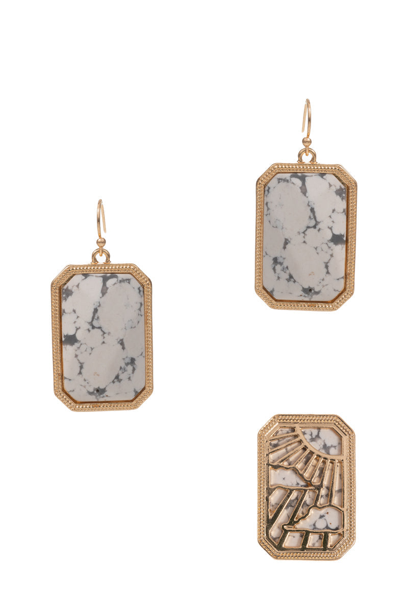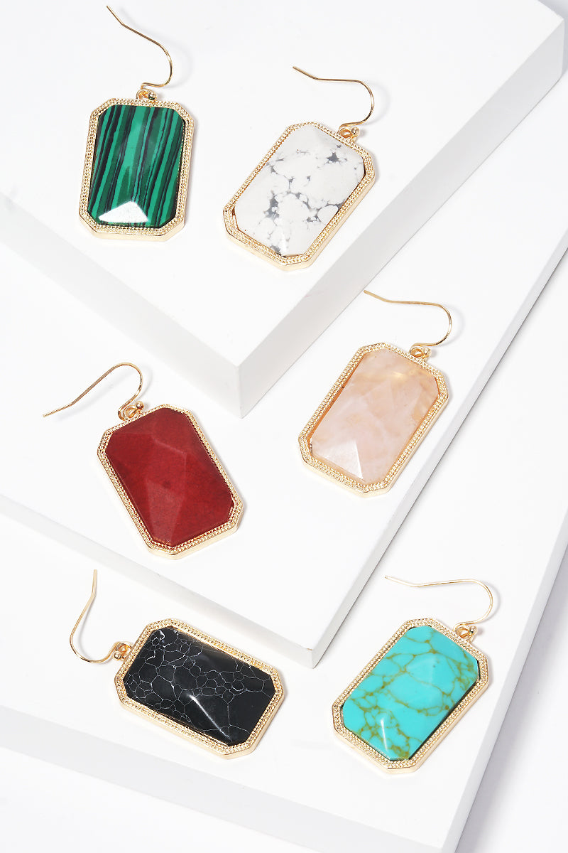 These earrings feature a teardrop-shaped stone that measures 1.25 inches. The hook design allows for easy and comfortable wear. The unique shape and size of the stone make these earrings a stylish addition to any outfit.