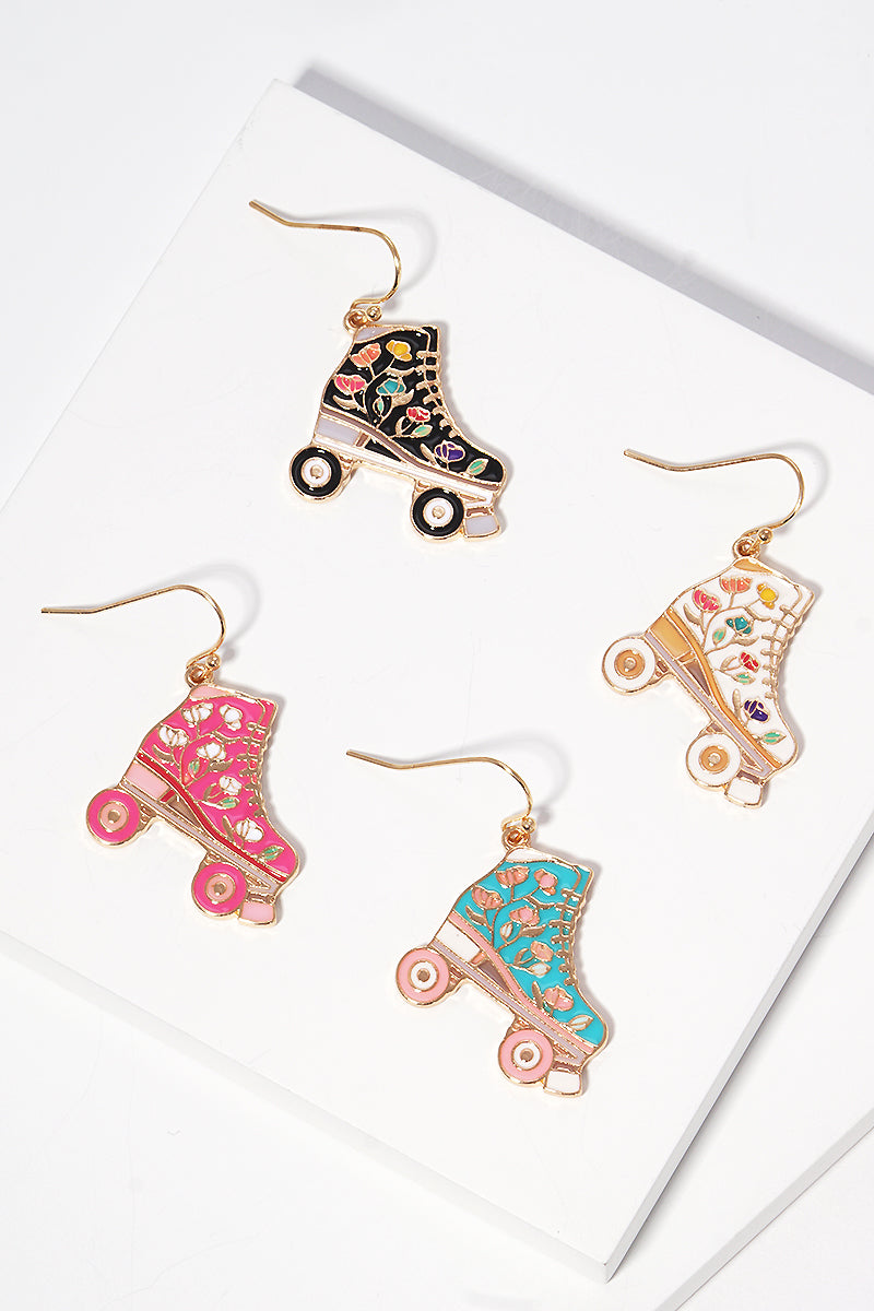 Retro Rollerskate Enamel Hook Earrings