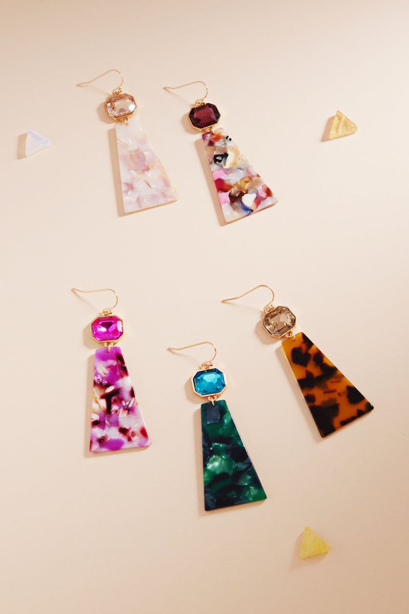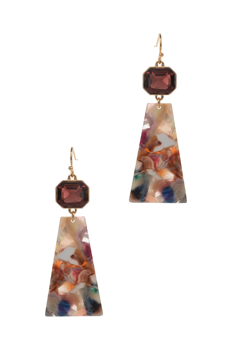 Rhombus Shaped Acetate With Glass Hook Earrings