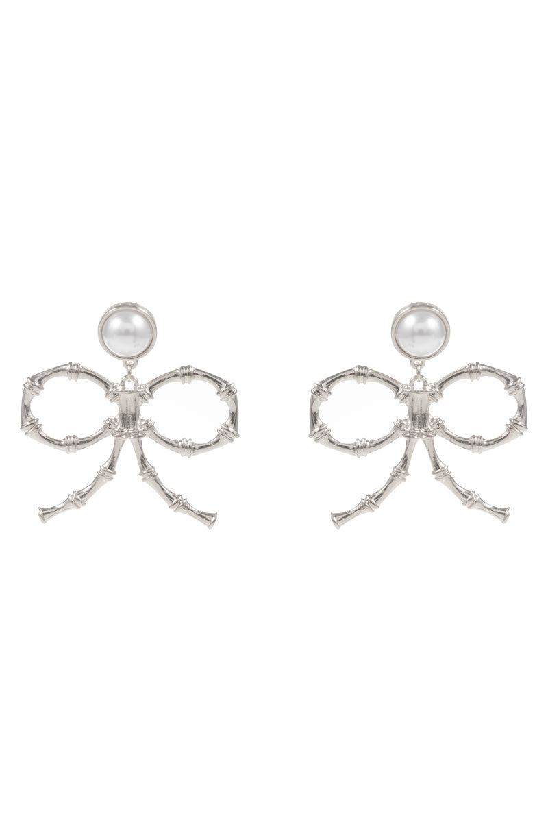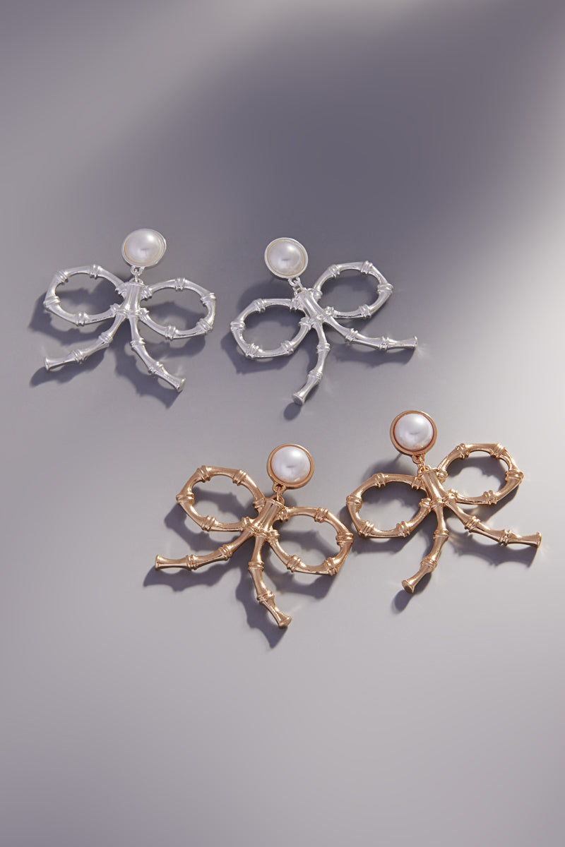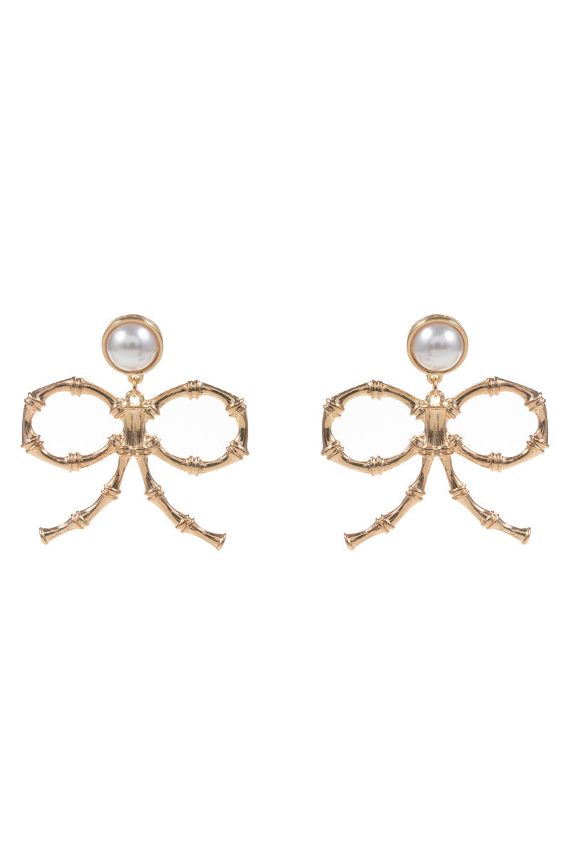 Ribbon Bow Bamboo Shaped Metal Post Earrings