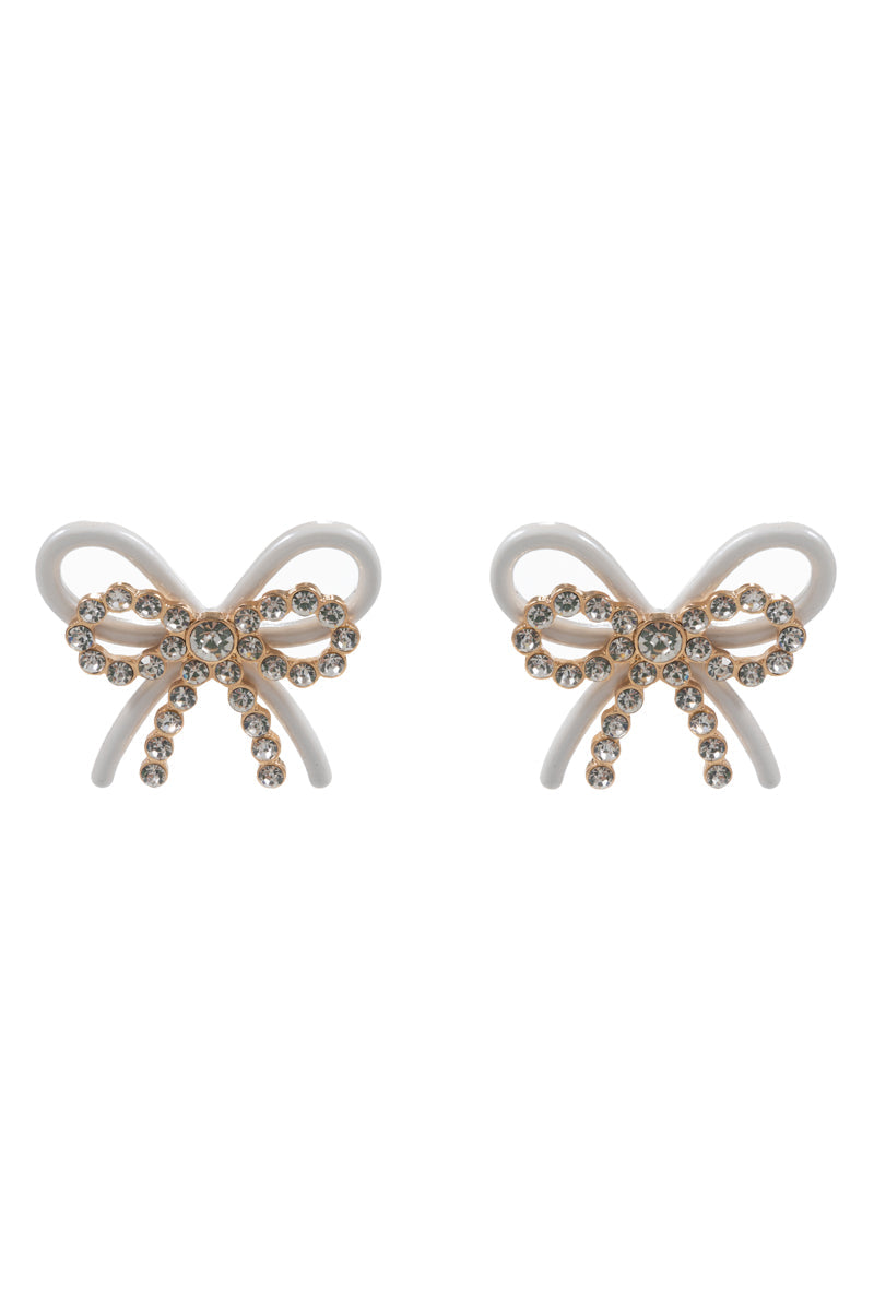 Expertly crafted with a bow-shaped coating, these post earrings add a touch of elegance to any outfit. Lightweight and comfortable, they are perfect for daily wear or special occasions. Elevate your style with these beautiful and versatile earrings.