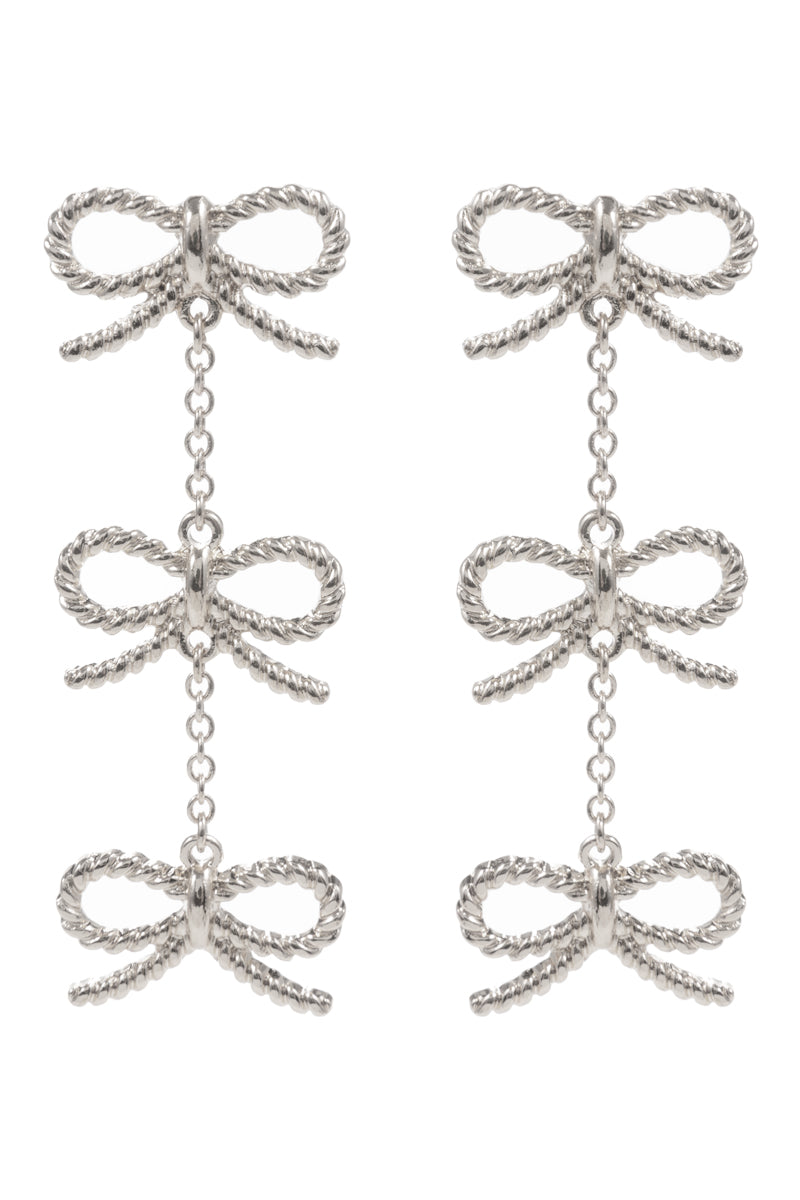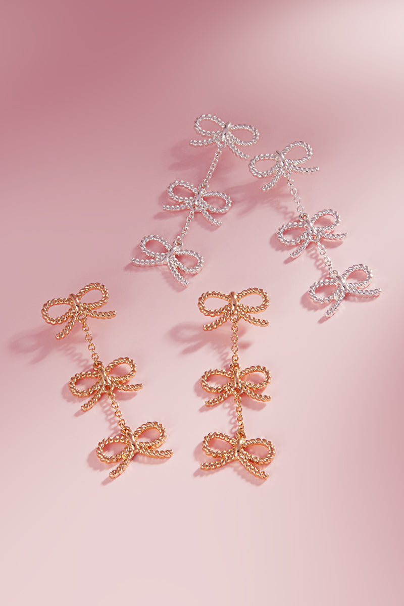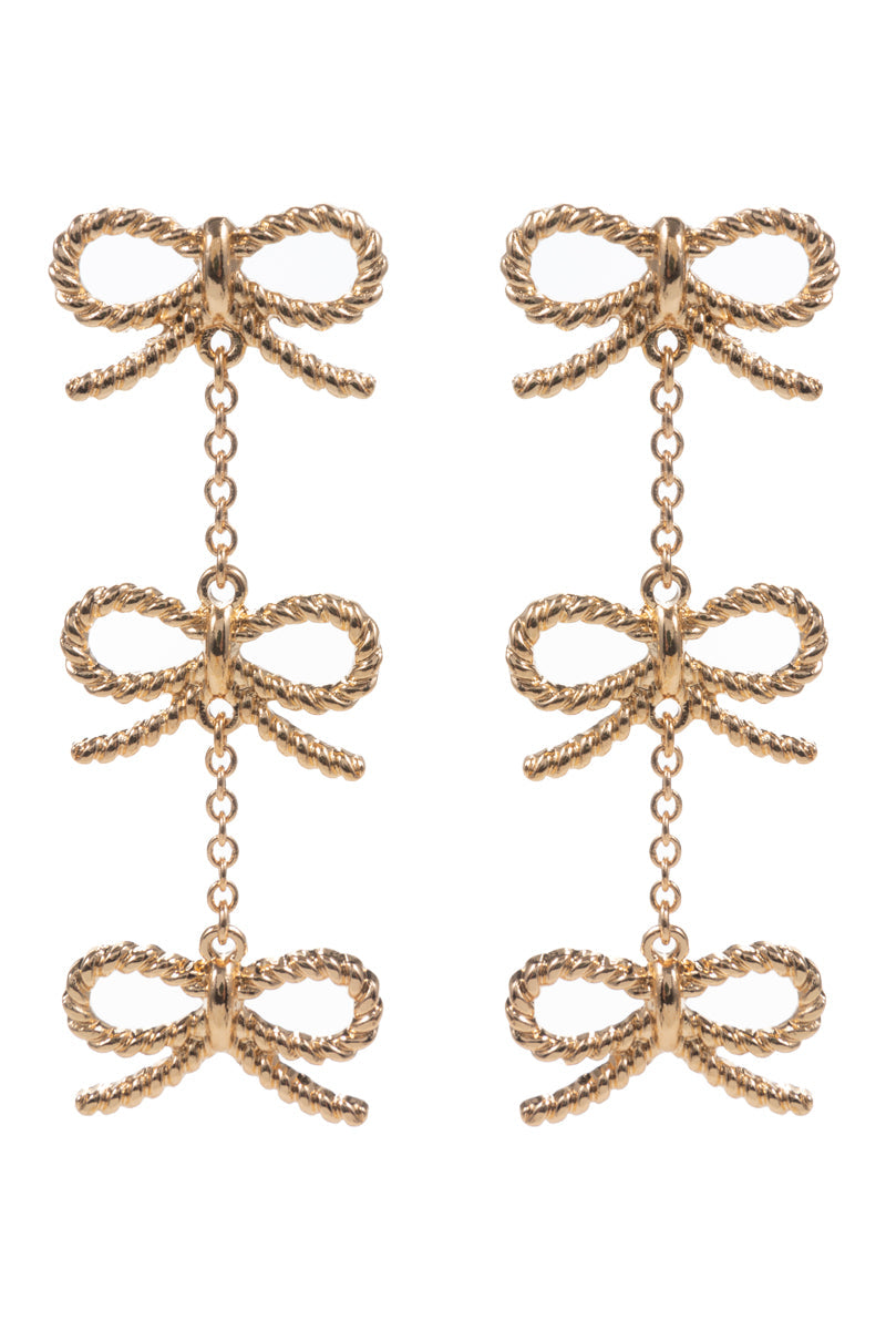 Ribbon Bow Shaped Metal Linear Post Earrings
