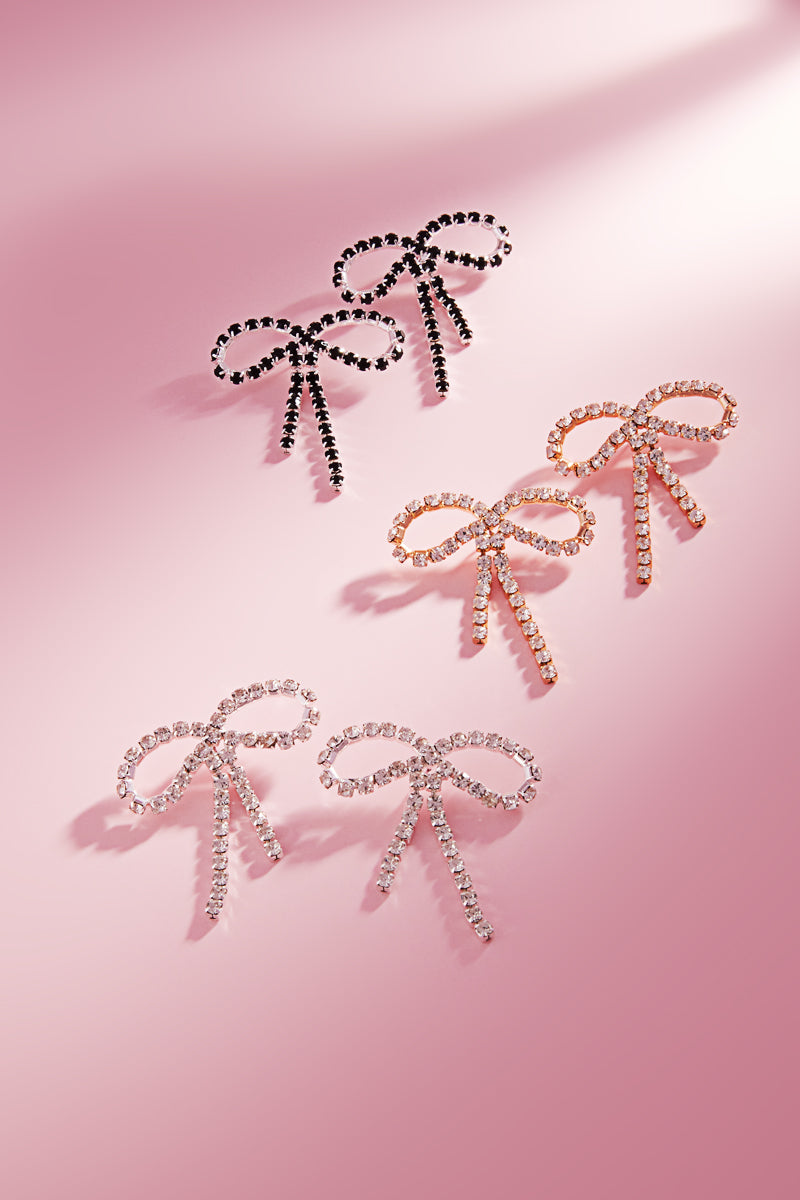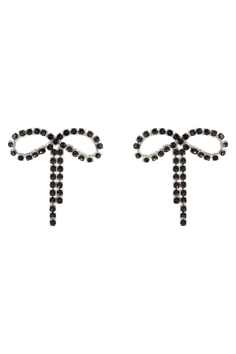 Ribbon Shaped Bow Rhinestone Post Earrings