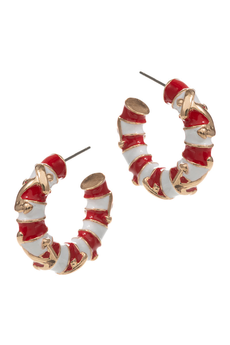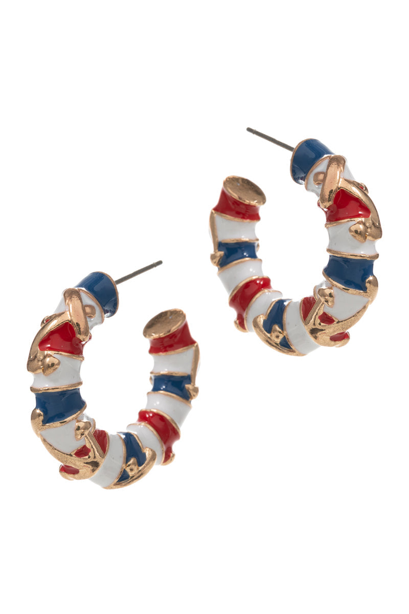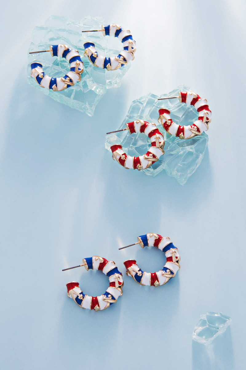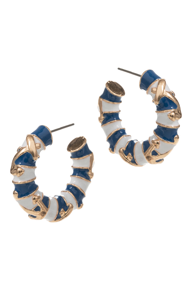 Round Anchor W Stripe Enamel Summer Hoop Earrings
