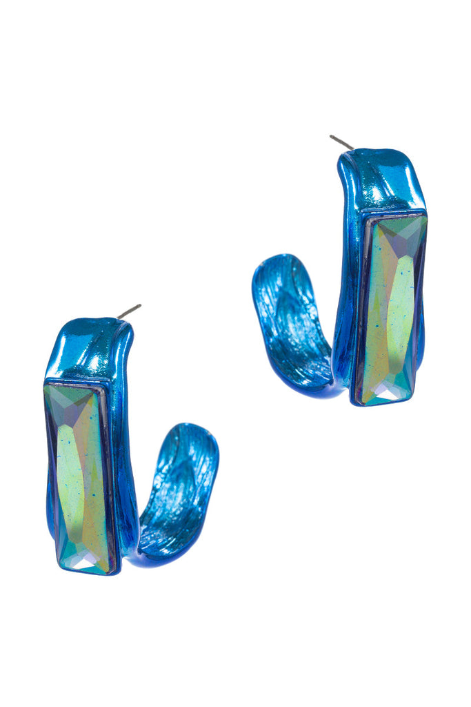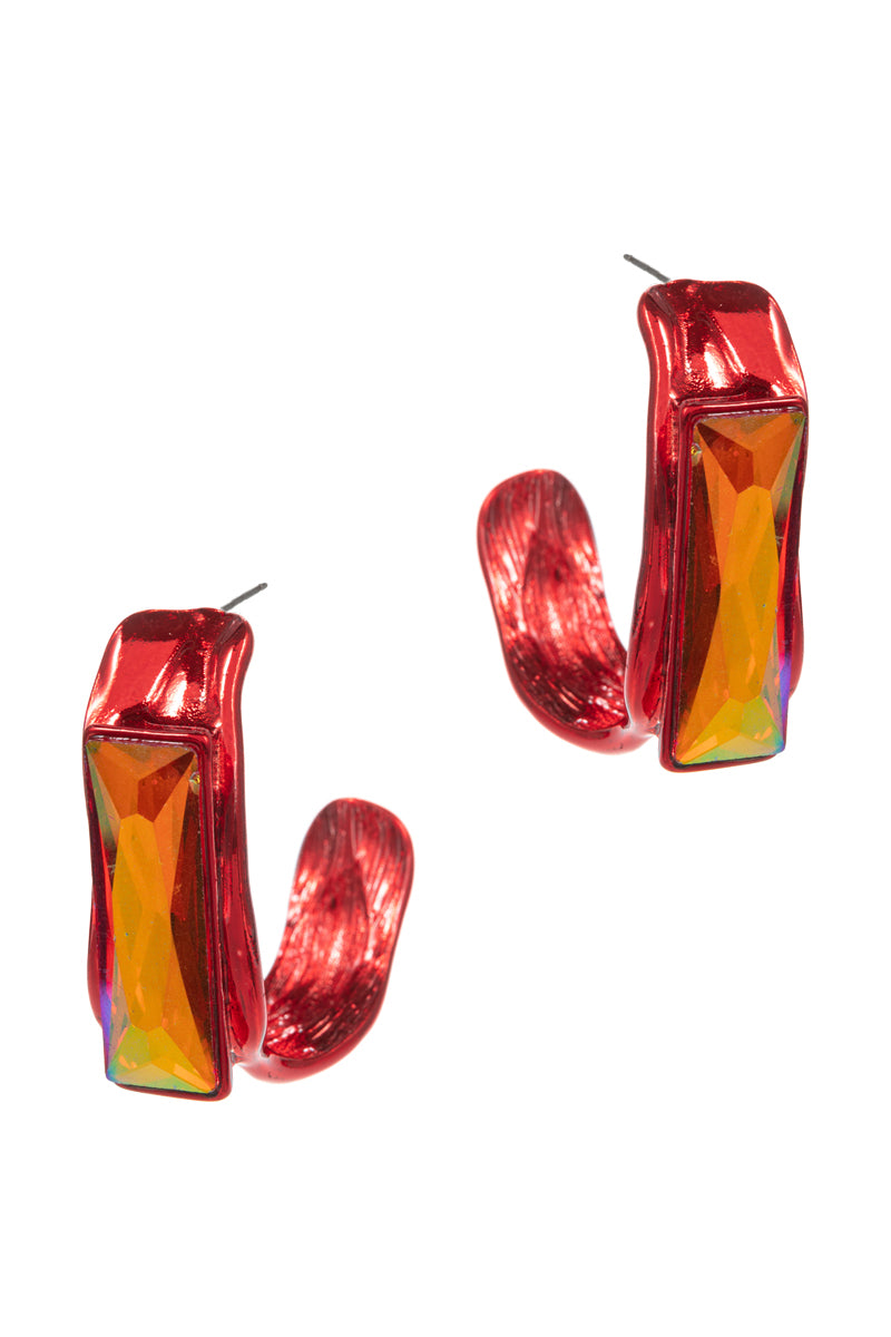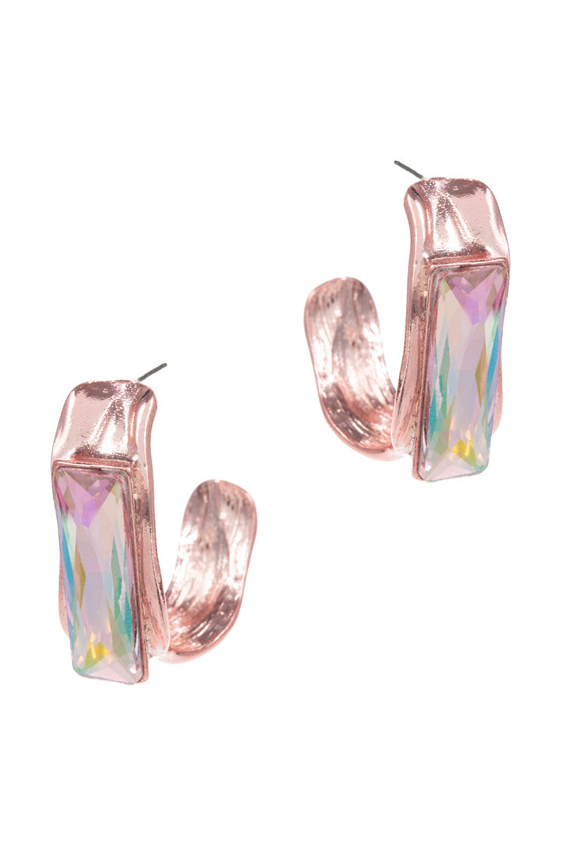 Round Multicolored Glass Rhine Stone Hoop Earrings
