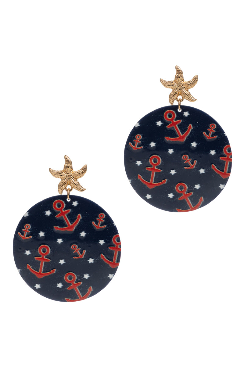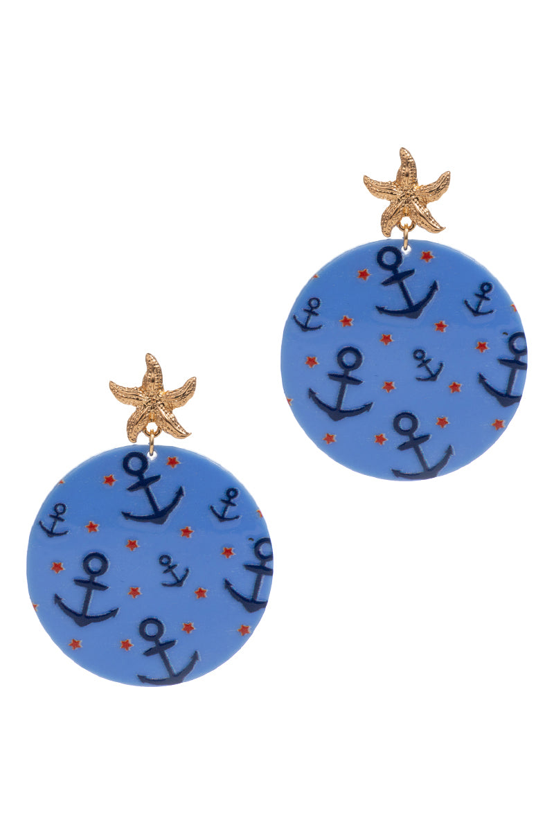 These 2.25 inch round shaped sealife pattern printed post earrings are a stylish addition to any outfit. Made with high-quality materials, they are durable and comfortable to wear.