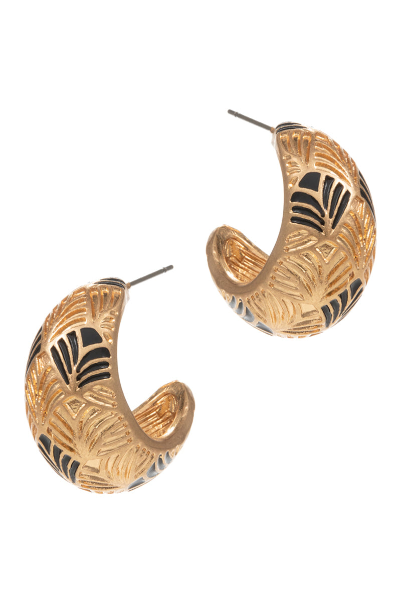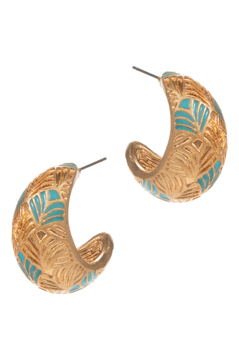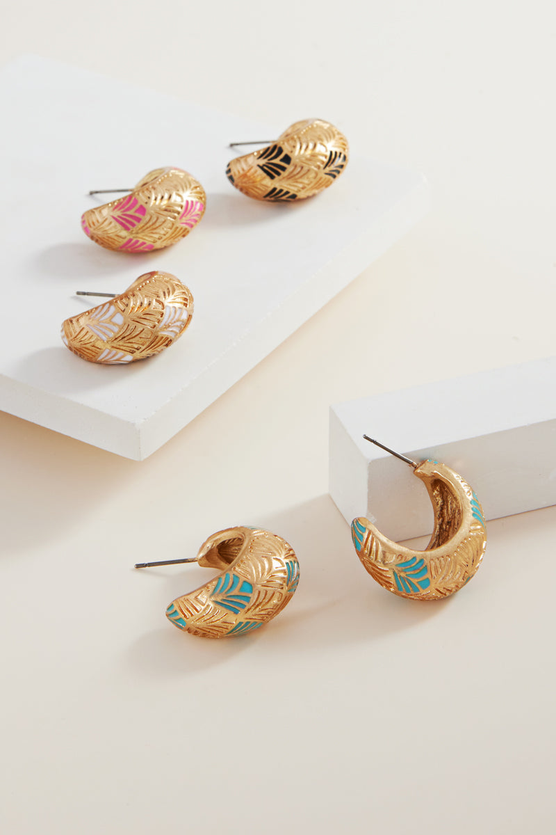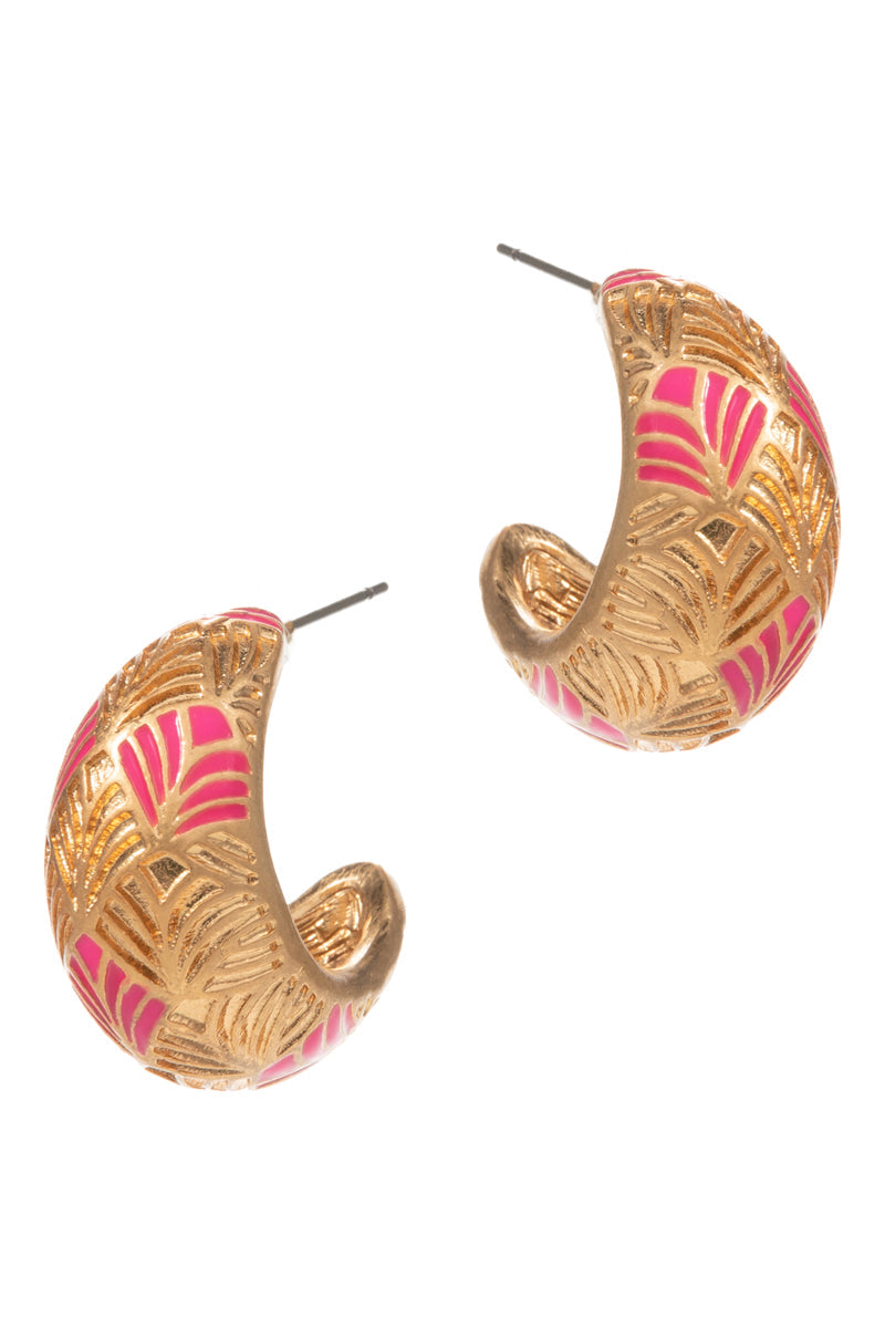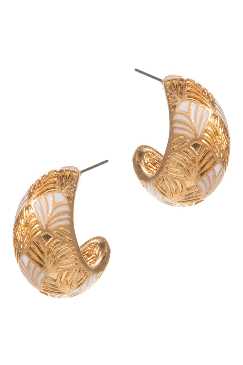 Round Shape Fan Pattern Color Enamel Hoop Earrings