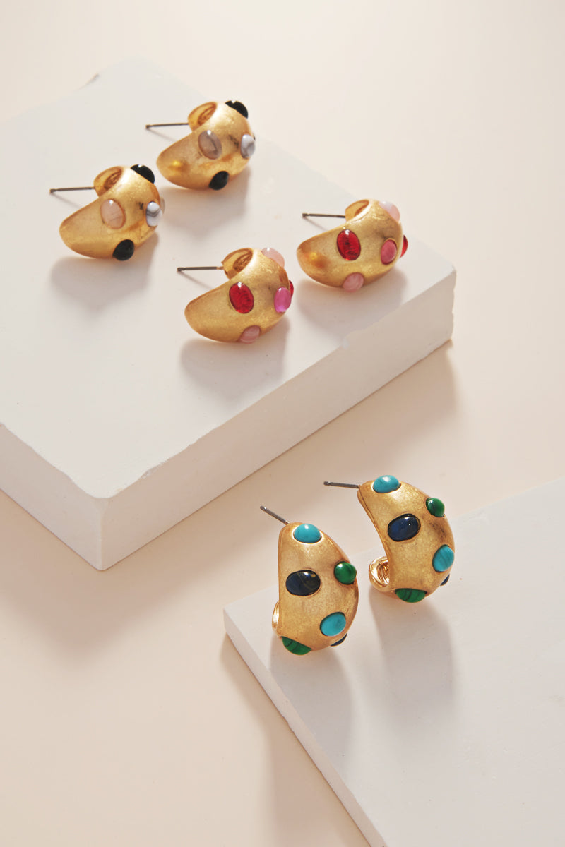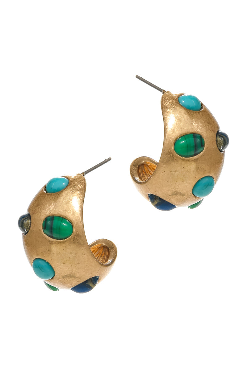 Round Shape Vintage Faux Stone Paved Hoop Earrings