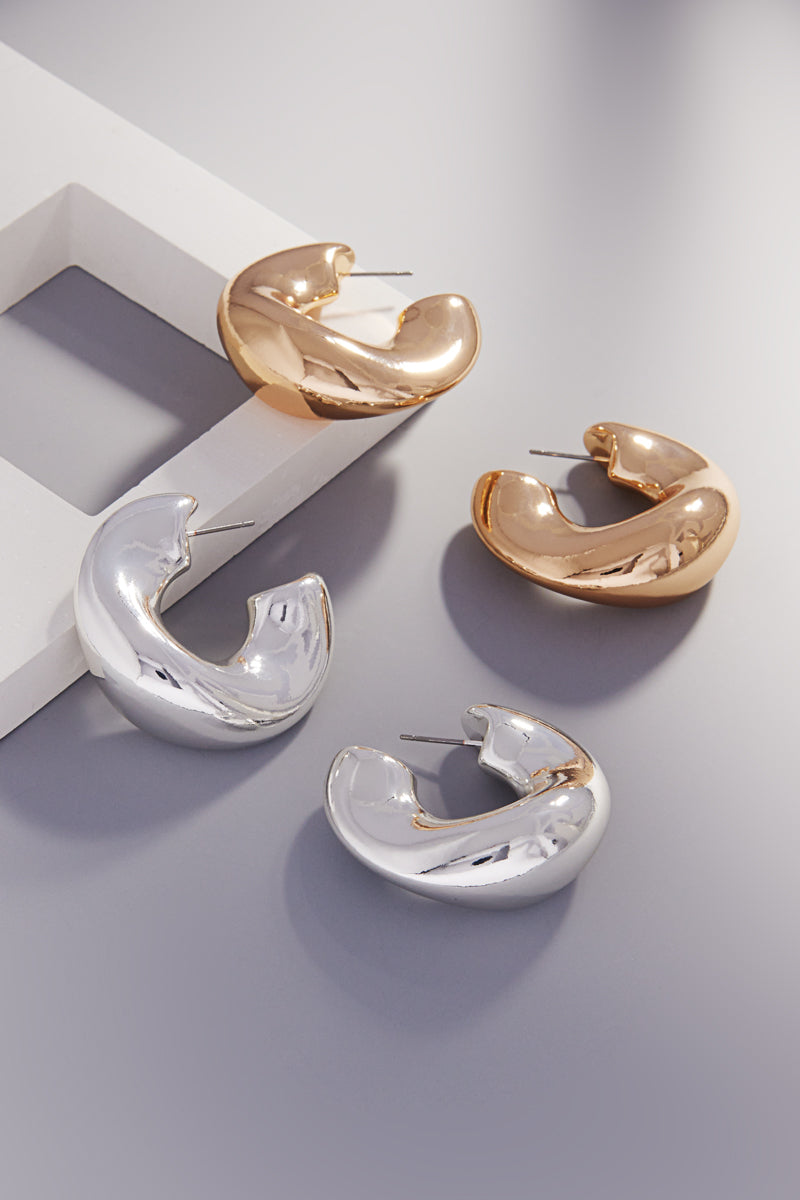 Round Shaped Chunky Basic Metal Hoop Earrings
