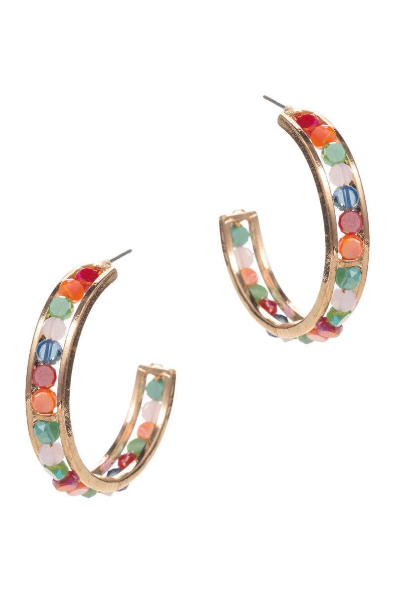 These 1.5 inch round shaped glass beads hoop earrings are the perfect addition to any outfit. The intricate design showcases the high-quality glass beads, adding a touch of elegance and sophistication.