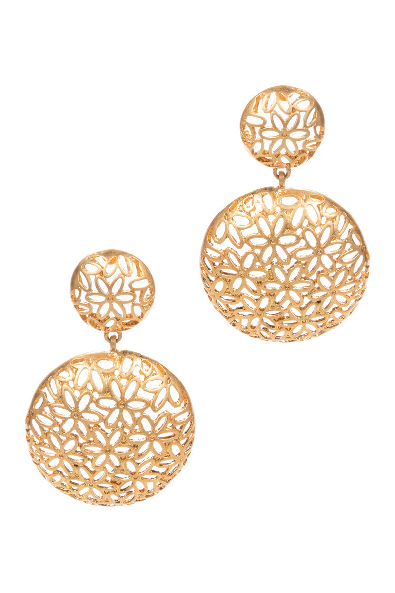 Round Shaped Puffed Flower Pattern Post Earrings