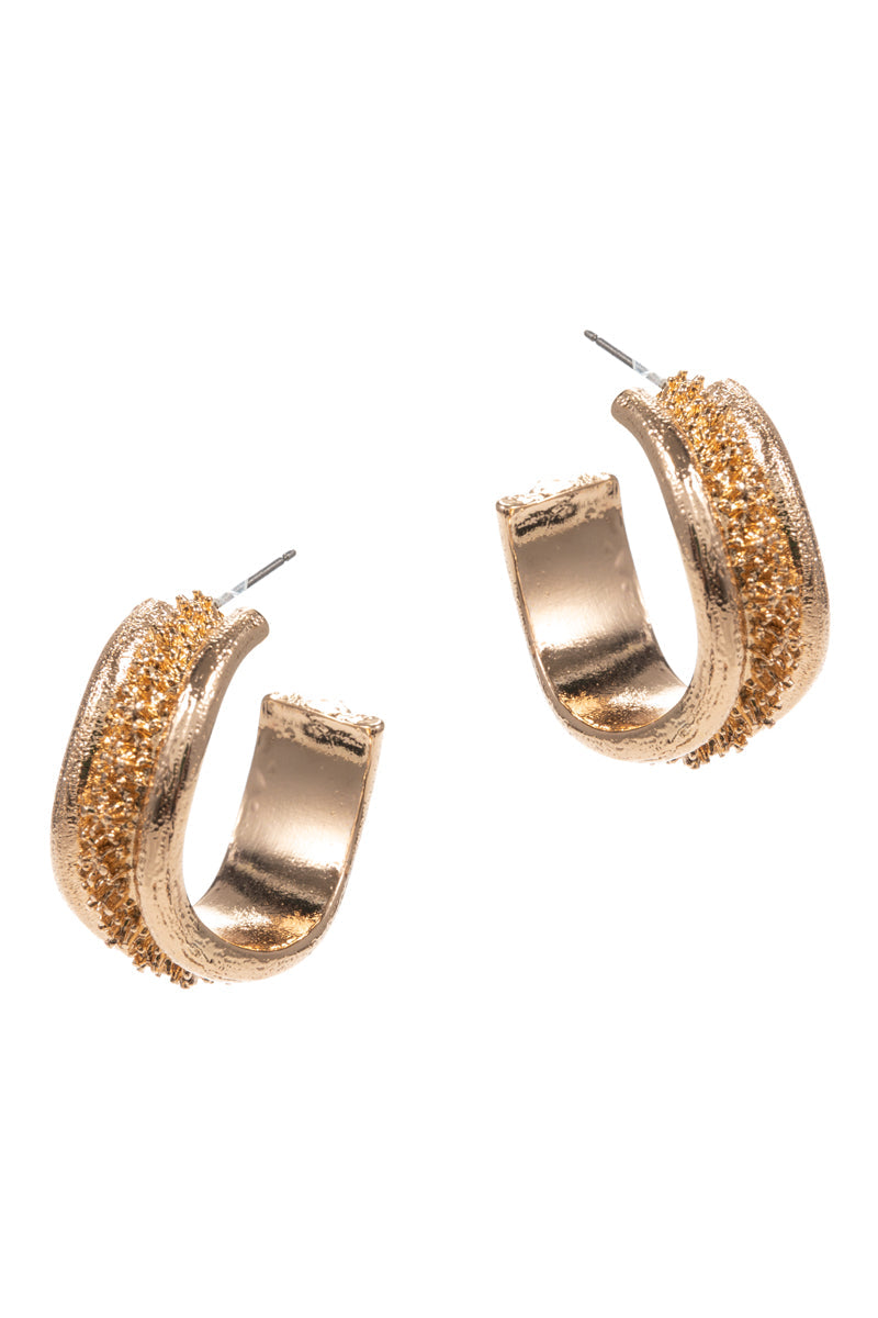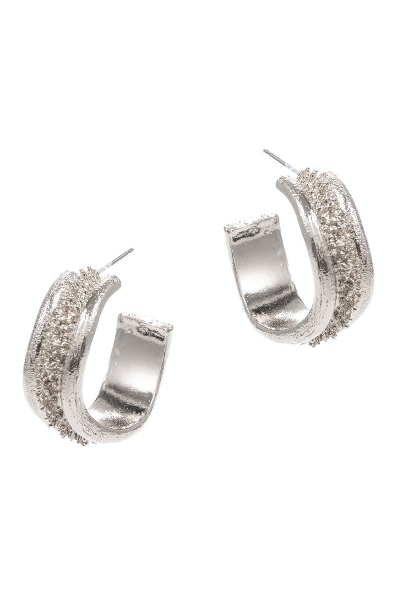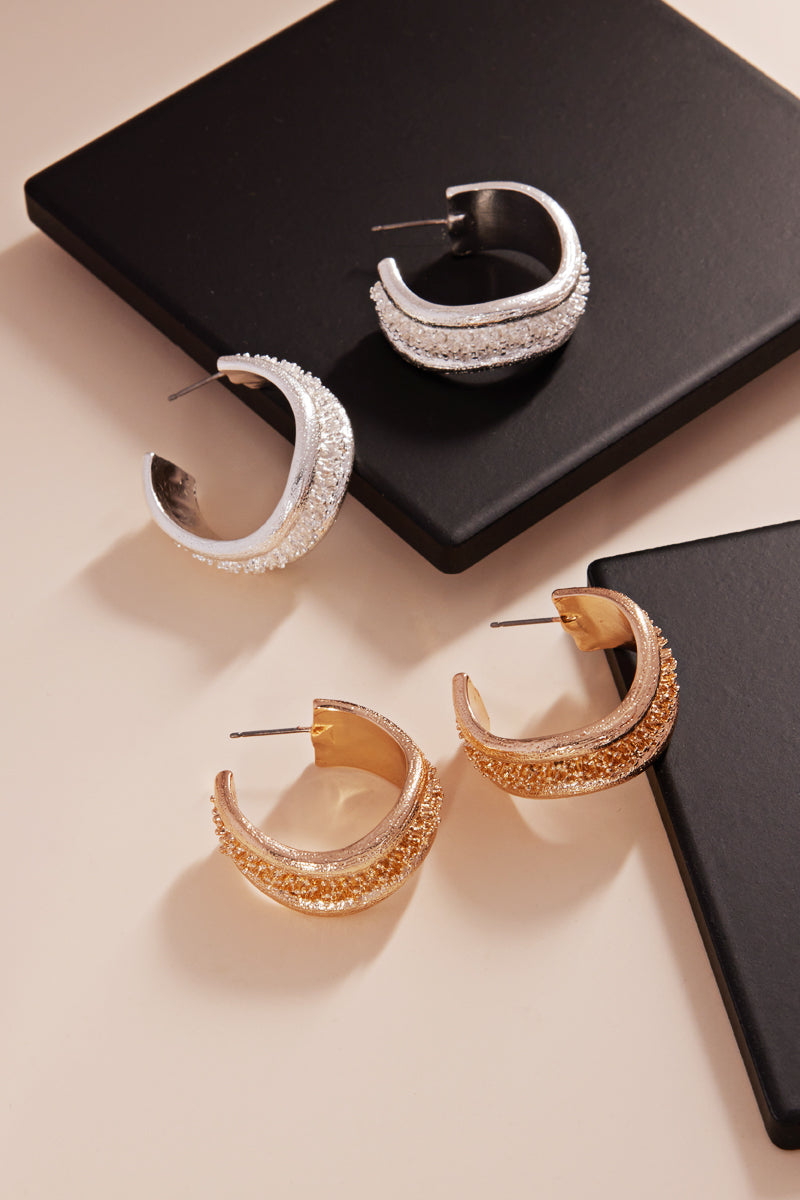 Expertly crafted with textured metal, these 1.25 inch round hoop earrings are a stylish addition to any jewelry collection. The unique shape adds a touch of sophistication, while the textured design provides a subtle yet eye-catching detail. Elevate your look with these versatile earrings.