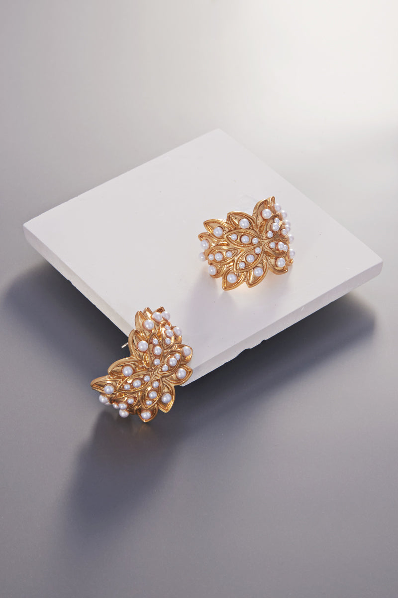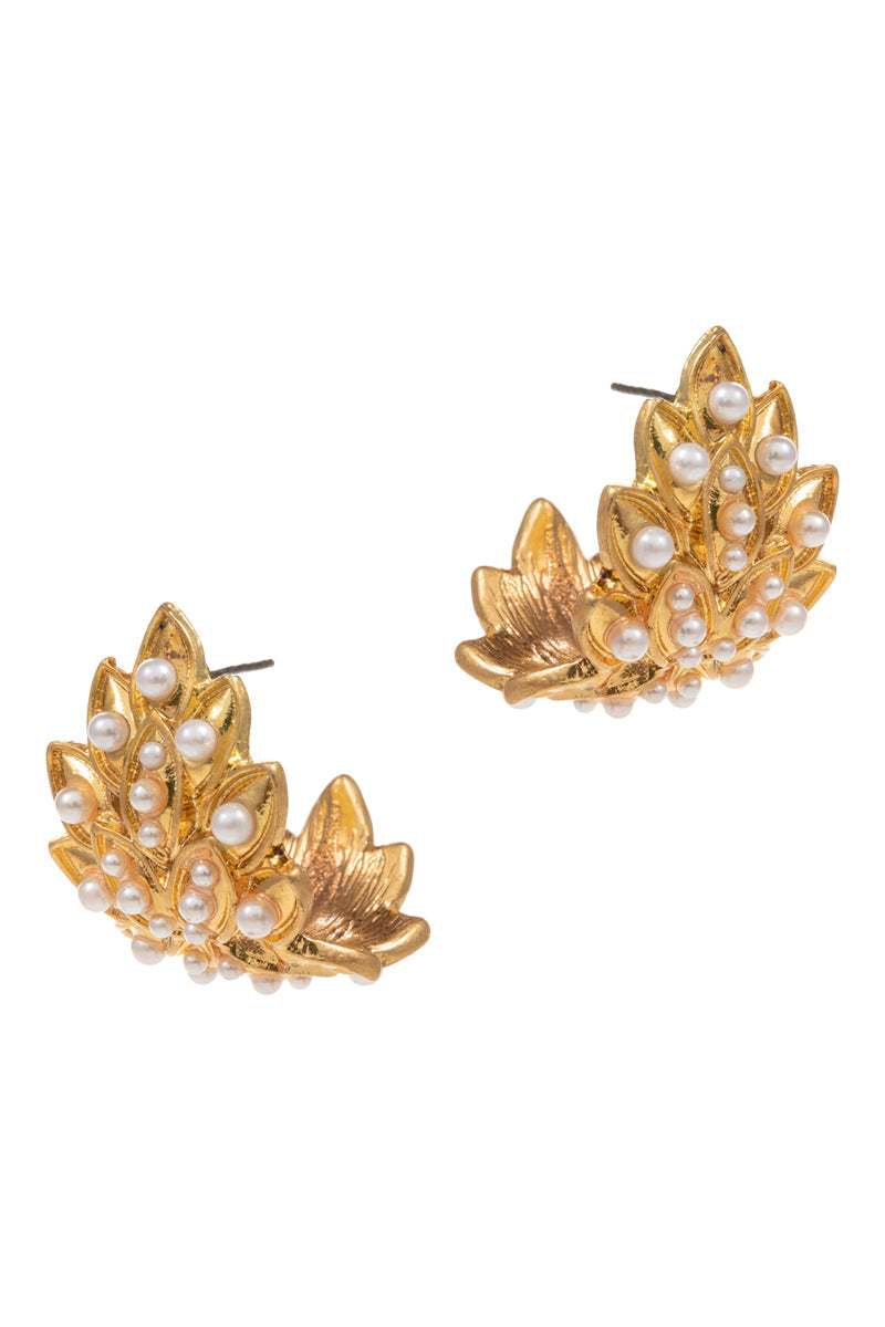 Round Shaped Vintage Pearl Leaf Hoop Earrings