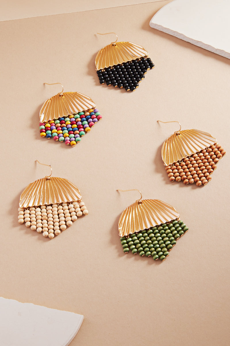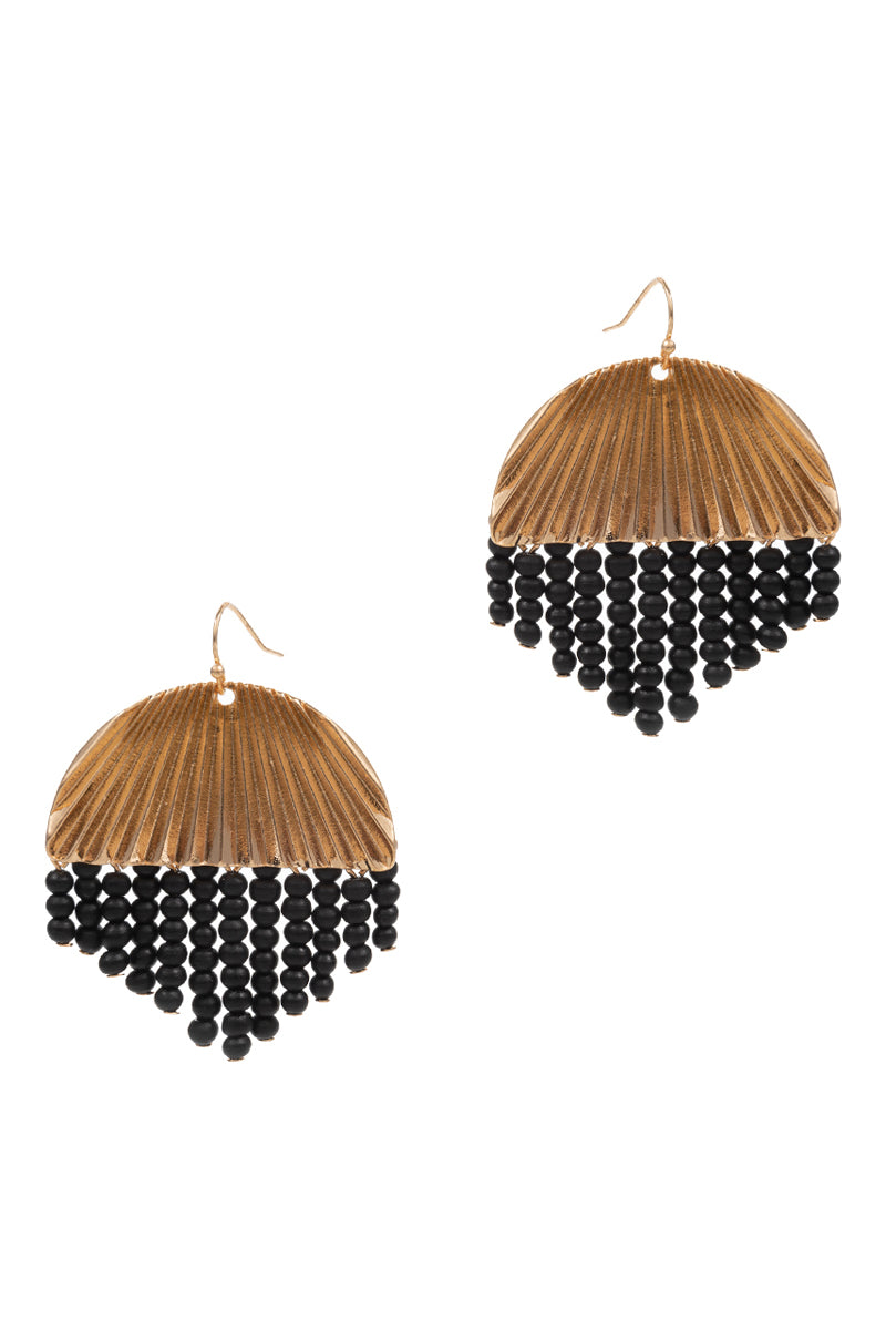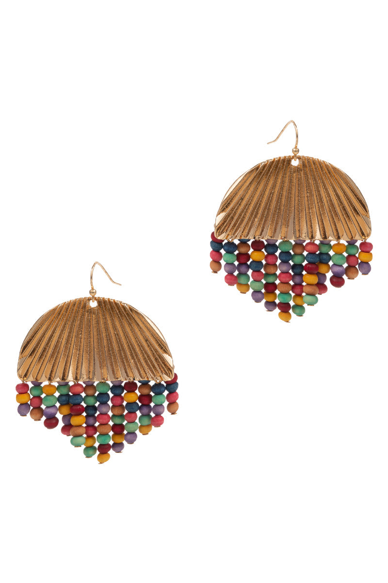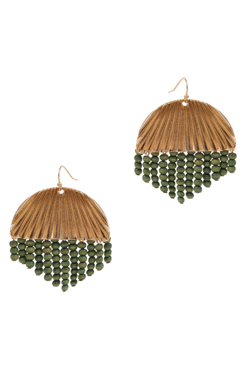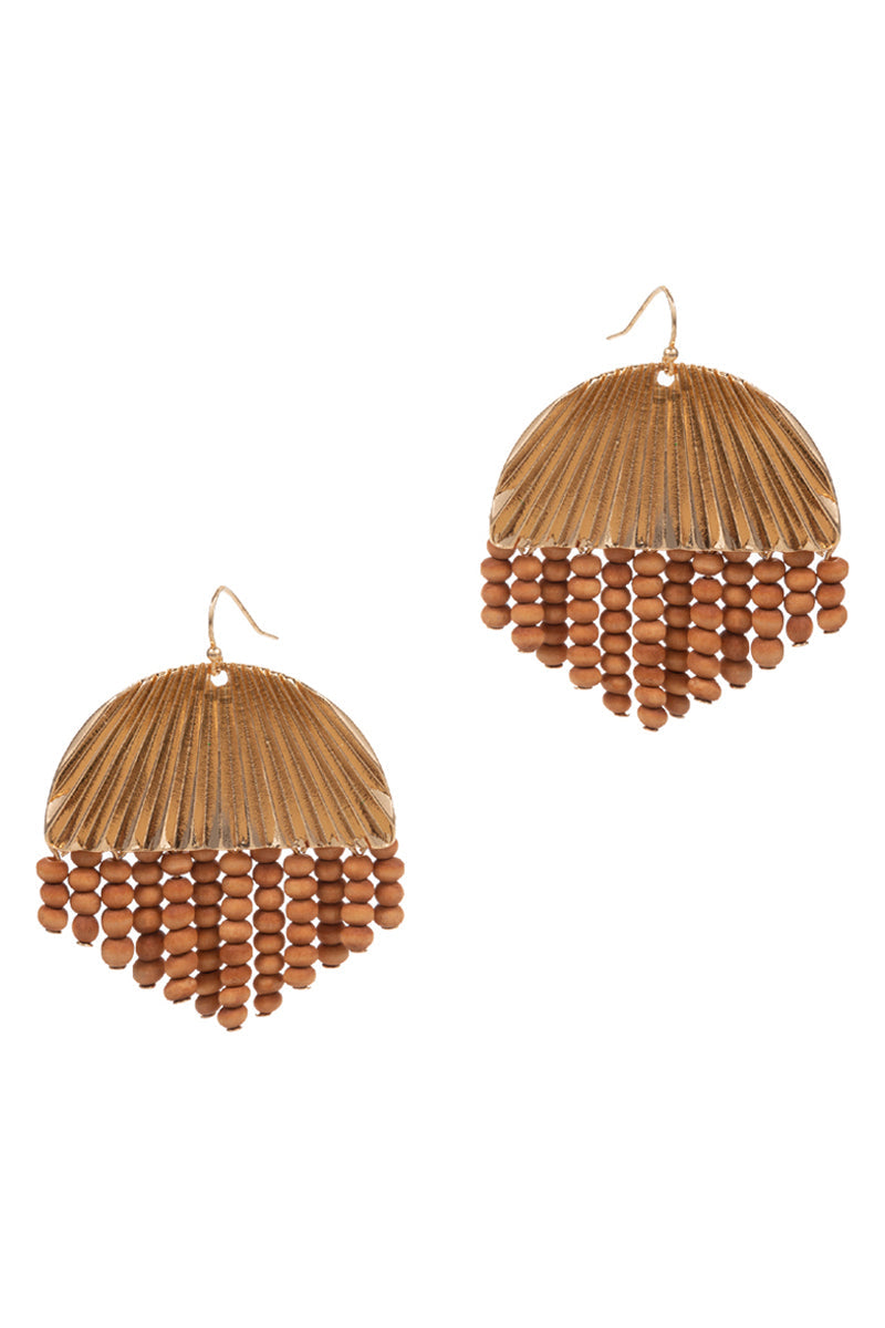 Round Shaped Wood Bead Tassel Hook Earrings
