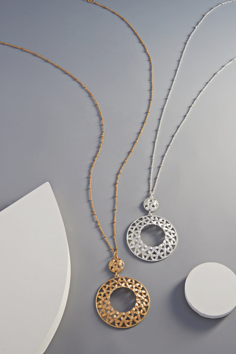 Round Shaped Woven Textured Metal Long Necklace