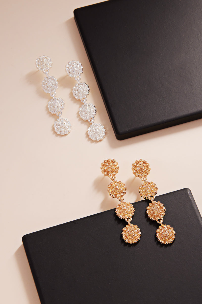 Expertly crafted with textured metal, these linear post earrings add a touch of sophistication to any outfit. The 2.25 inch round shape offers a unique and elegant look. Elevate your style with these statement earrings.