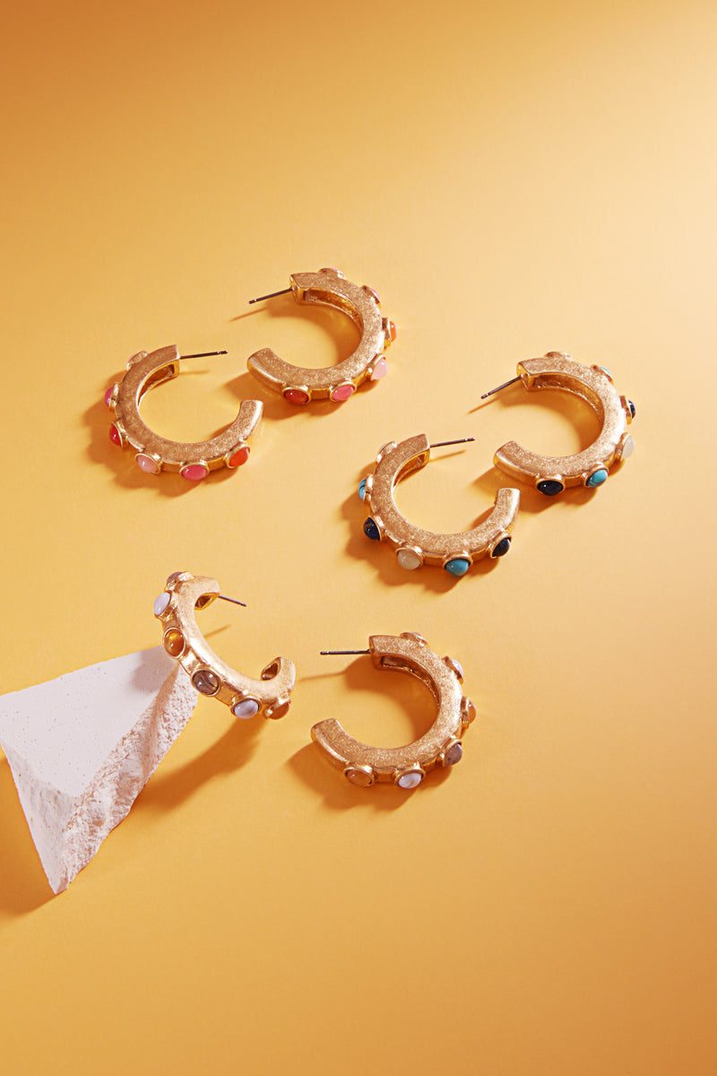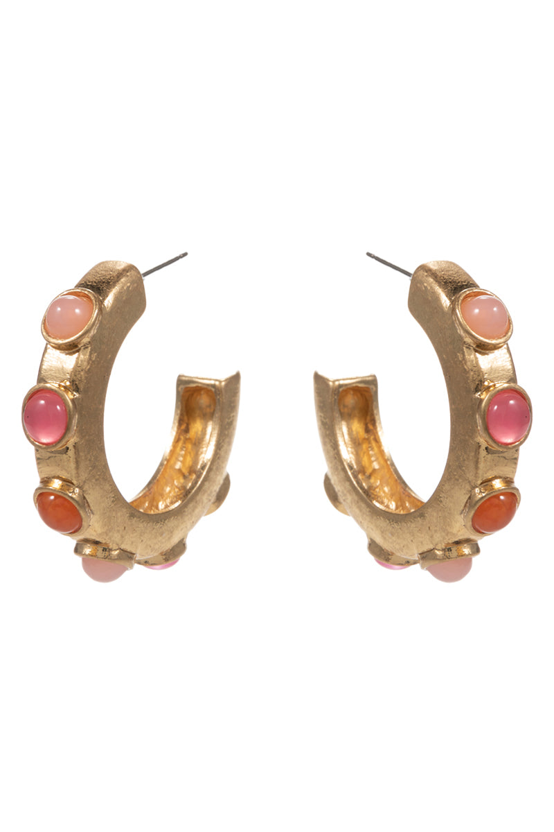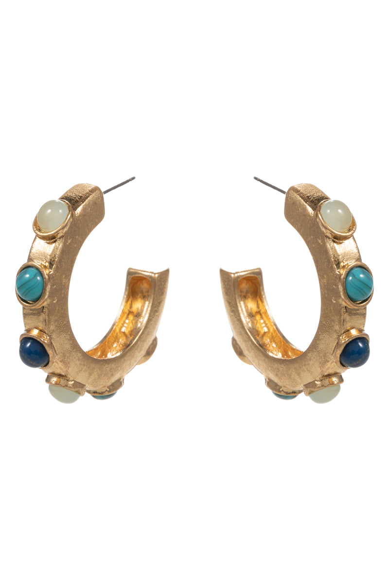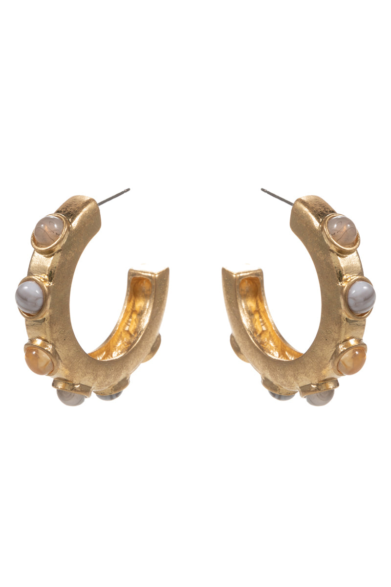 Round Vintage Resin Faux Stone Pin Hoop Earrings