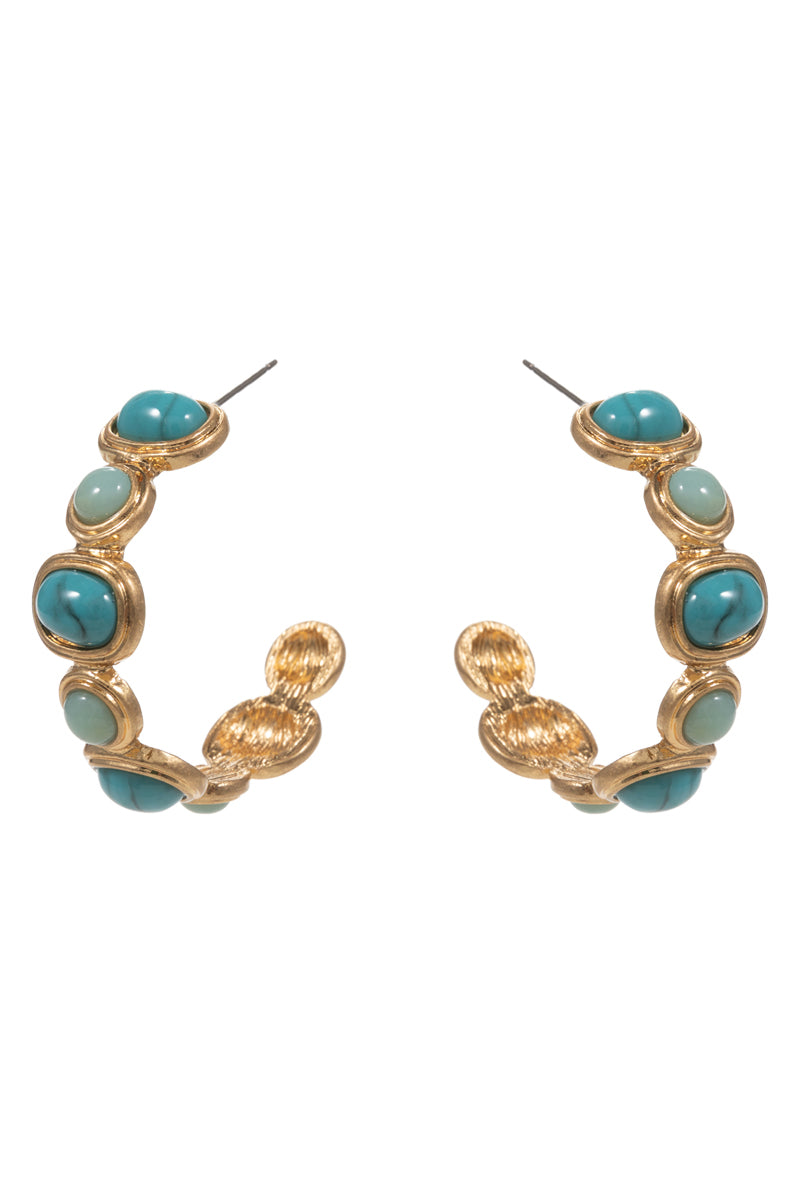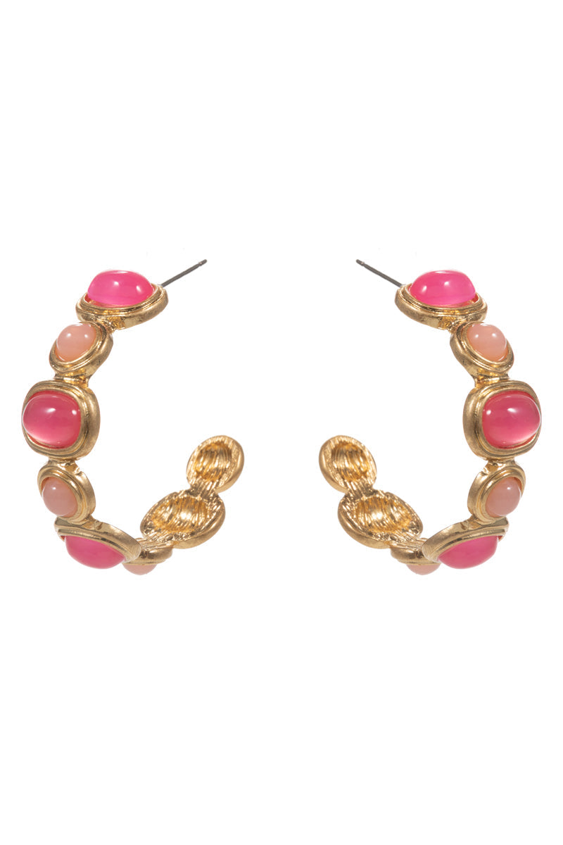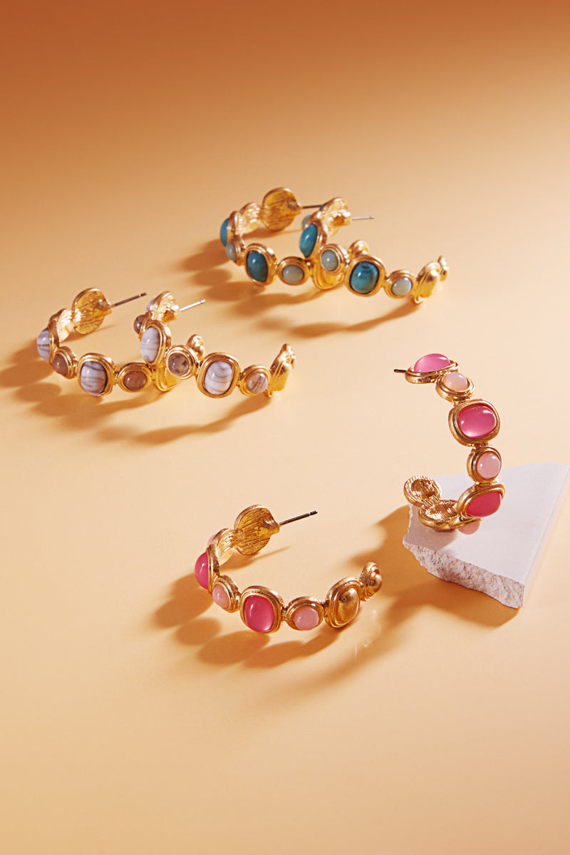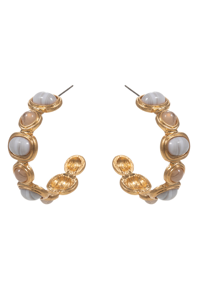 Round Vintage Resin Faux Stone Pin Hoop Earrings