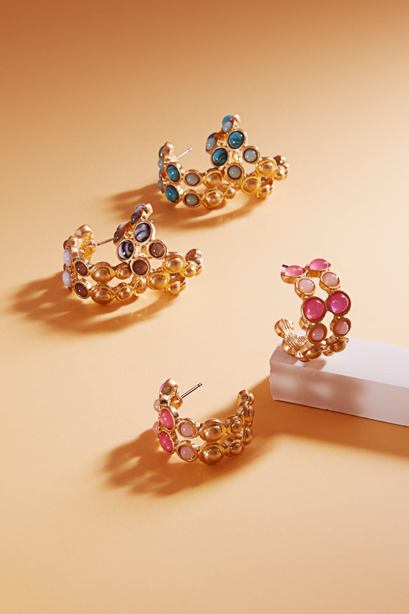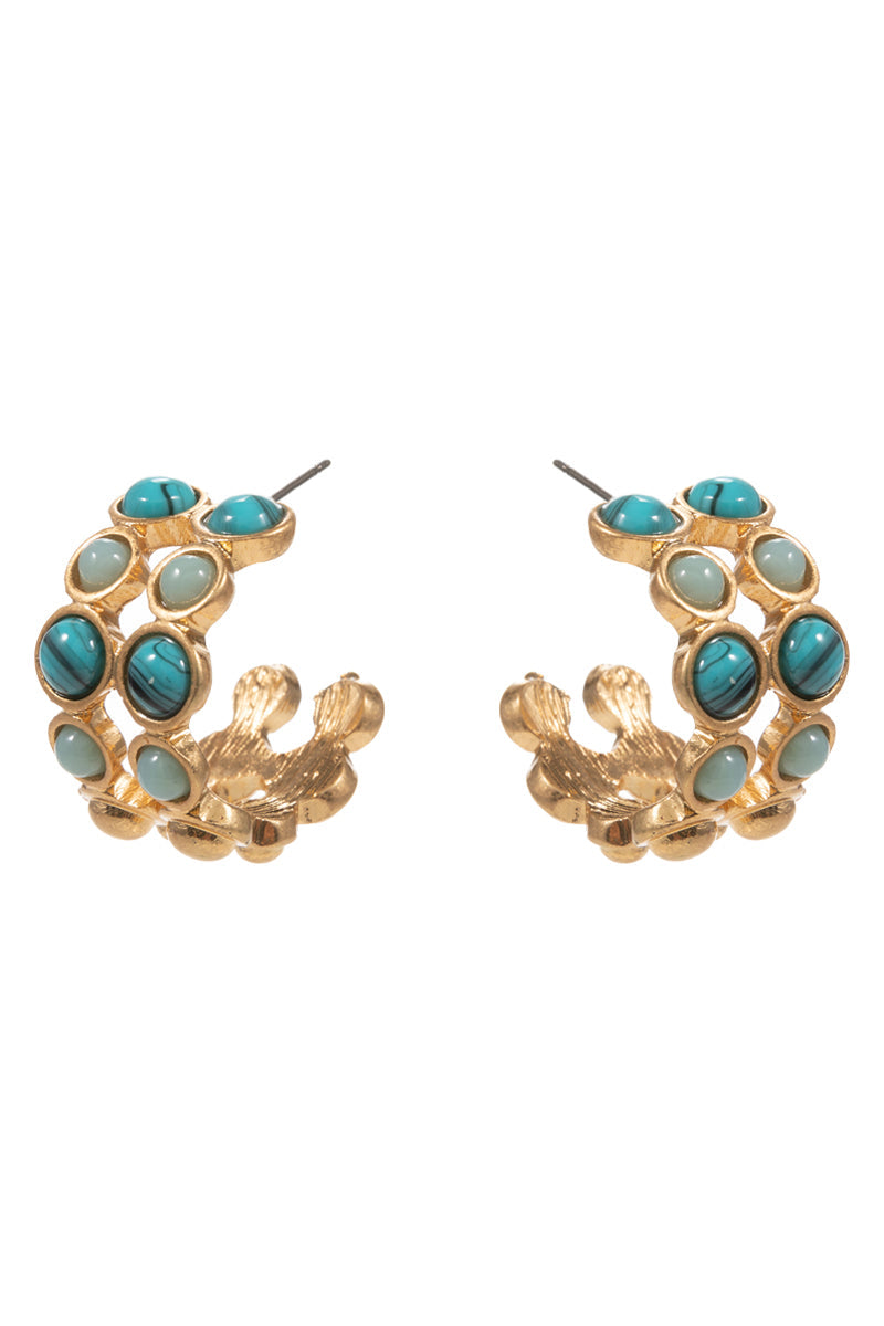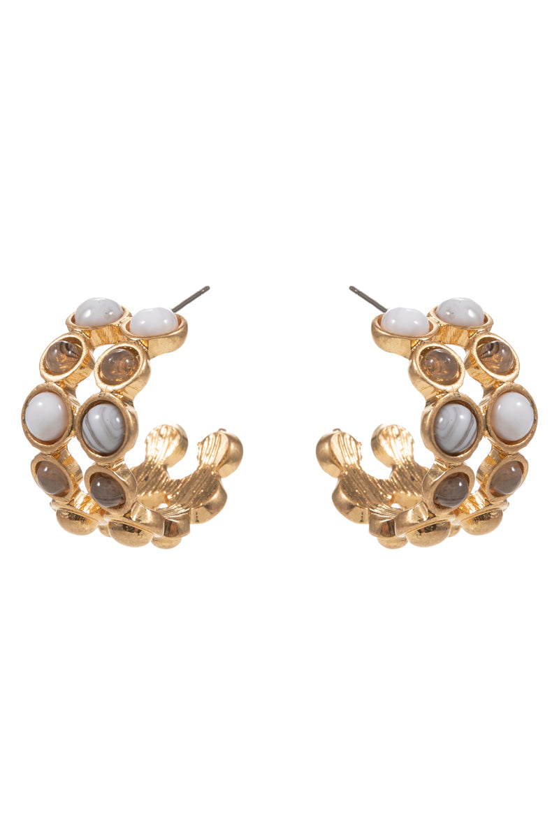 Round Vintage Resin Faux Stone Pin Hoop Earrings