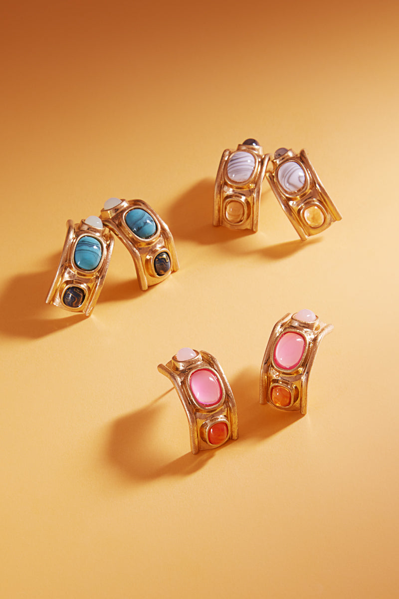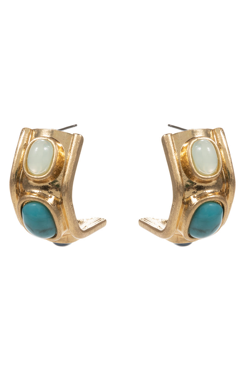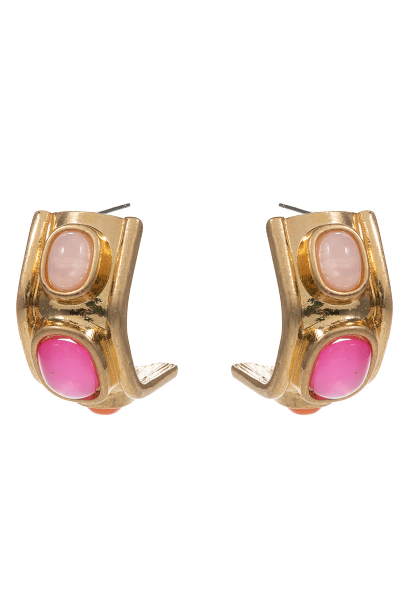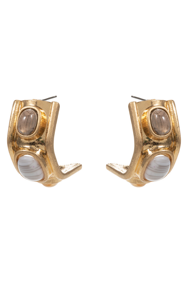 Round Vintage Resin Faux Stone Pin Hoop Earrings