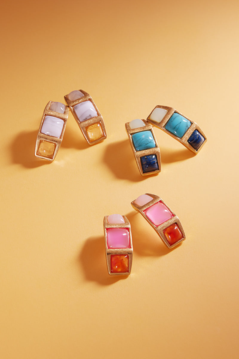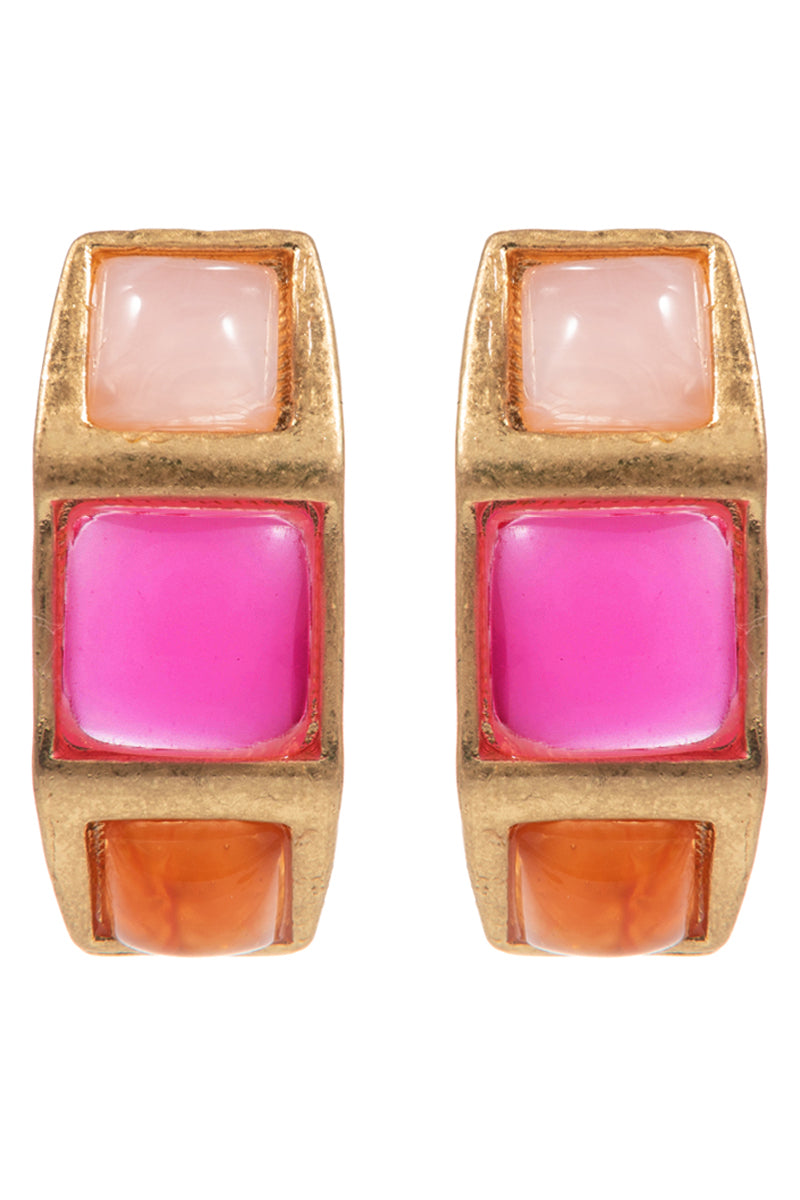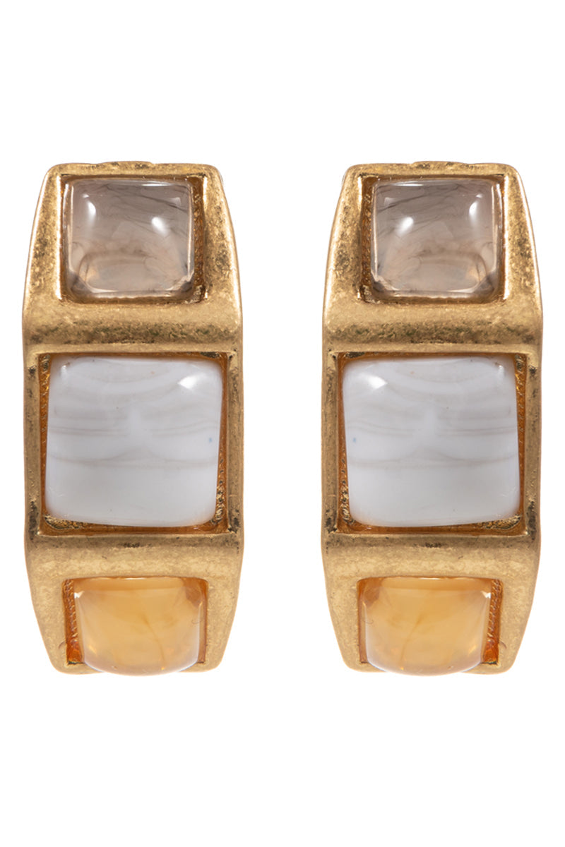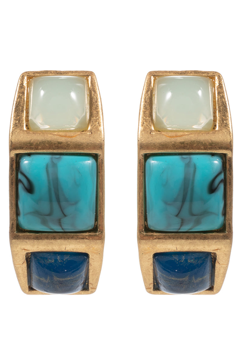 Round Vintage Resin Faux Stone Pin Hoop Earrings