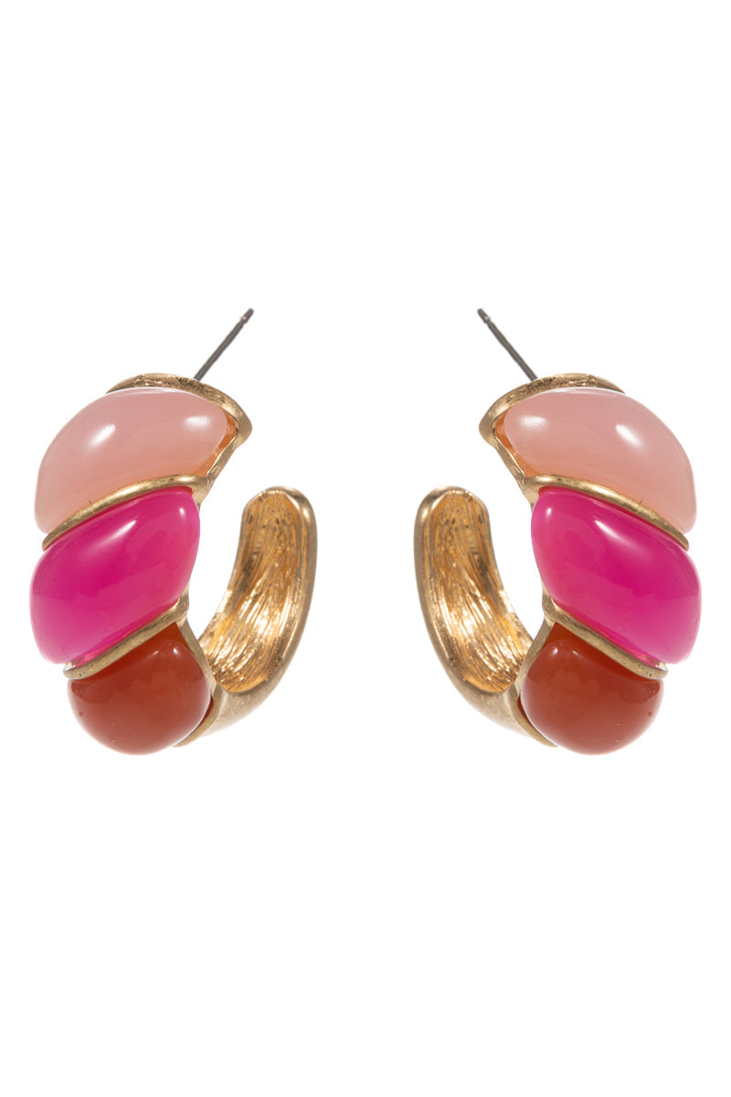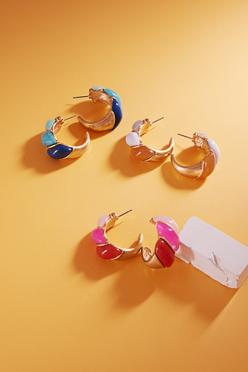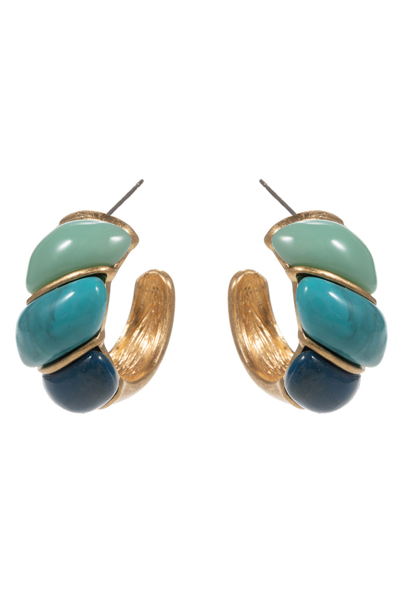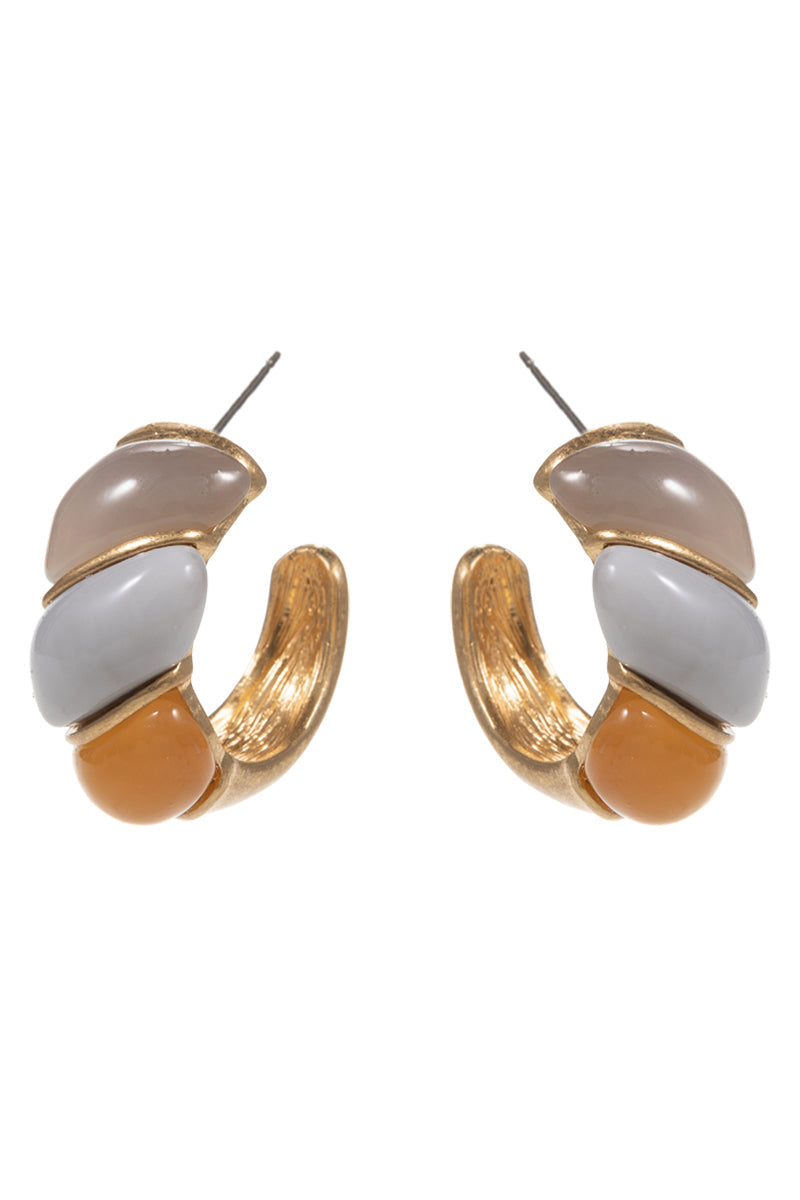Round Vintage Resin Faux Stone Pin Hoop Earrings