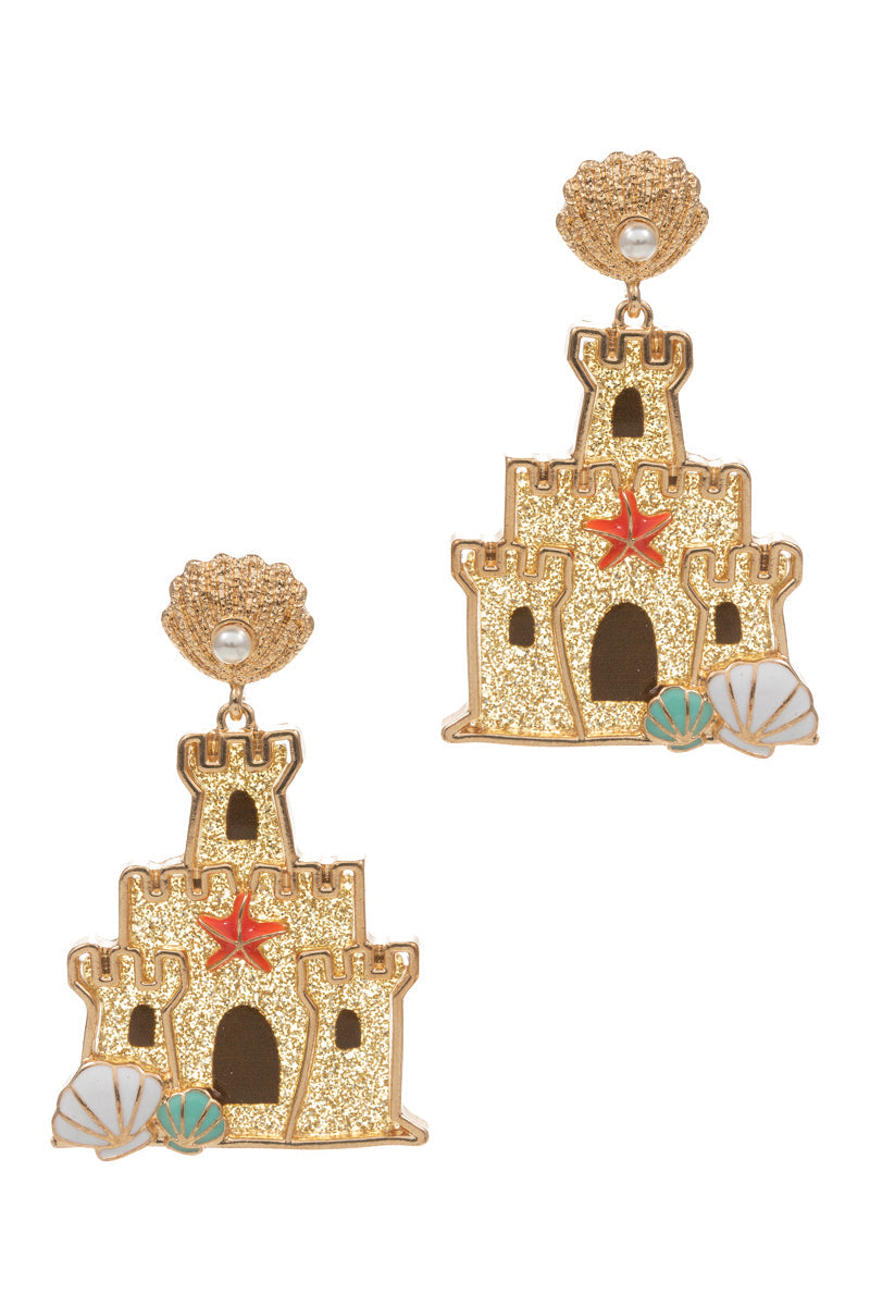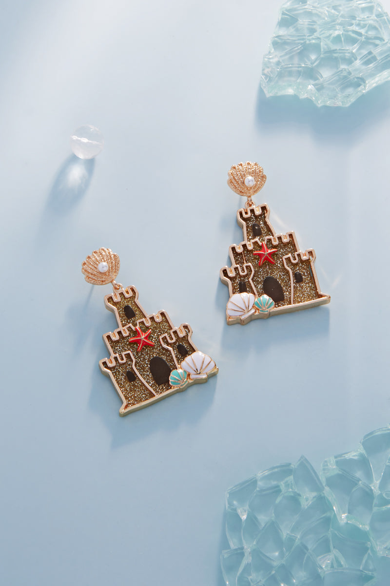 Sand Castle Acetate W Enamel Summer Post Earrings