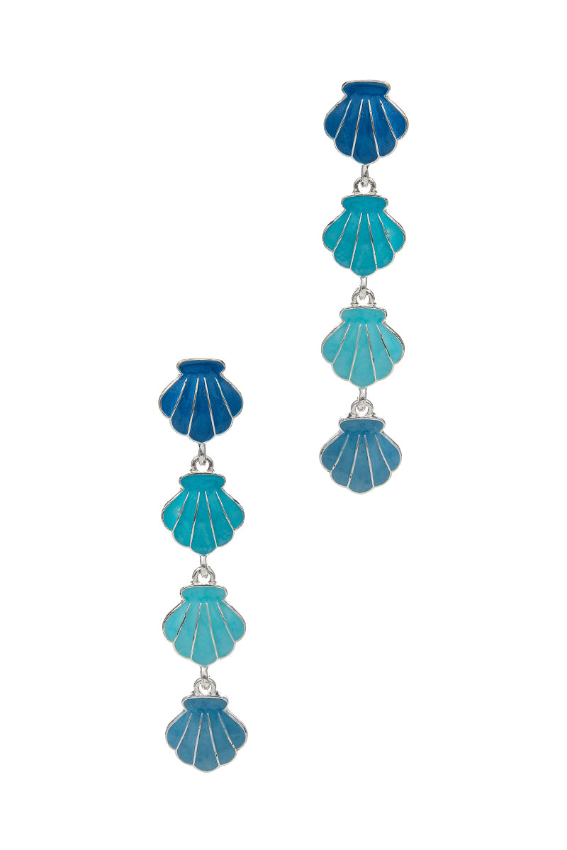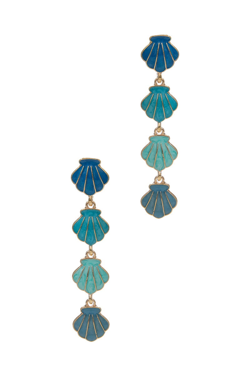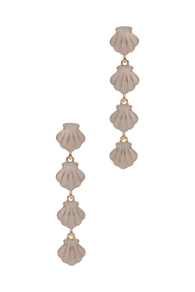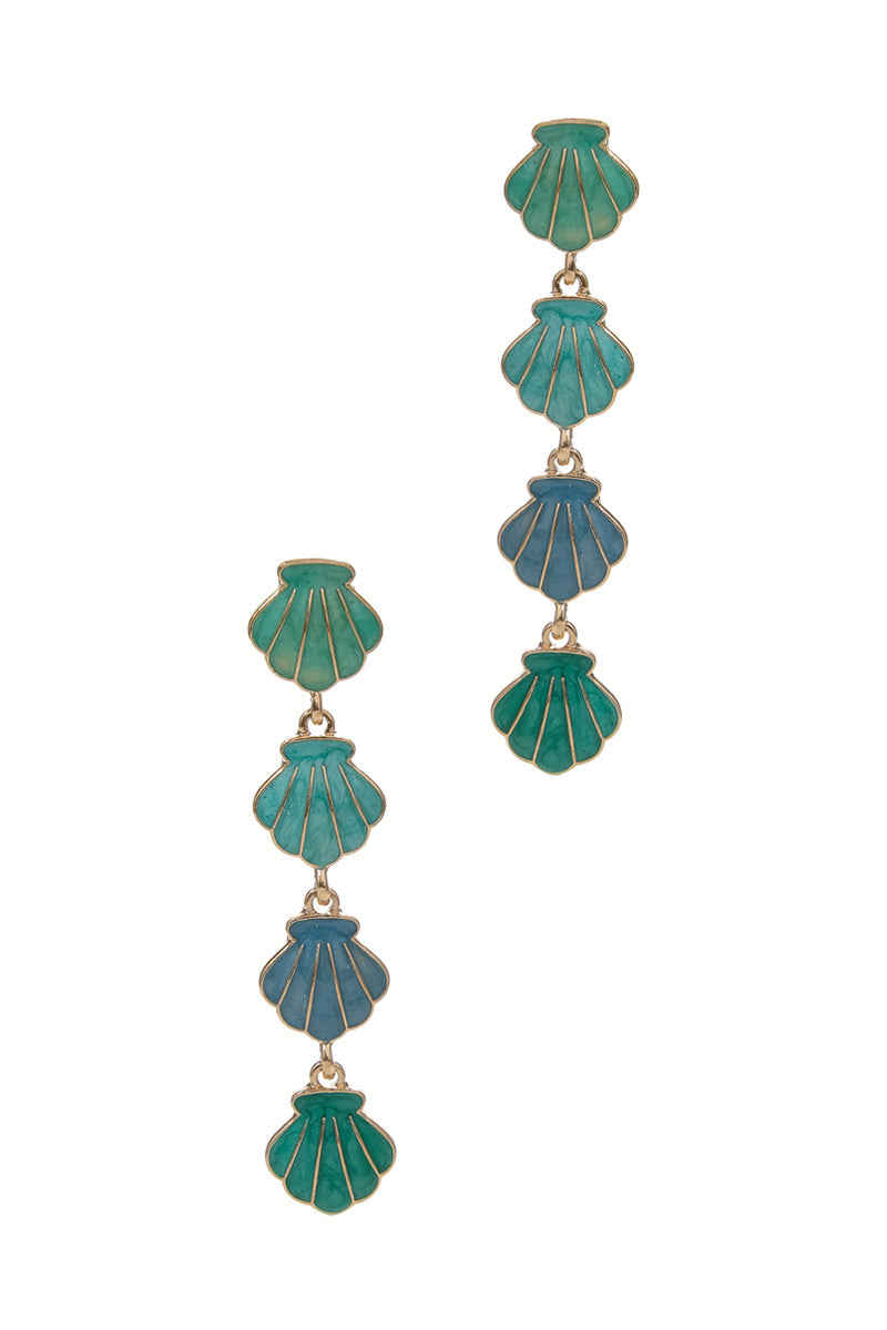 Crafted with precision and style, these 2.5 inch shell shaped earrings are sure to make a statement. Adorned with 4 drop pearlized swirl enamel, they are the perfect embodiment of elegance and sophistication.