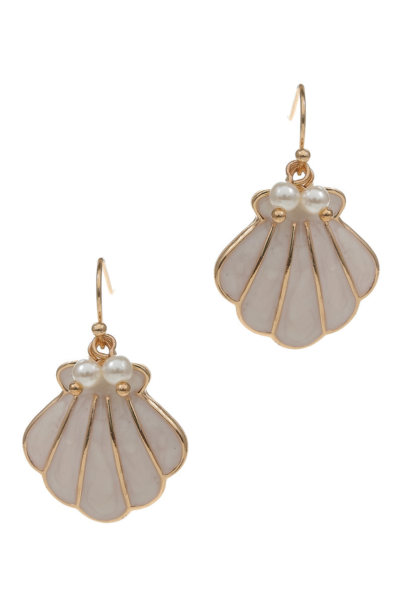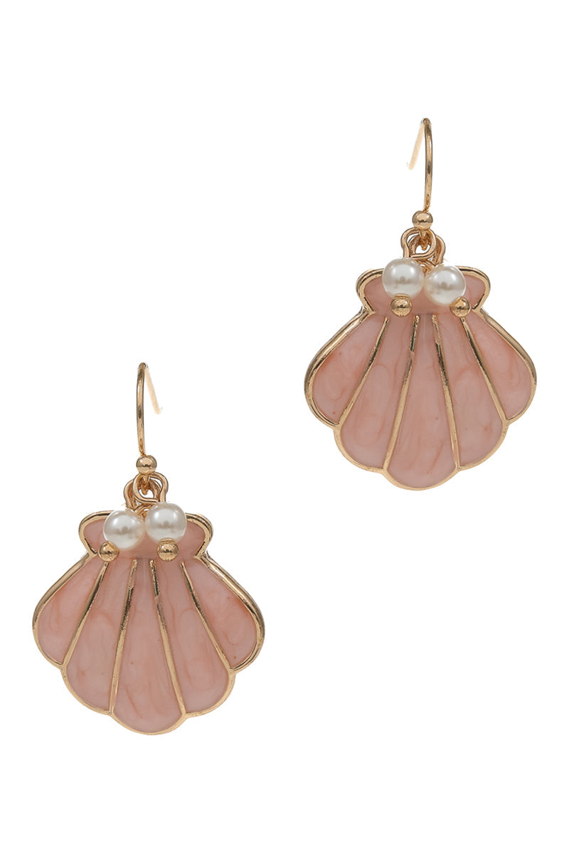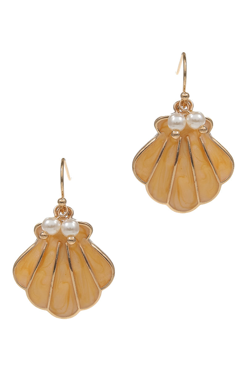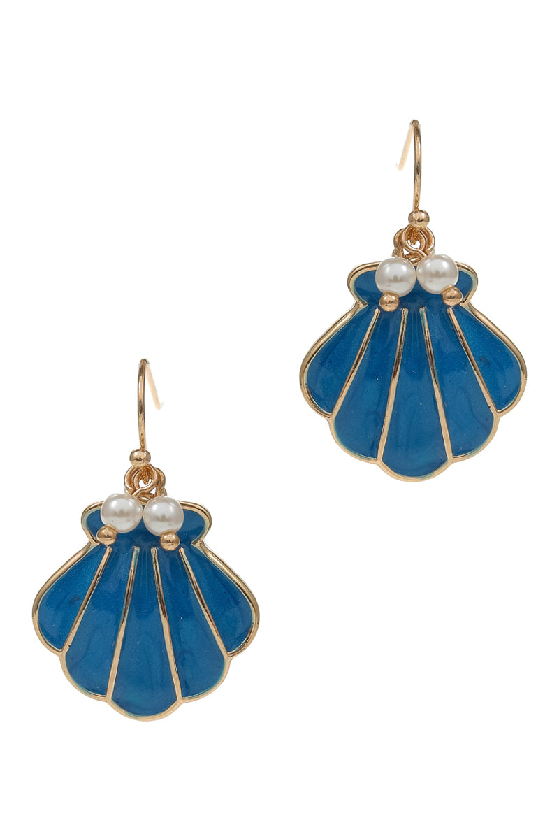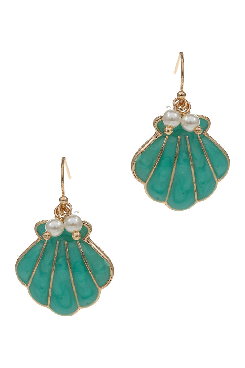 Shell Enamel Pearl Summer Sea Life Hook Earrings