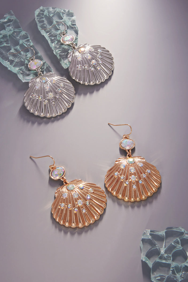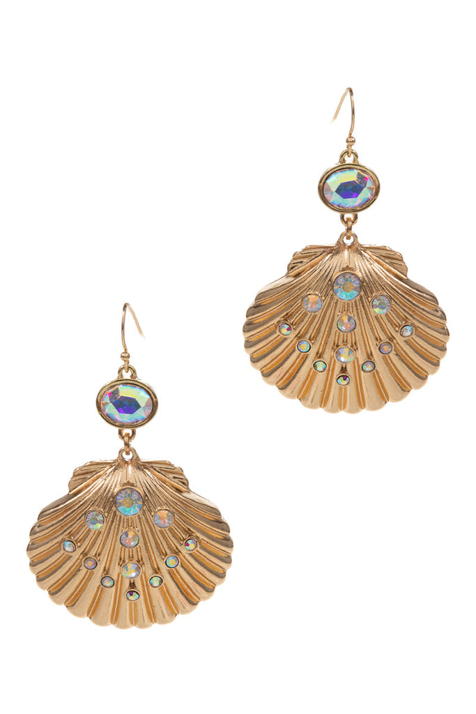 Shell Shaped Rhine Stone 2 Drop Hook Earrings