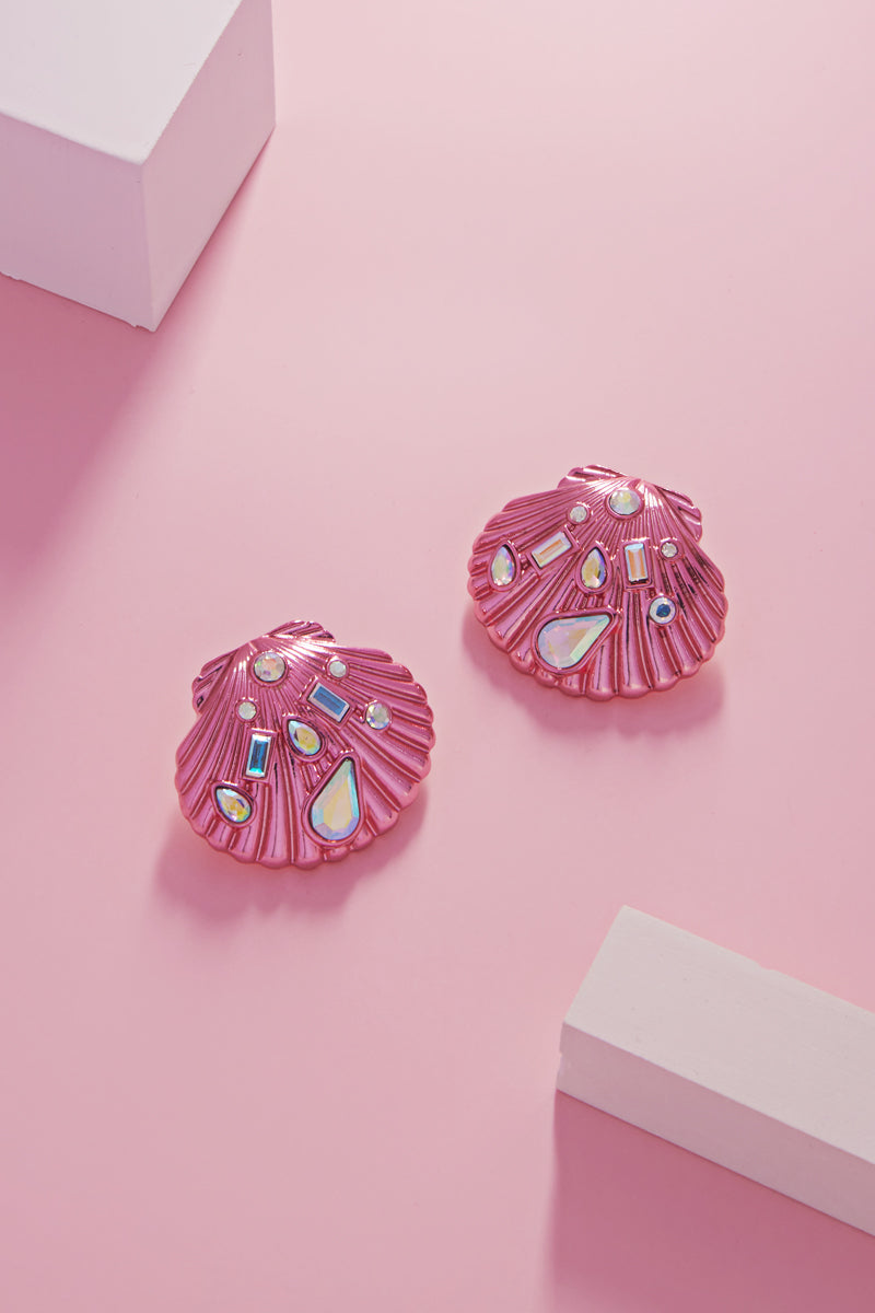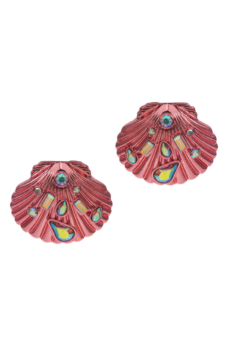 Shell Shaped Rhinestone Encrustrd Post Earrings
