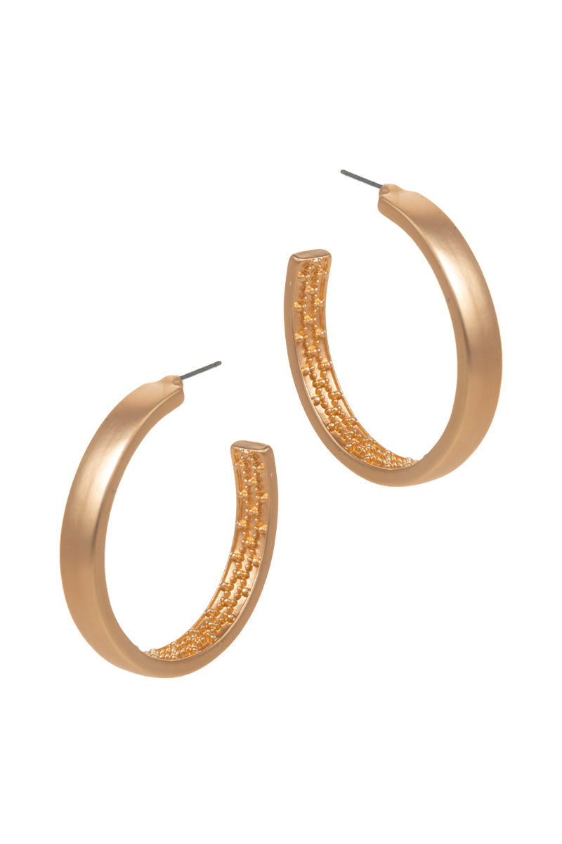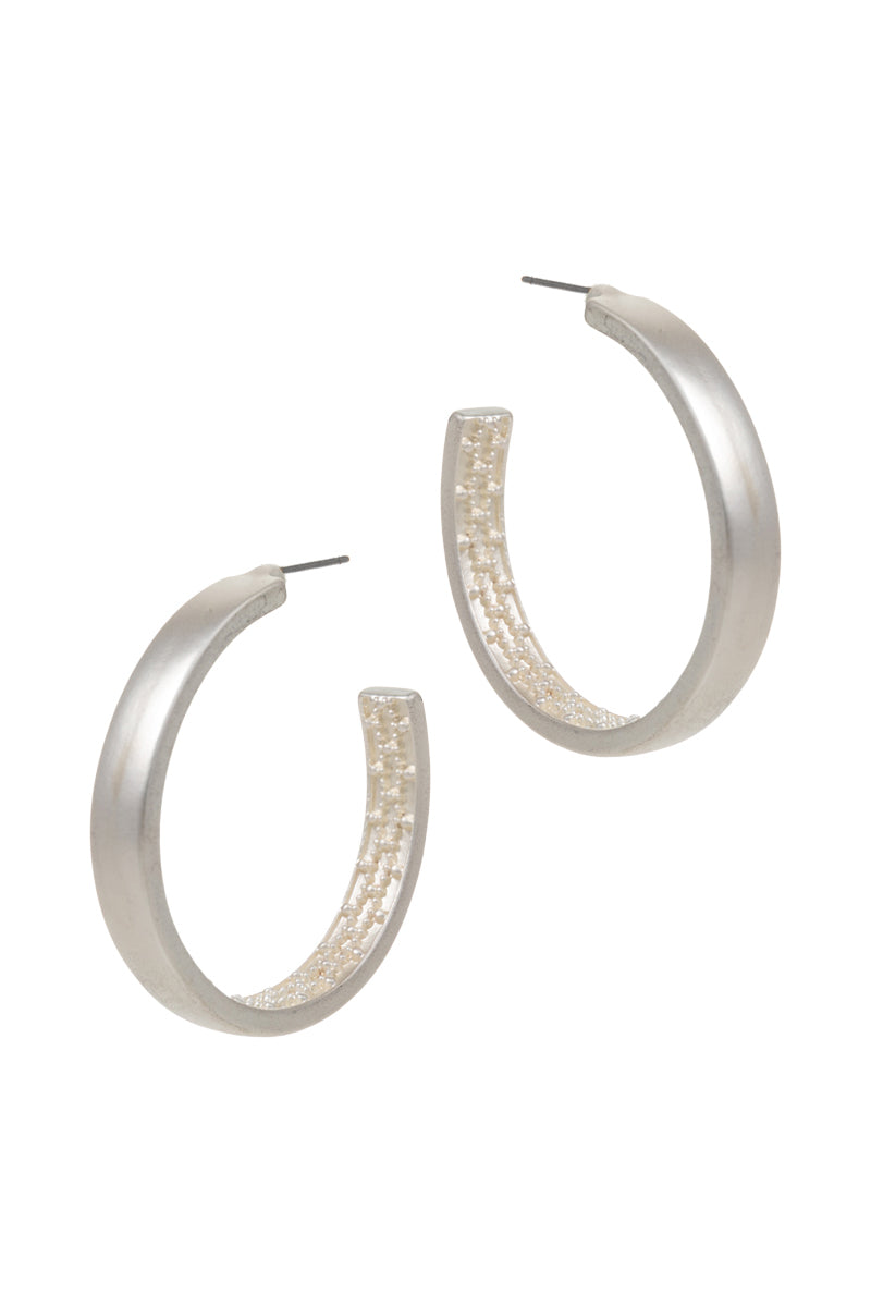 Smooth Outline Ring Textured Metal Hoop Earrings