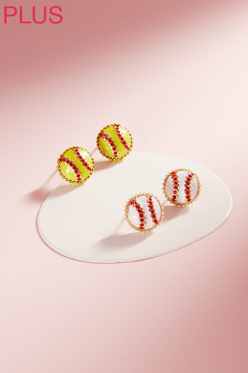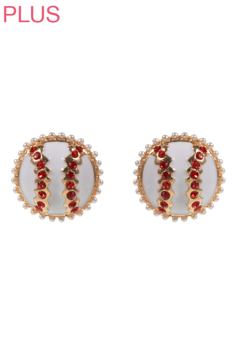 Upgrade your earring game with our 0.5 inch baseball-shaped enamel earrings. Made with hypoallergenic titanium posts and adorned with rhinestones, these earrings are both stylish and gentle on your skin.