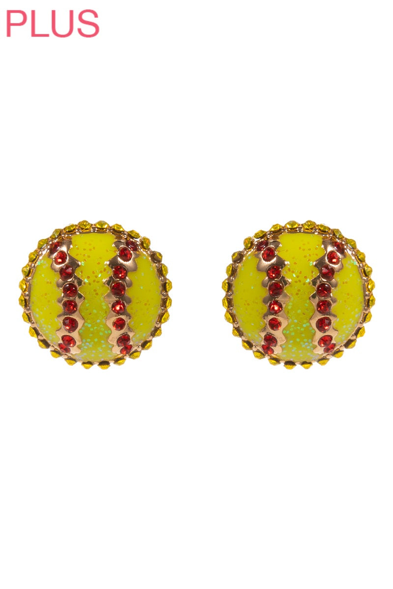 Sports Ball Shape Enamel Rhinestones Post Earrings