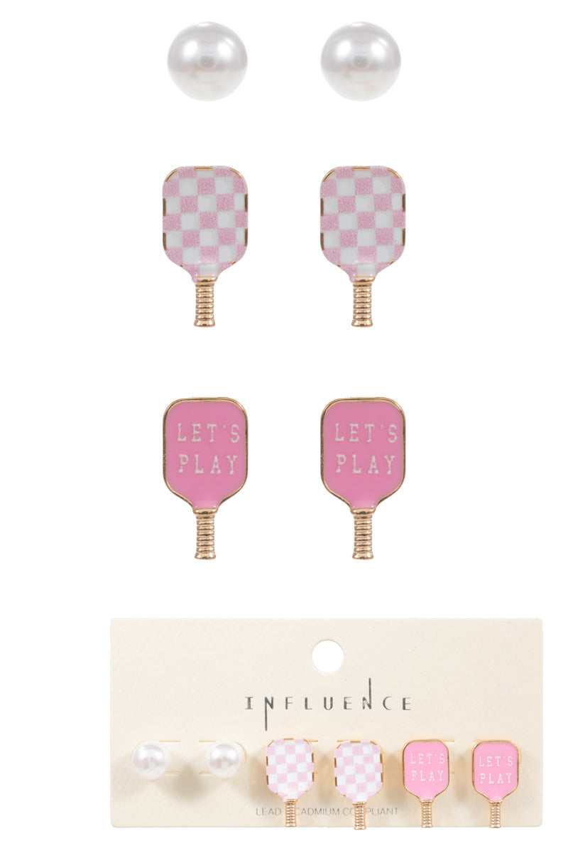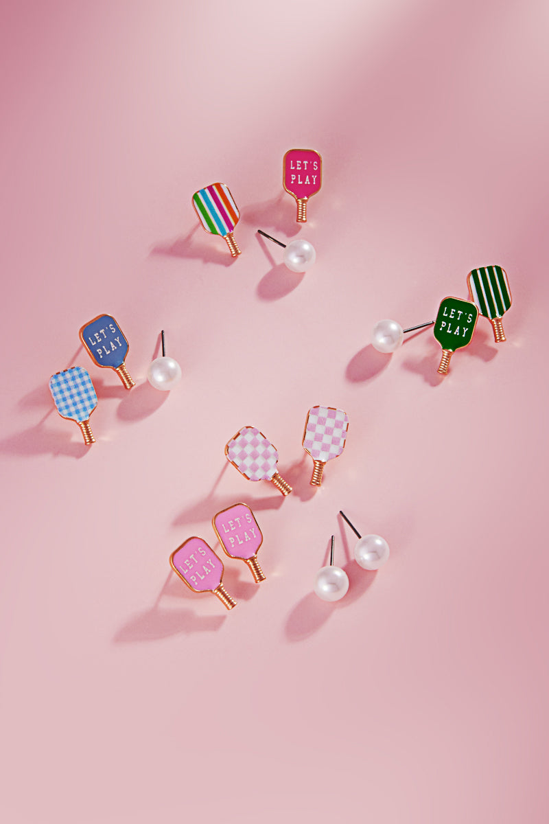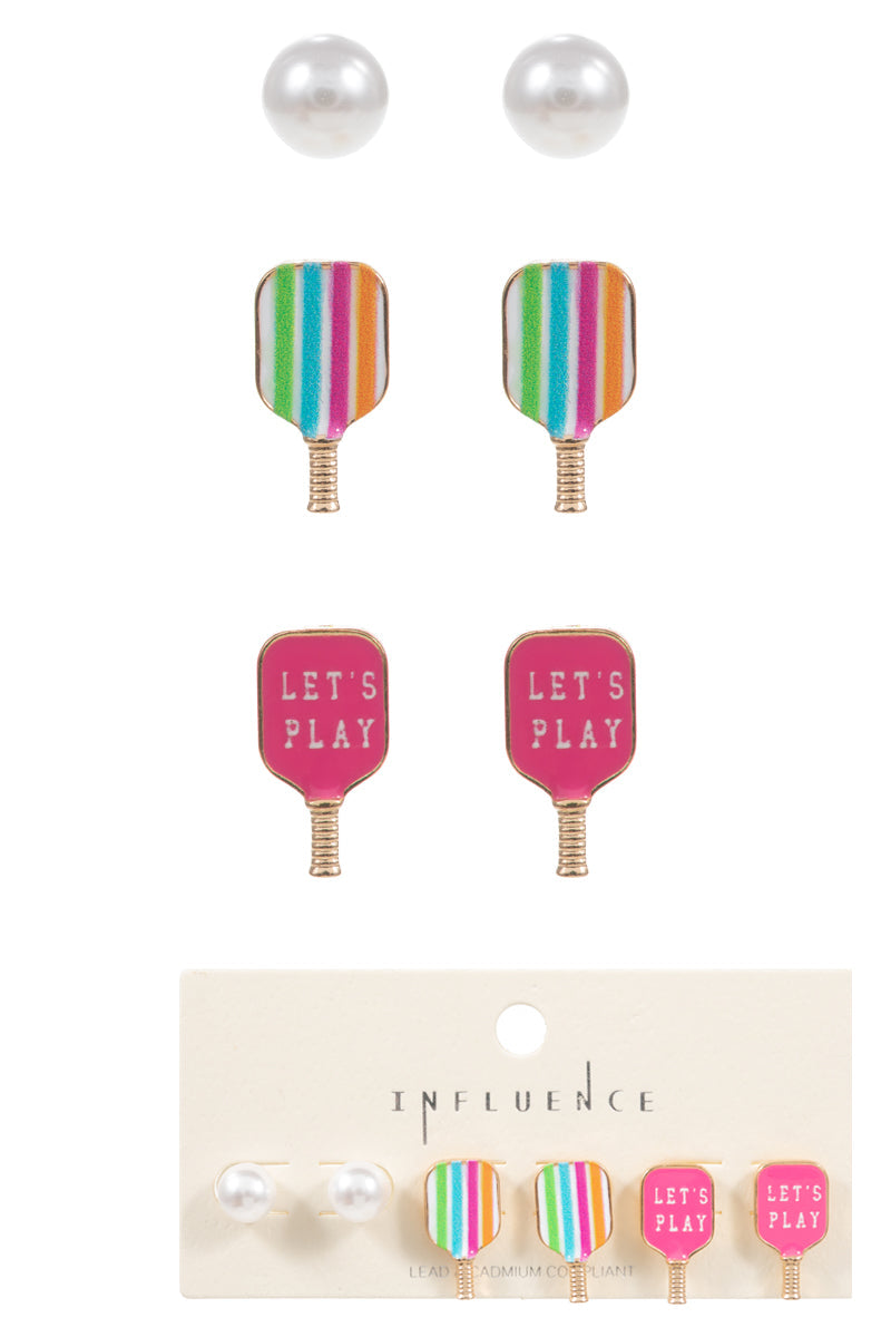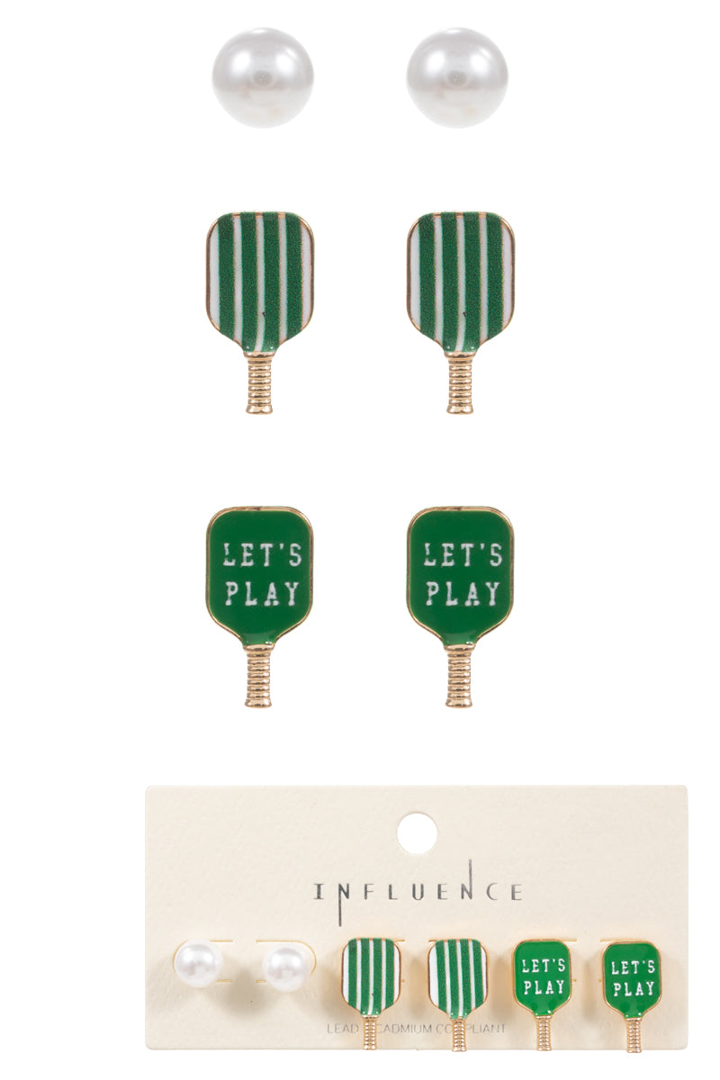 Sports Pickleball Enamel Print 3 Set Post Earrings