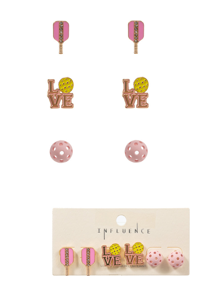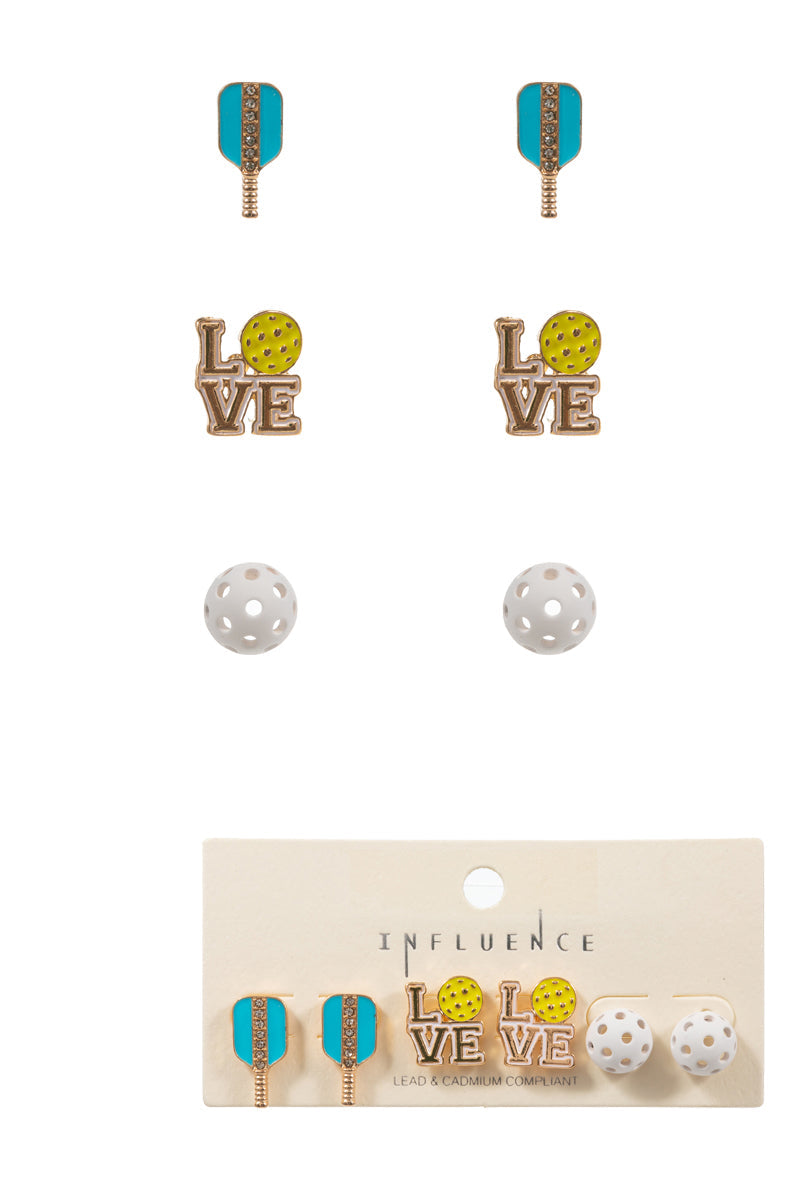 Sports Pickleball Enamel Print 3 Set Post Earrings