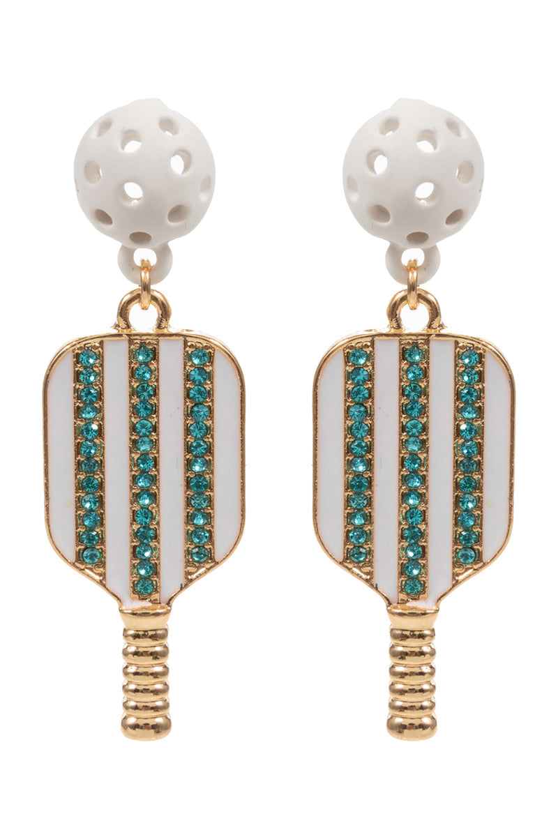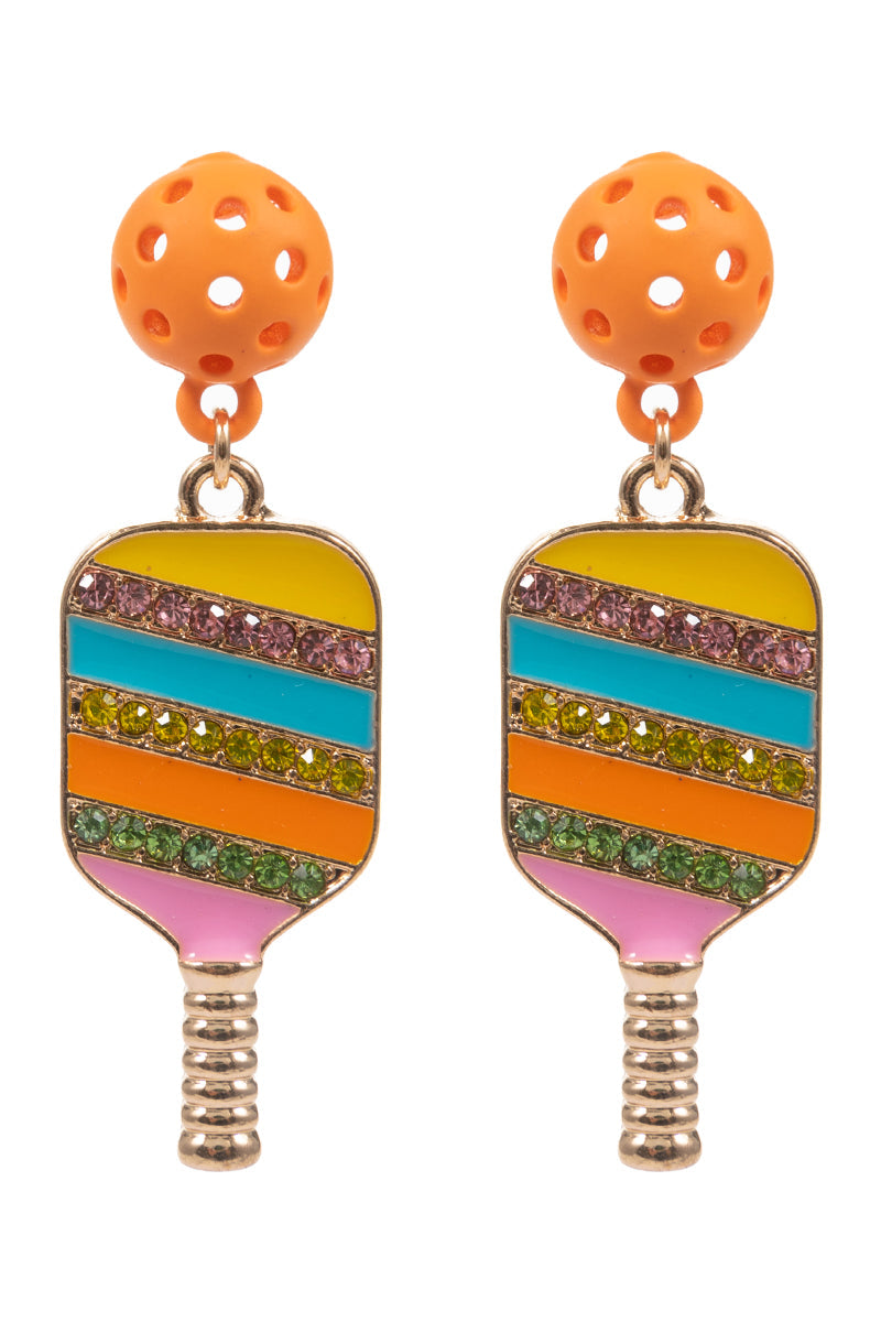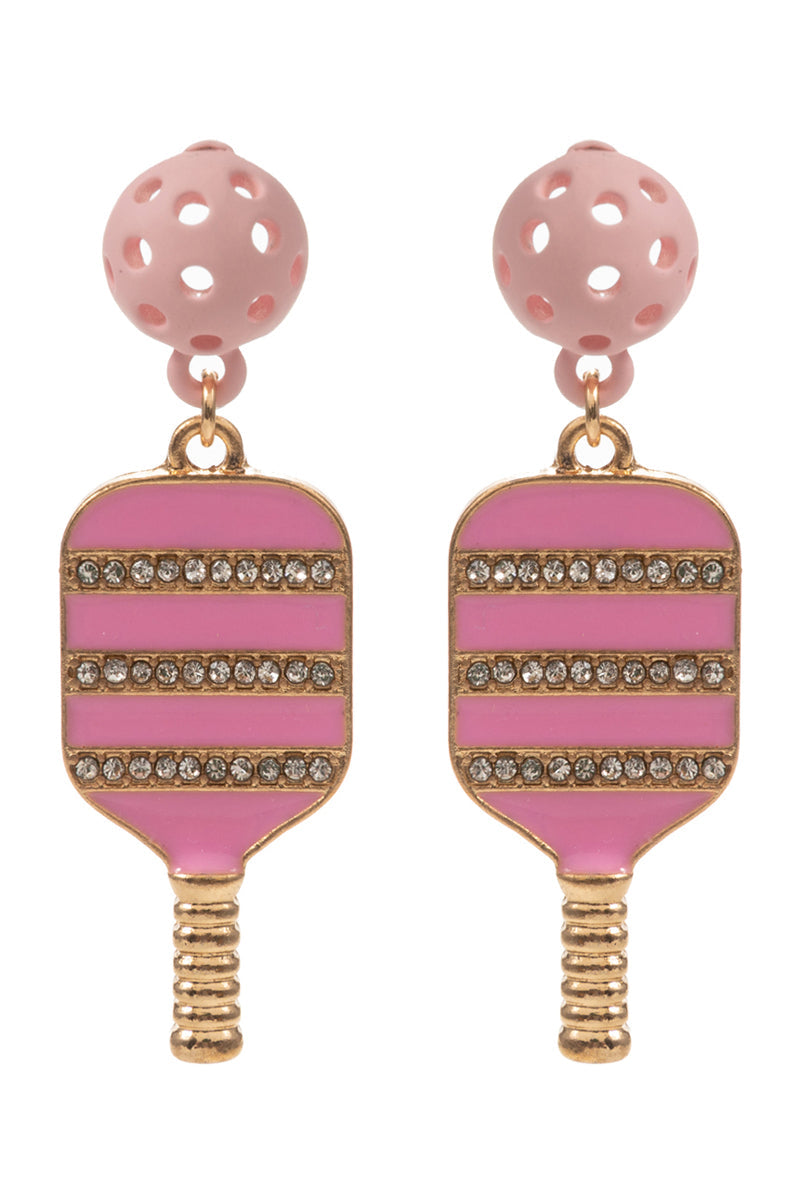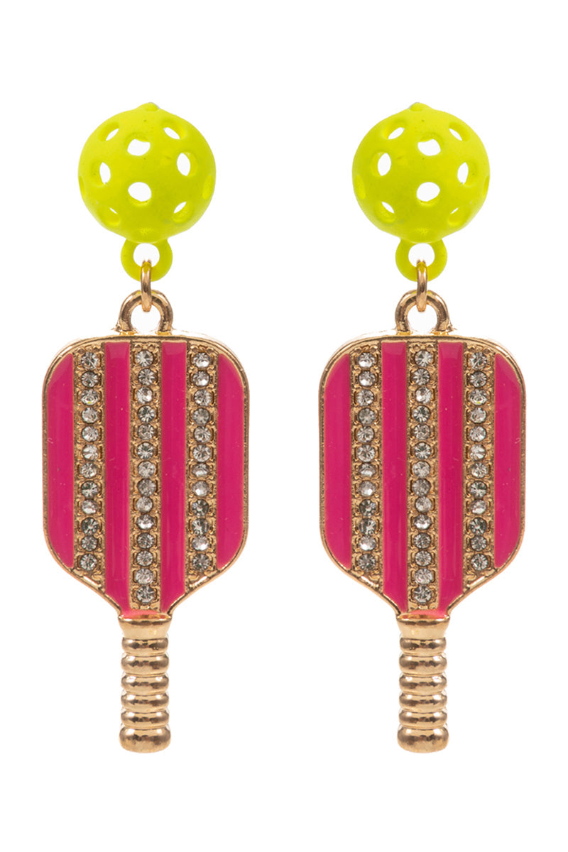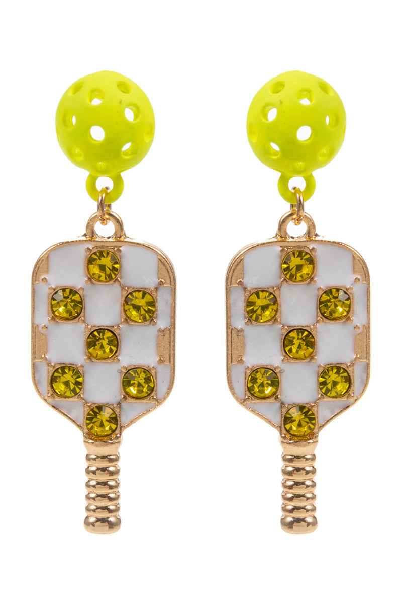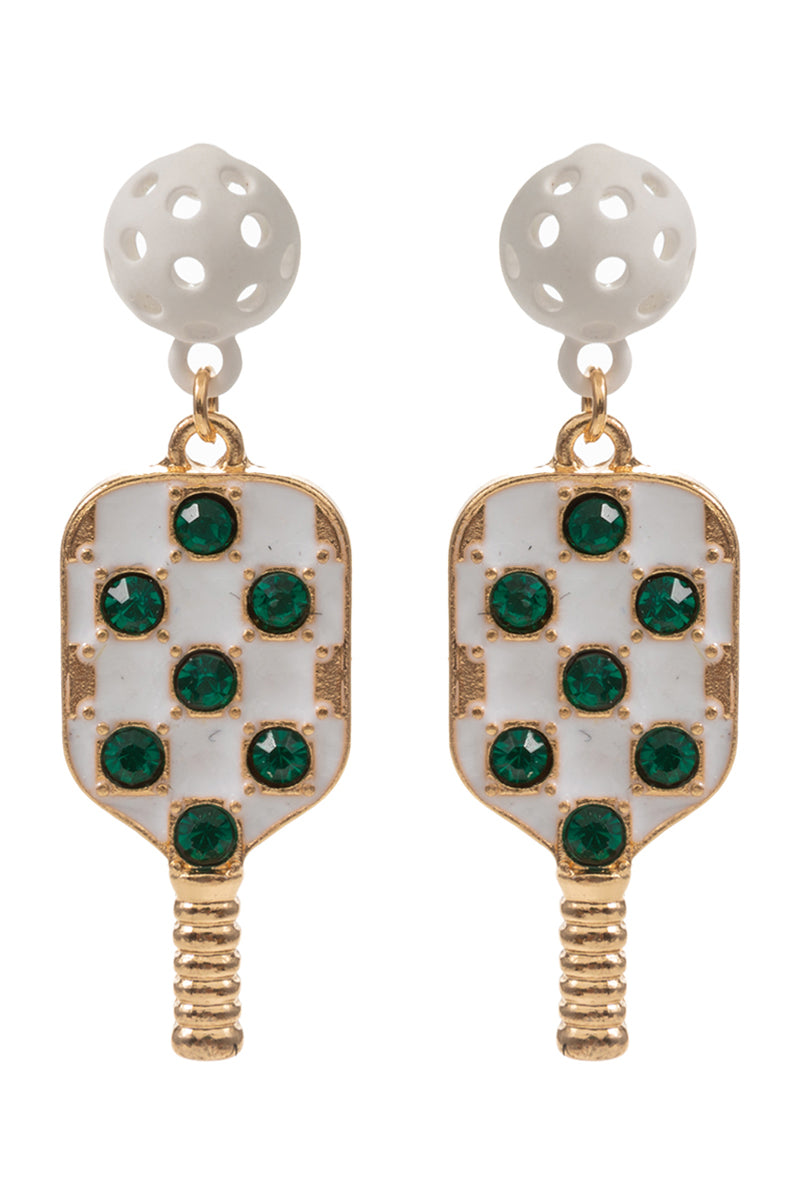 Sports Pickleball Enamel Rhinestone Post Earrings