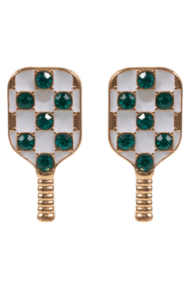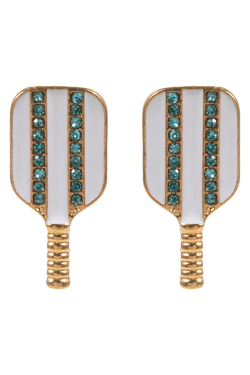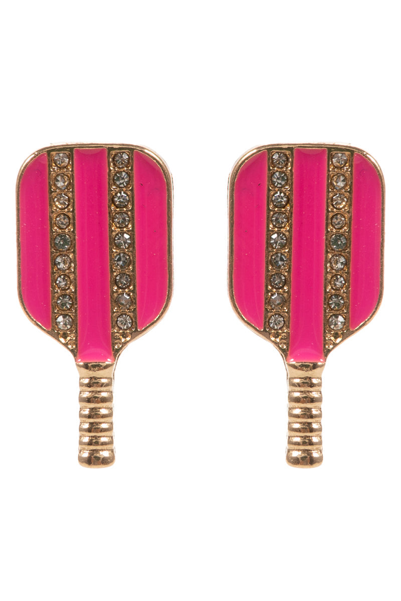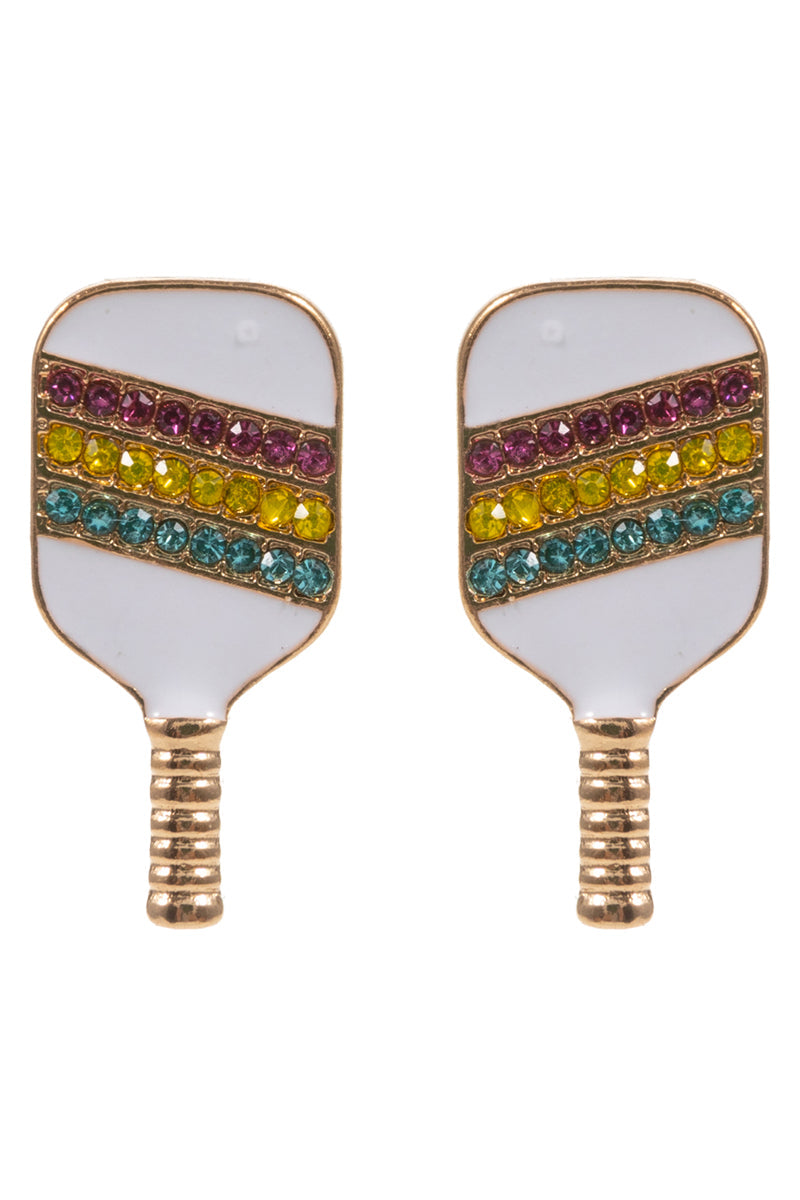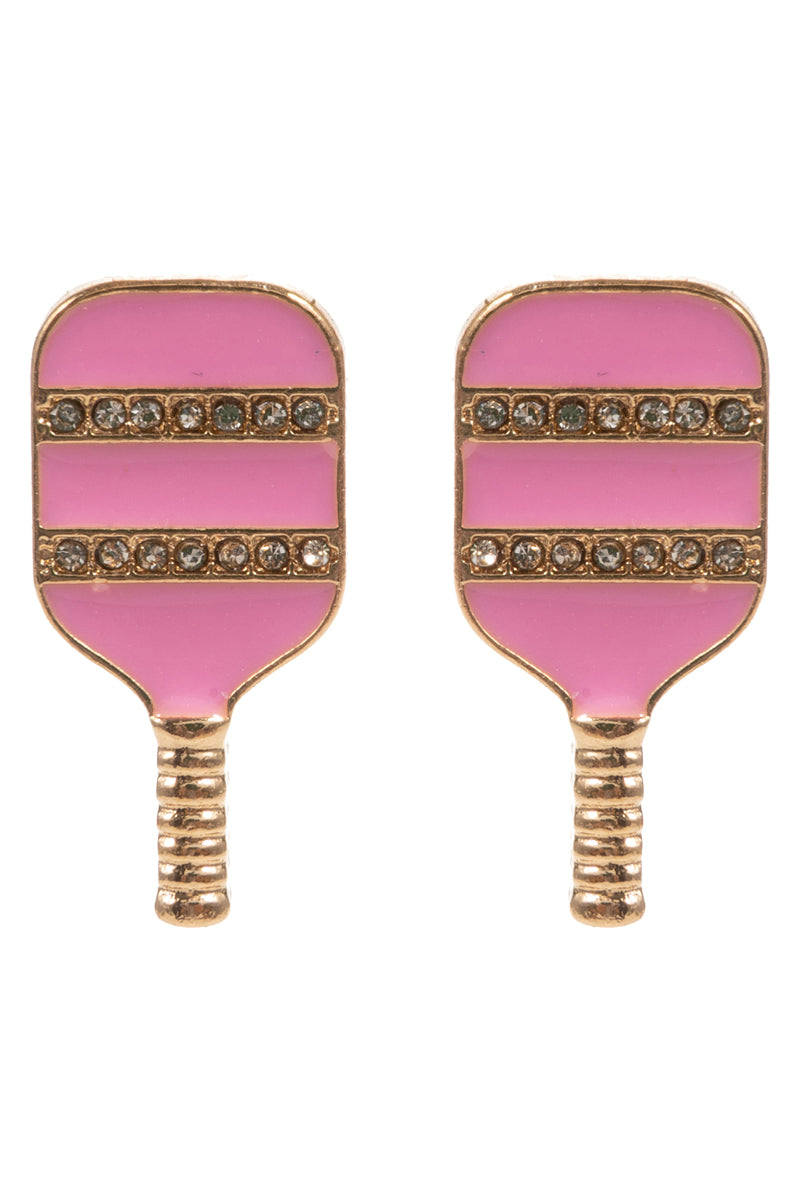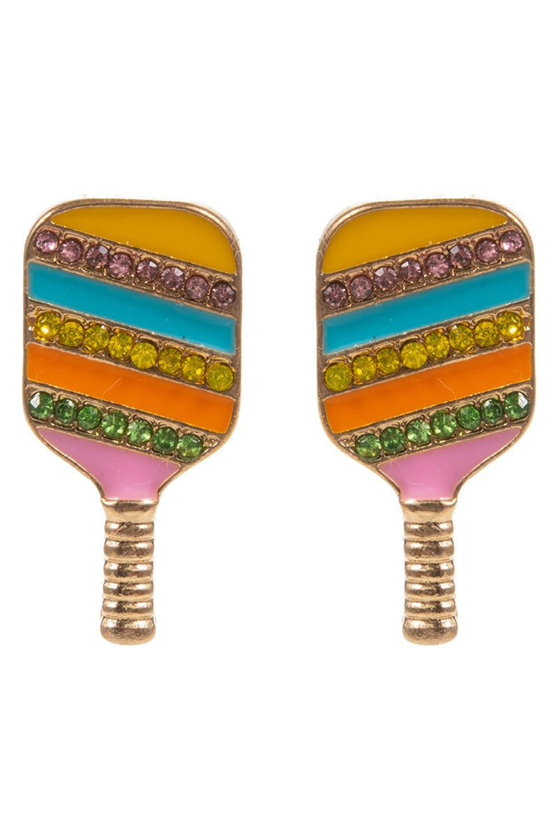 Sports Pickleball Enamel Rhinestone Post Earrings