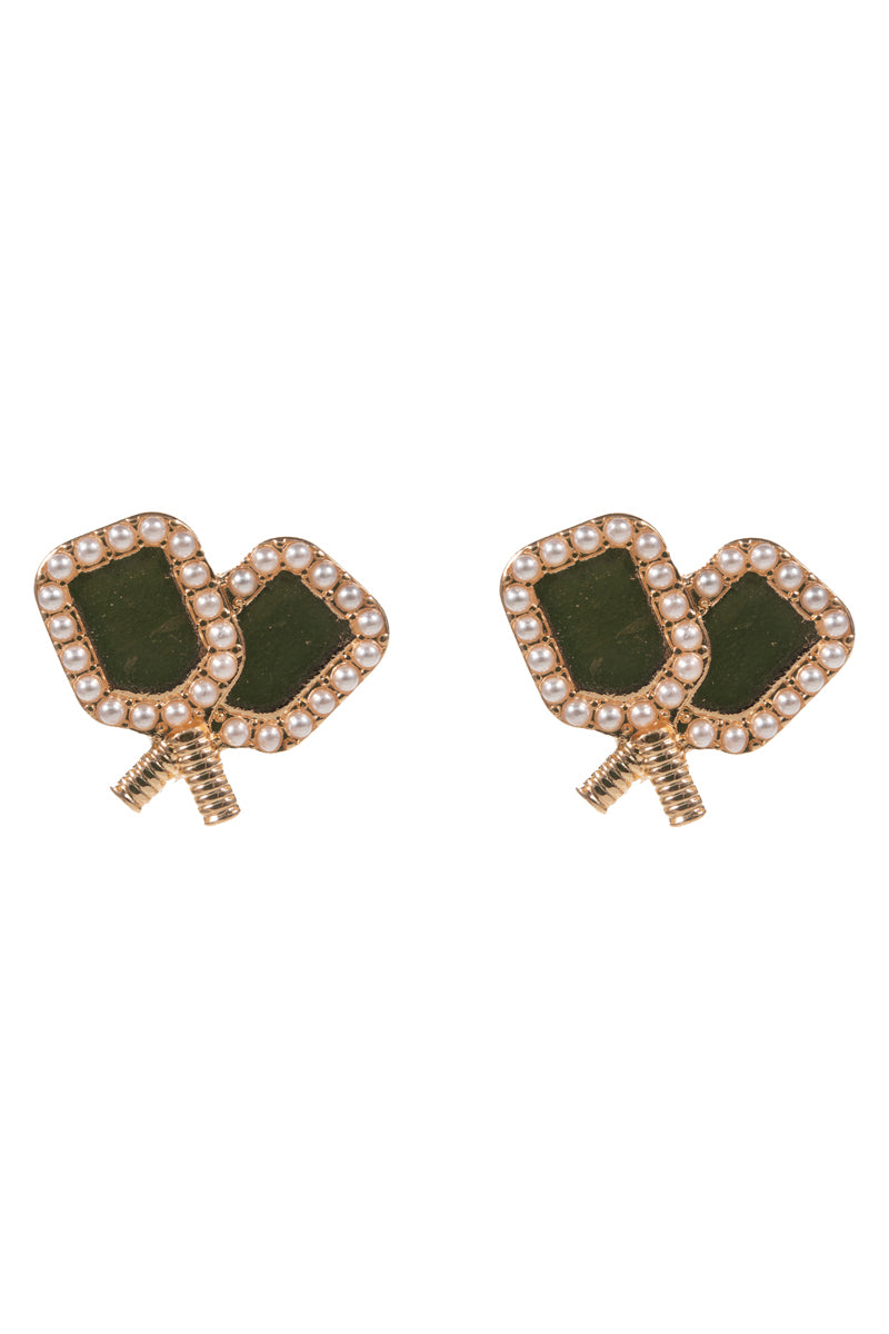 Sports Pickleball Enamel Rhinestones Post Earrings