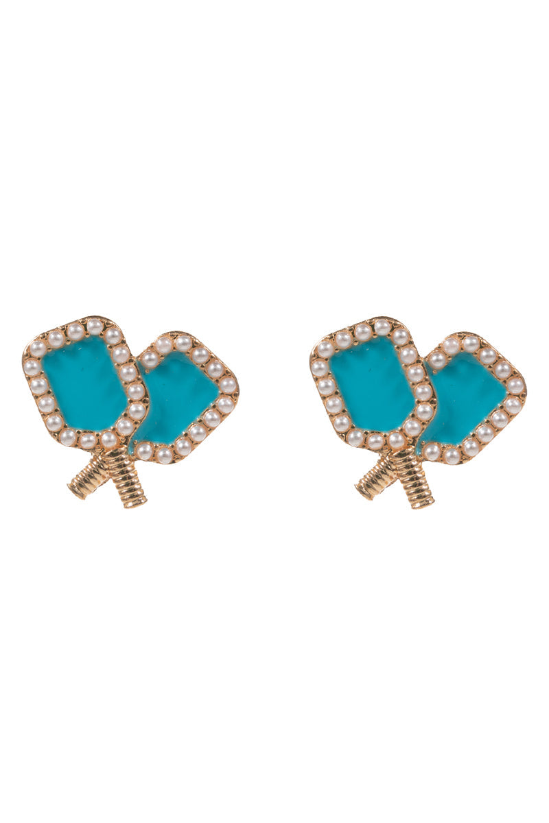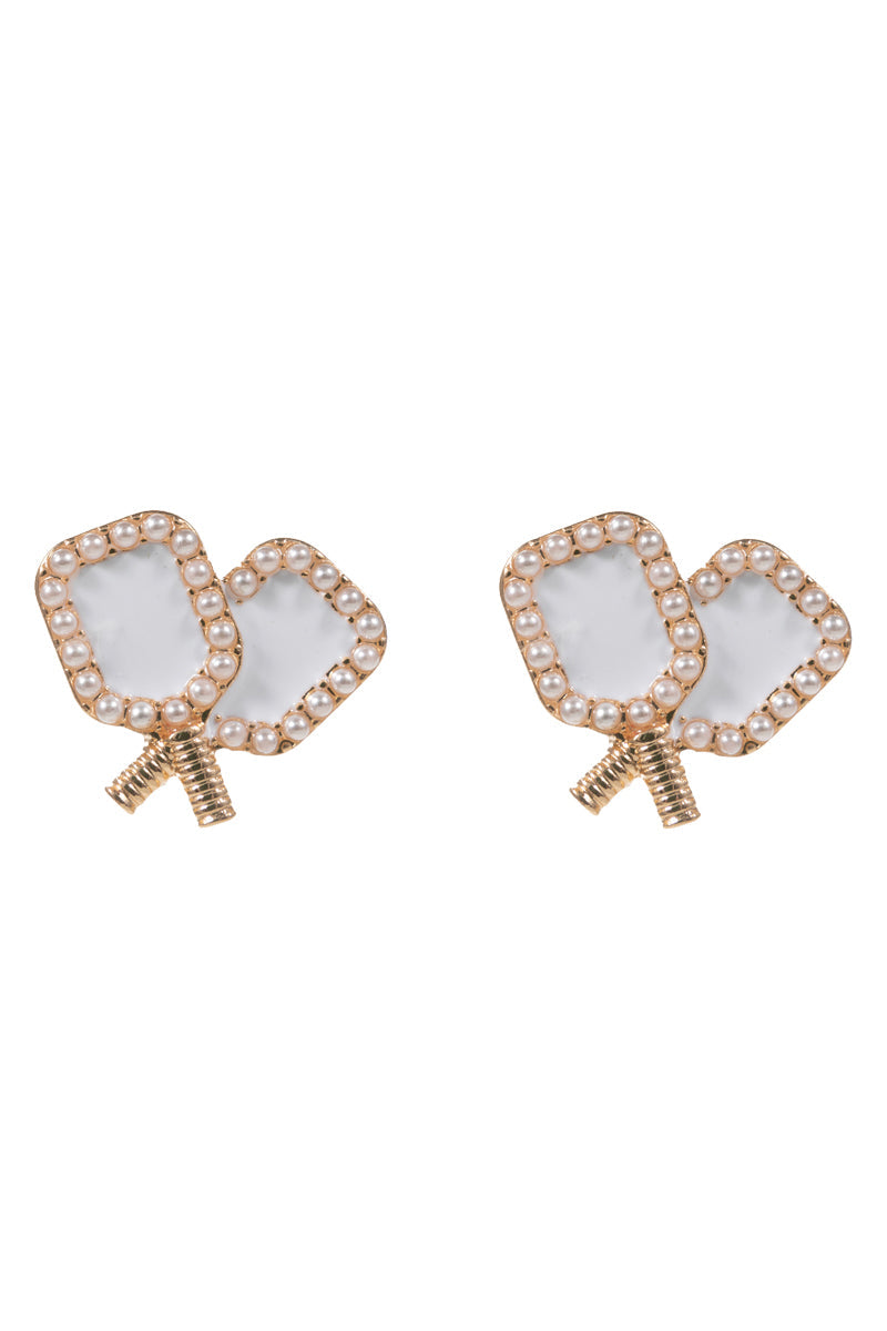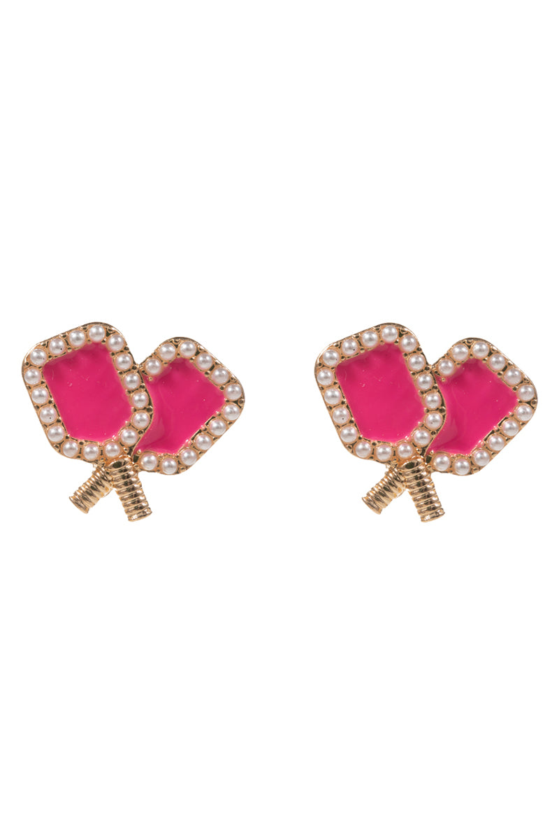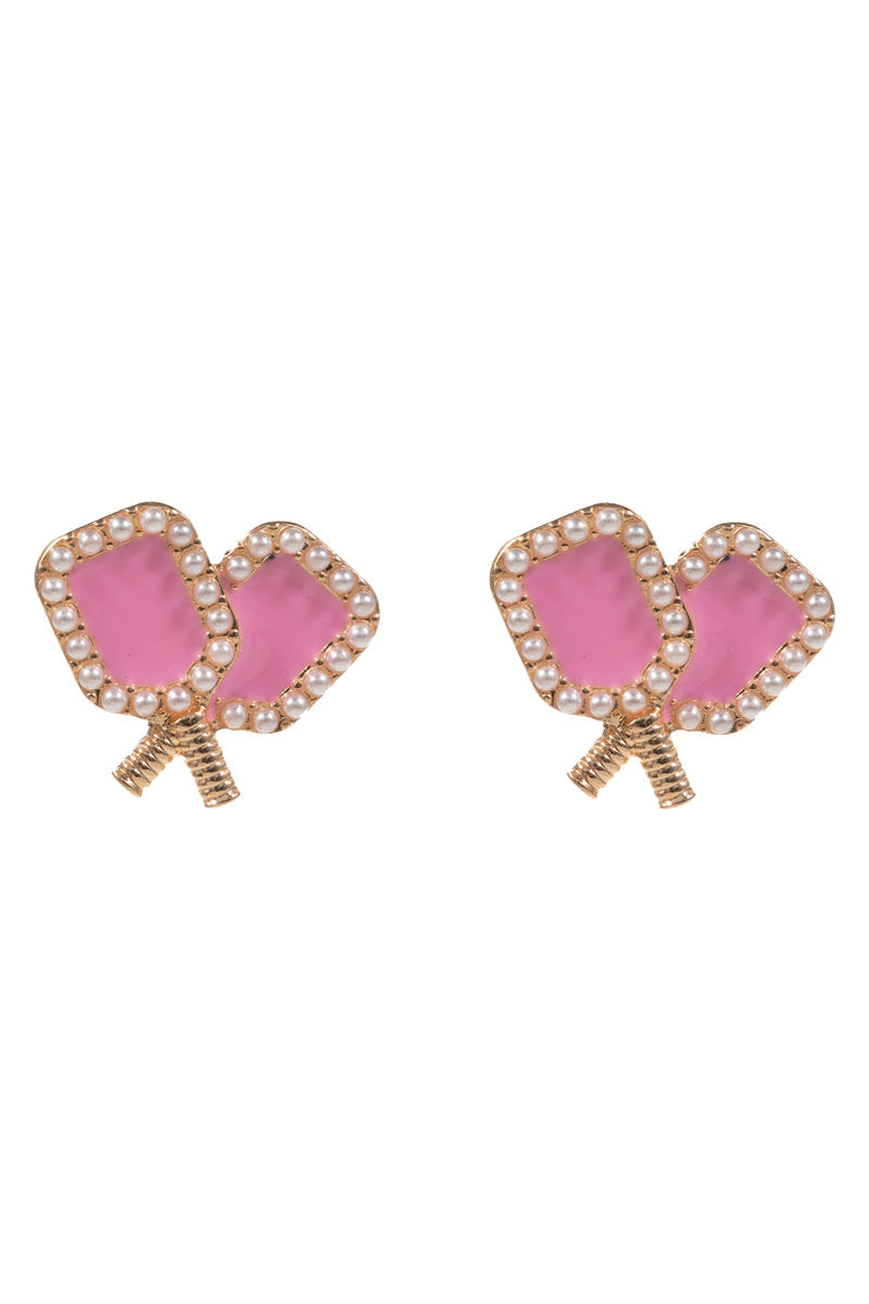 Sports Pickleball Enamel W Pearls Post Earrings