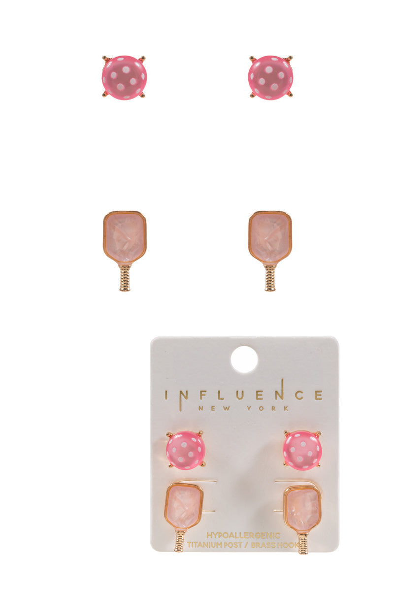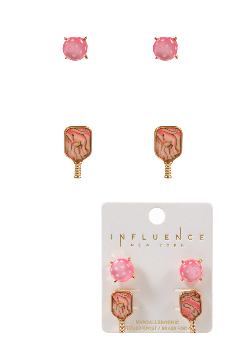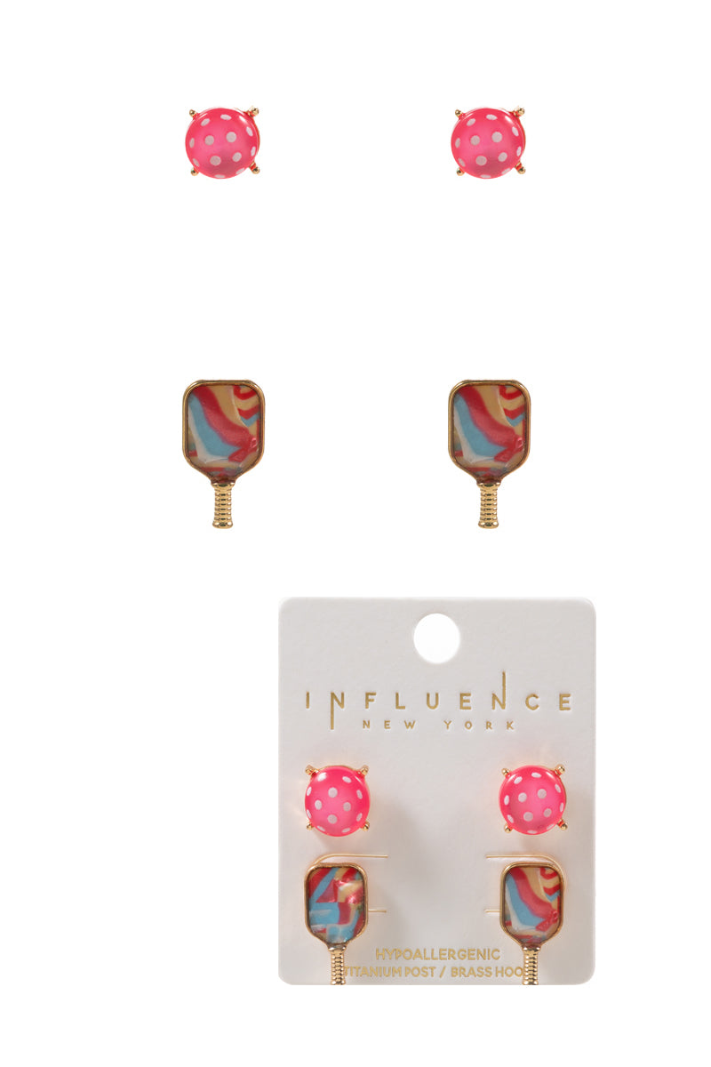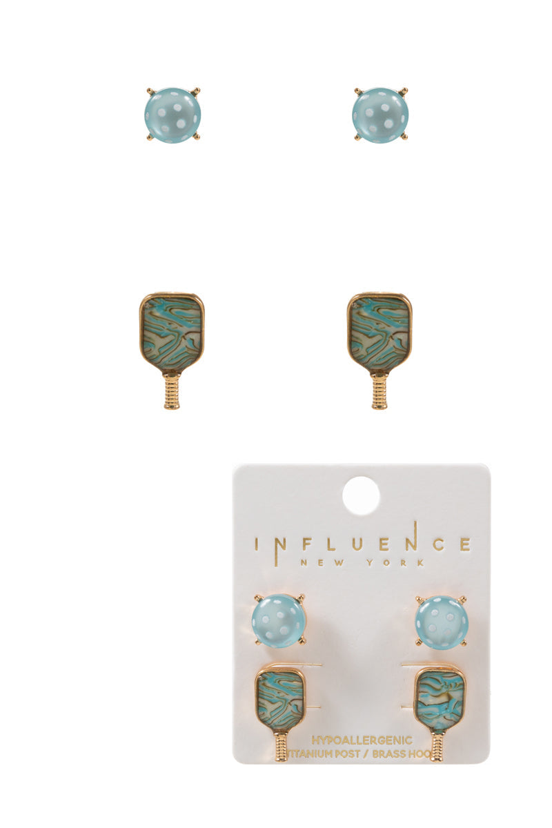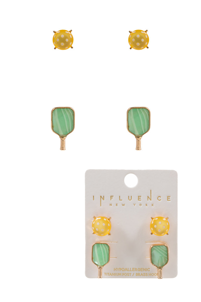 Sports Pickleball Shimmery Faux 2Set Post Earrings